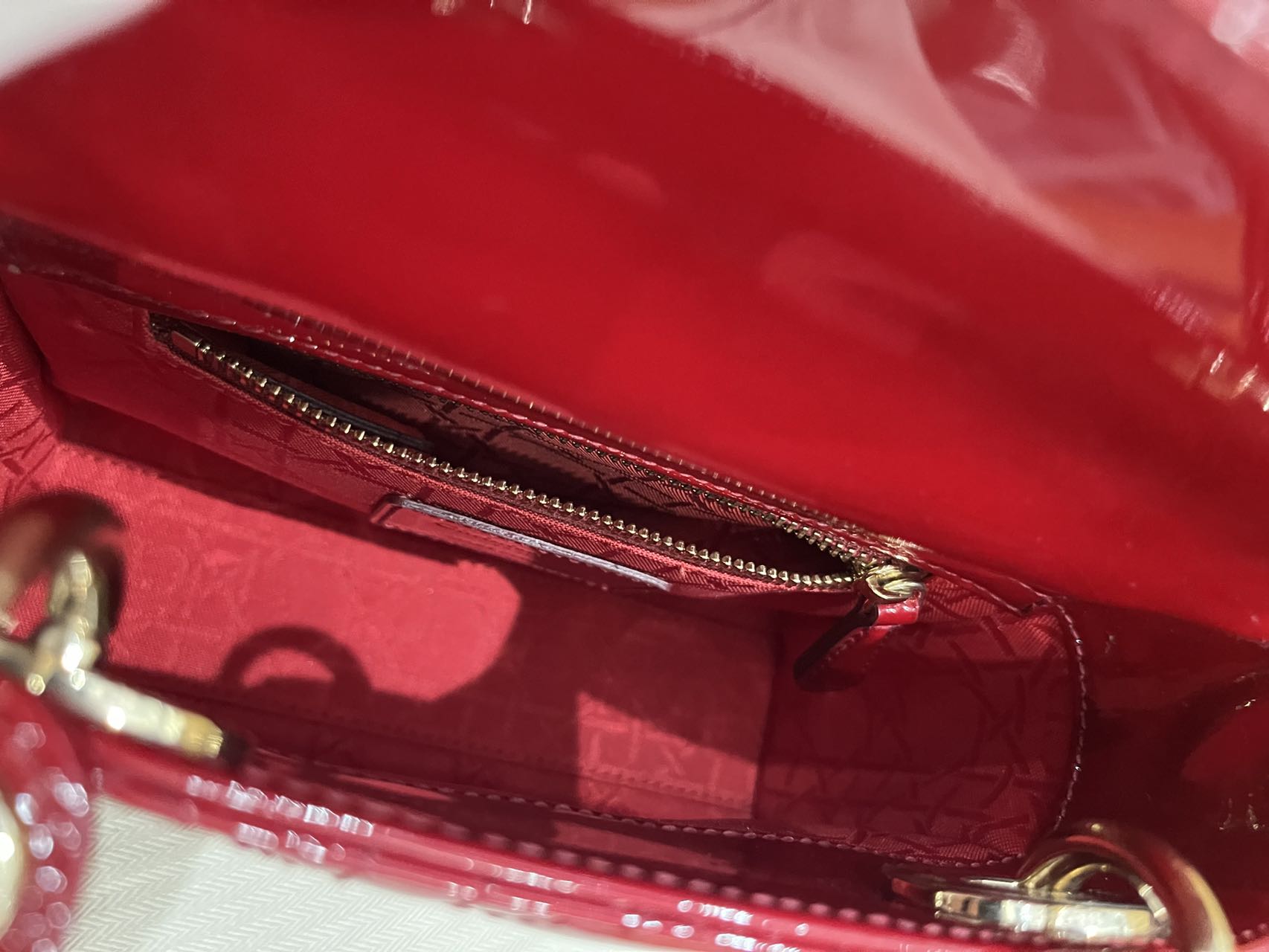 Pre-owned Certified Dior Mini Lady Dior in Dark Cherry Red Patent Leather with Light Golden Hardware, 2019, w/ full set