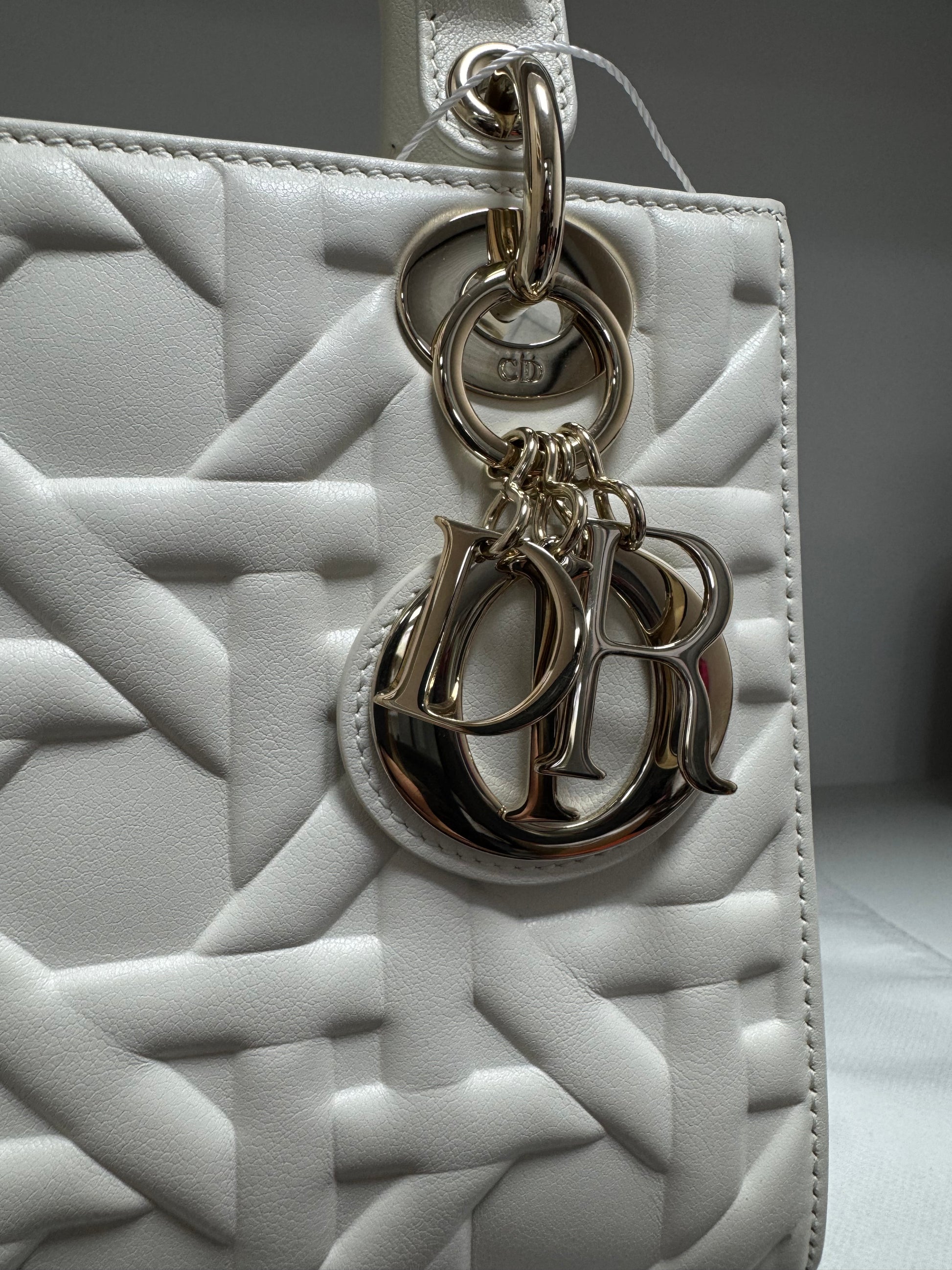Pre-owned Certified Dior Small Lady Dior Cream White Lambskin Cannage with Light Golden Hardware, 2024, w/ full set