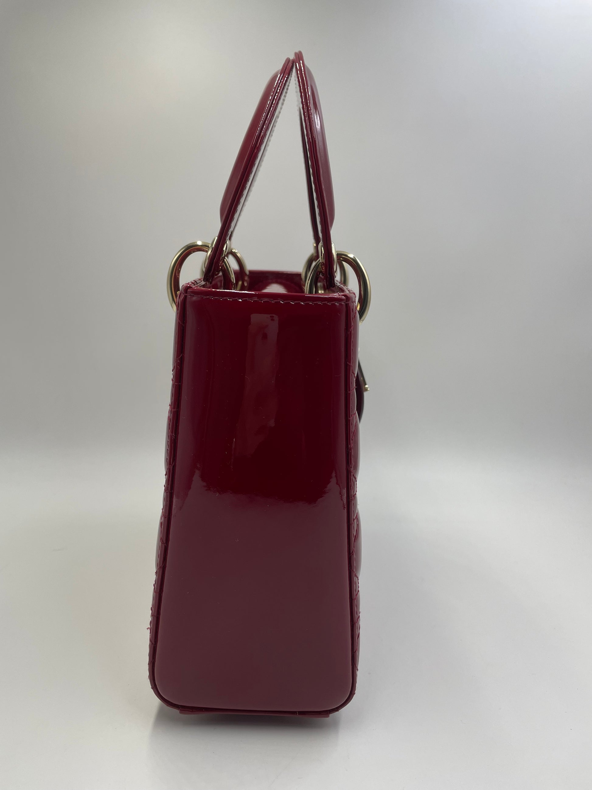 Pre-owned Certified Dior Small Lady Dior in Dark Cherry Red Patent Leather with Light Golden Hardware, 2020, w/ full set