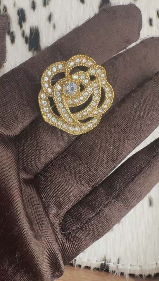 Pre-owned Certified Dior Vintage Brooch Crystal Rose Flower with Golden Hardware