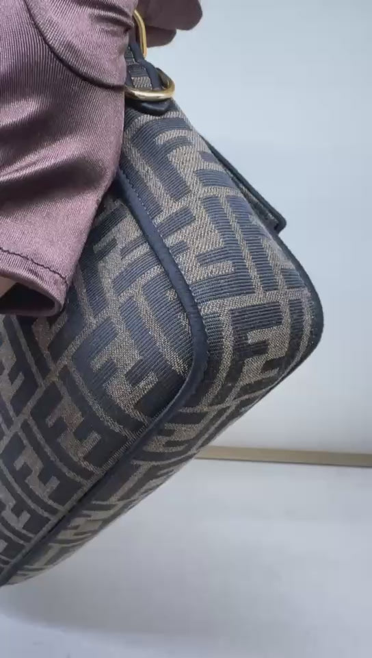 Pre-owned Certified Fendi Baguette Medium Zucca Monogram Canvas, w/ strap, top handle, dust bag