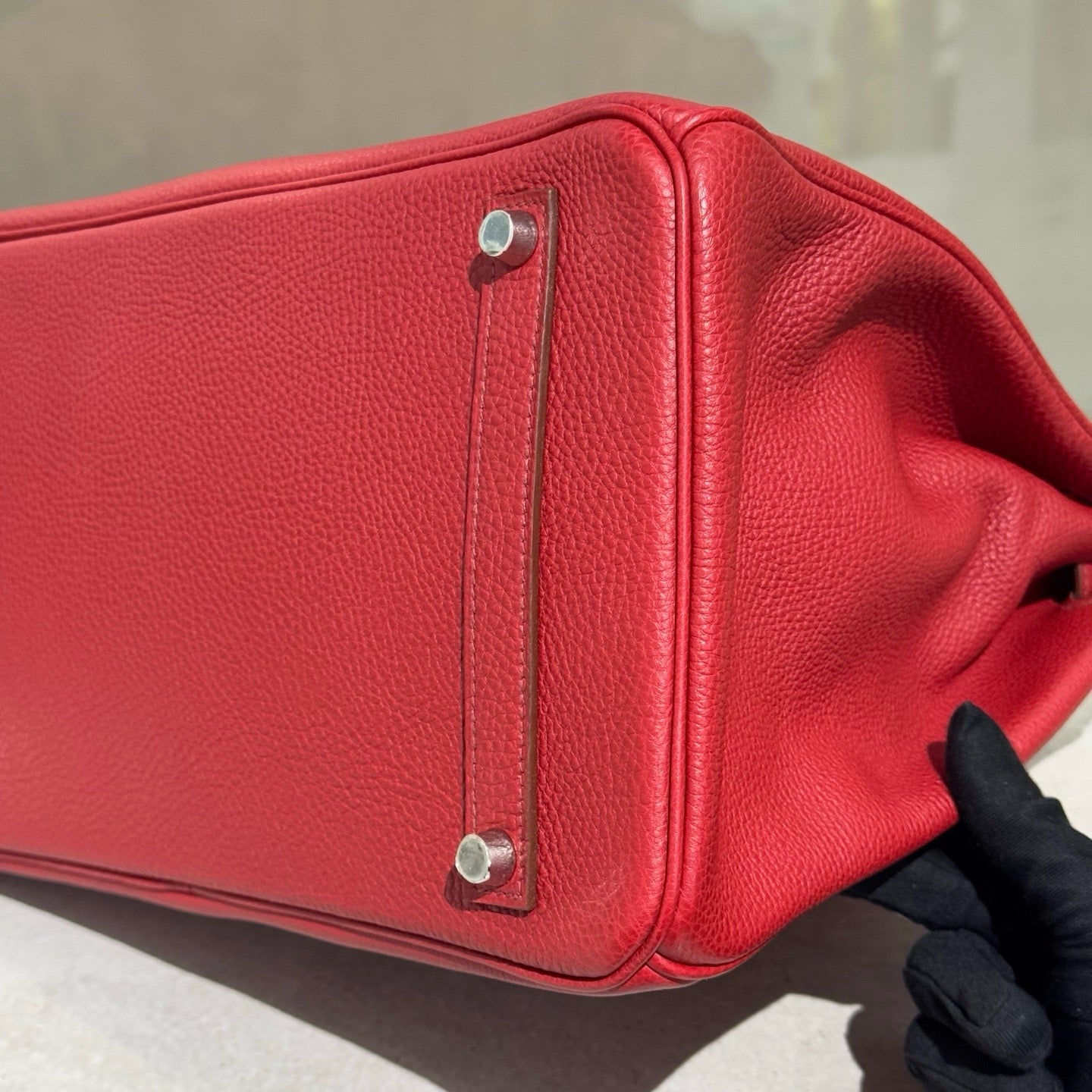 Pre-owned Certified Hermes Birkin 35 in Q5 Rouge Casaque Togo Leather with Silver Hardware, 2009, w/ full set