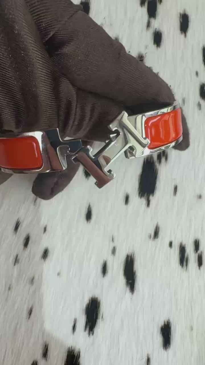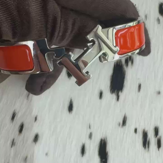 Pre-owned Certified Hermes H Click Enamel Orange Bracelet with Silver Hardware, SH Size
