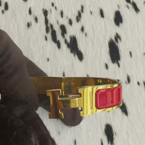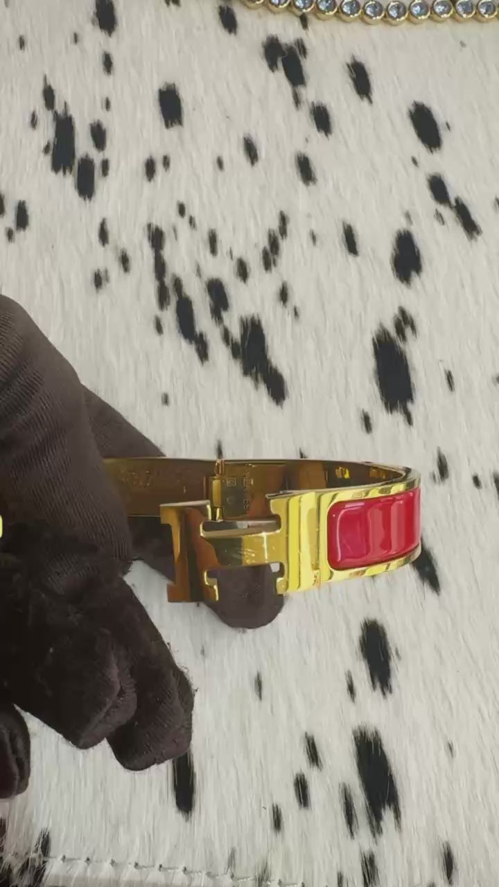 Pre-owned Certified Hermes H Click Enamel Red Bracelet with Golden Hw, Small Size
