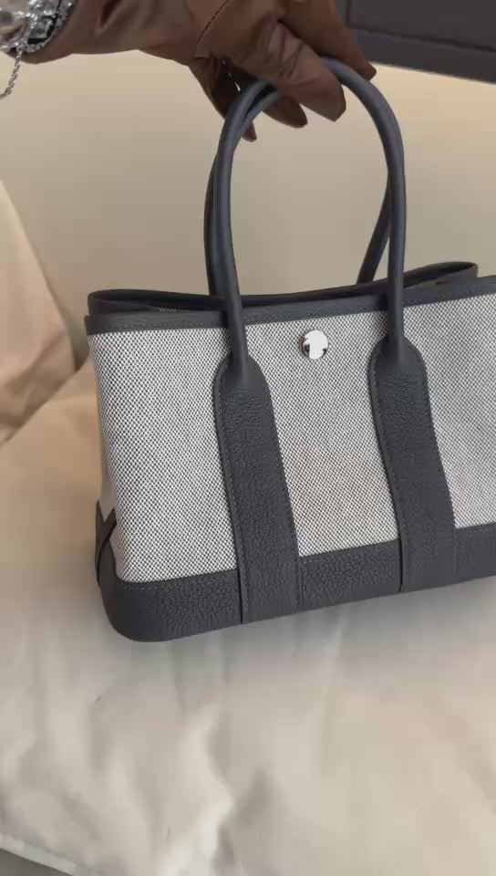 Pre-owned Certified Hermes Mini Garden Party 23 Canvas with Leather 85 Ardoise Grey, 2025 (K), Not Used, Full Set - Box, Dust Bag