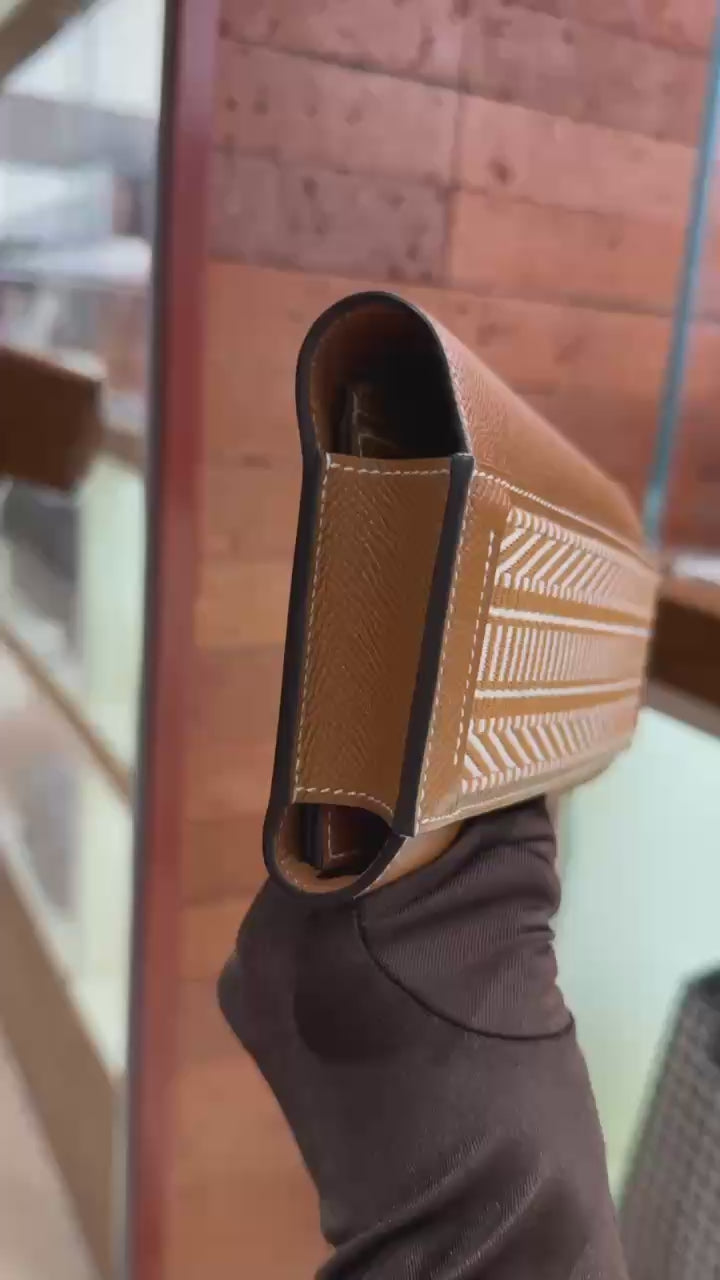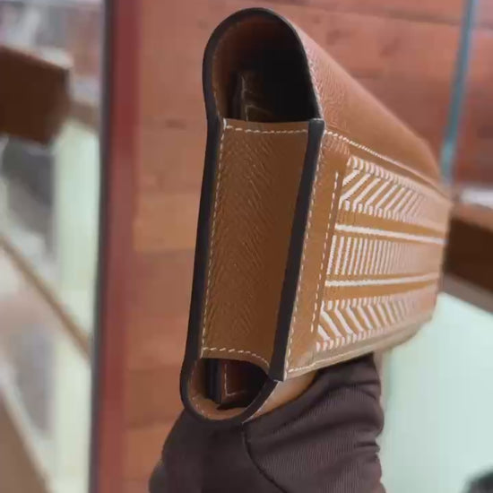 Pre-owned Certified Hermes Passant Wallet 3in1 Golden Brown Epsom, 2018, w/ box, felt protector