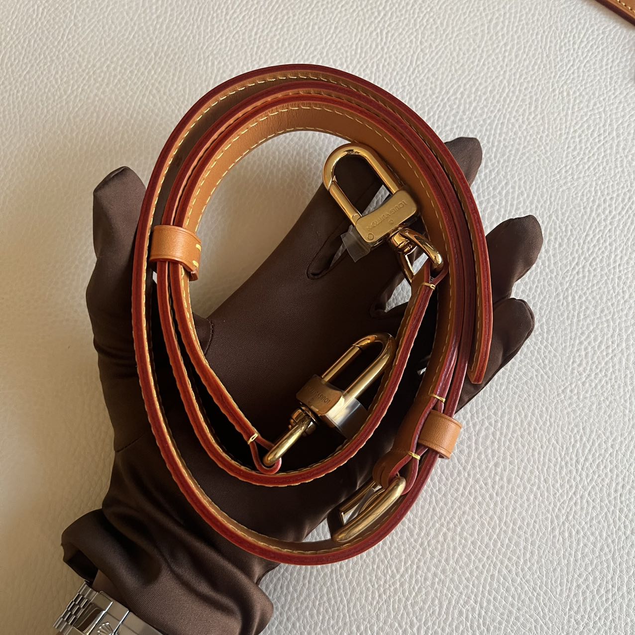Set: LV dust bag, leather strap, lock & ket with clochette, Preloved Branded dust bag, Authenticity Certificate