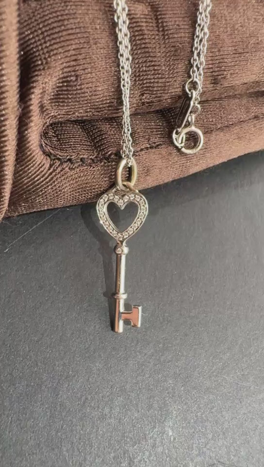 Pre-owned Certified Tiffany&Co. Diamond Heart Keys Pendant with Necklace, 18K White Gold with Diamonds