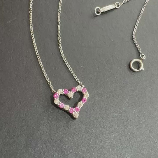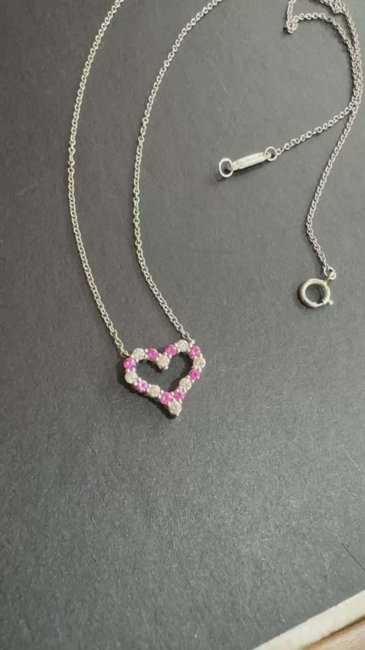 Pre-owned Certified Tiffany&Co. Ruby and Diamonds Heart Pendant with Necklace, Platinum