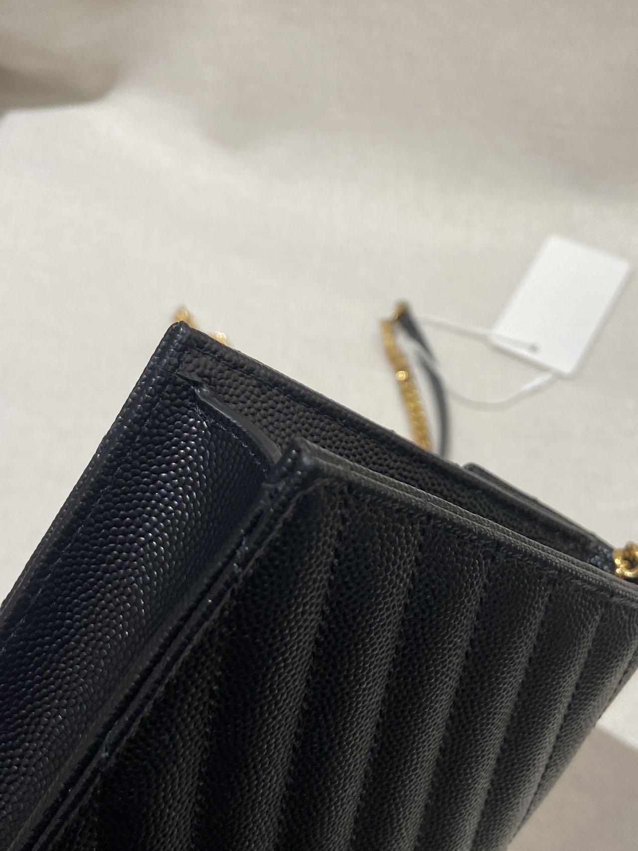 Pre-owned Certified YSL Saint Laurent Cassandre Envelope Chain Wallet in Black Caviar Leather with Golden Hardware, w/ dust bag