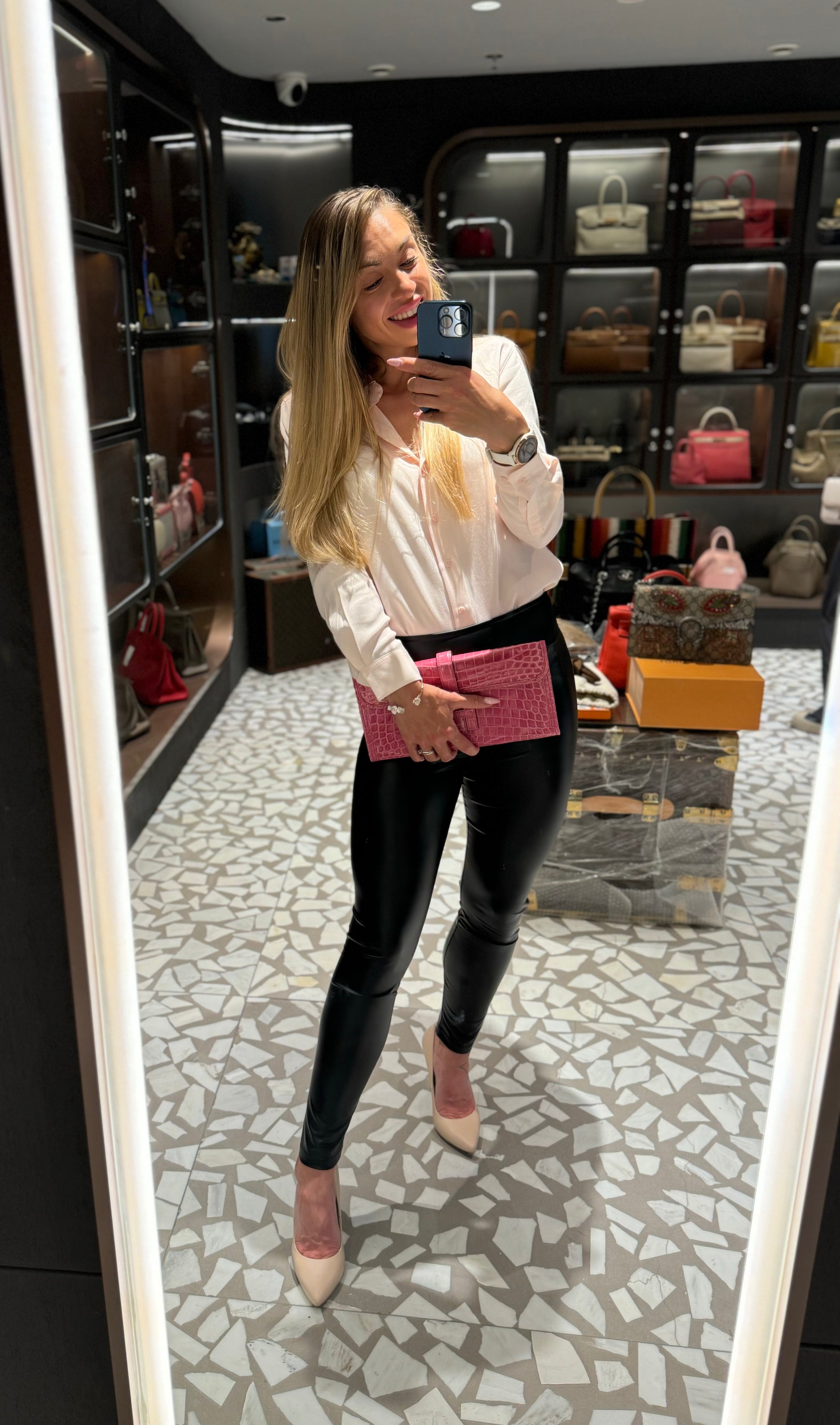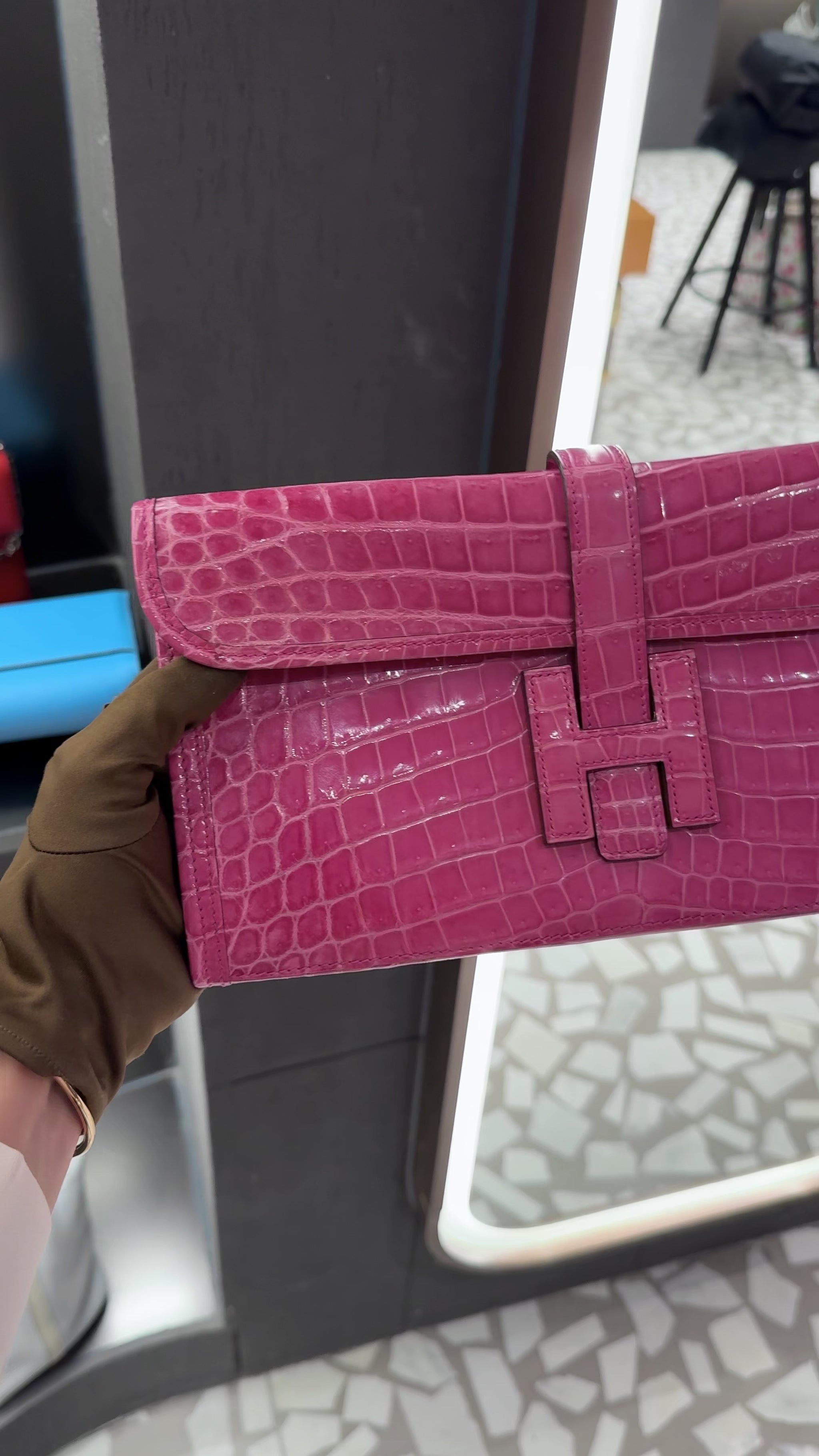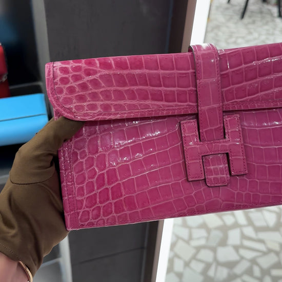 Pre-owned Hermes Jige Clutch Shiny Pink Crocodile Niloticus, 2012, w/ dust bag