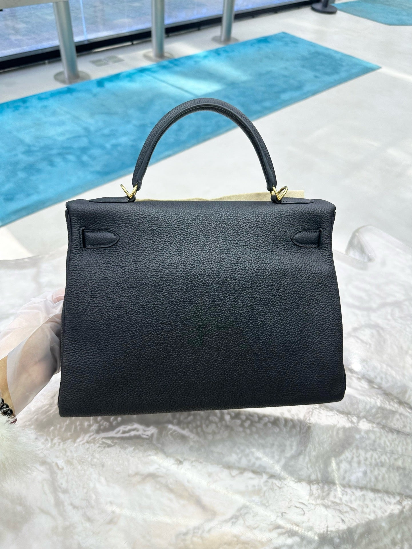 Pre-owned Hermes Kelly 32 Black Togo Leather Golden Hardware, 2018 (C stamp), w/ lock&key with clochette, dust bag