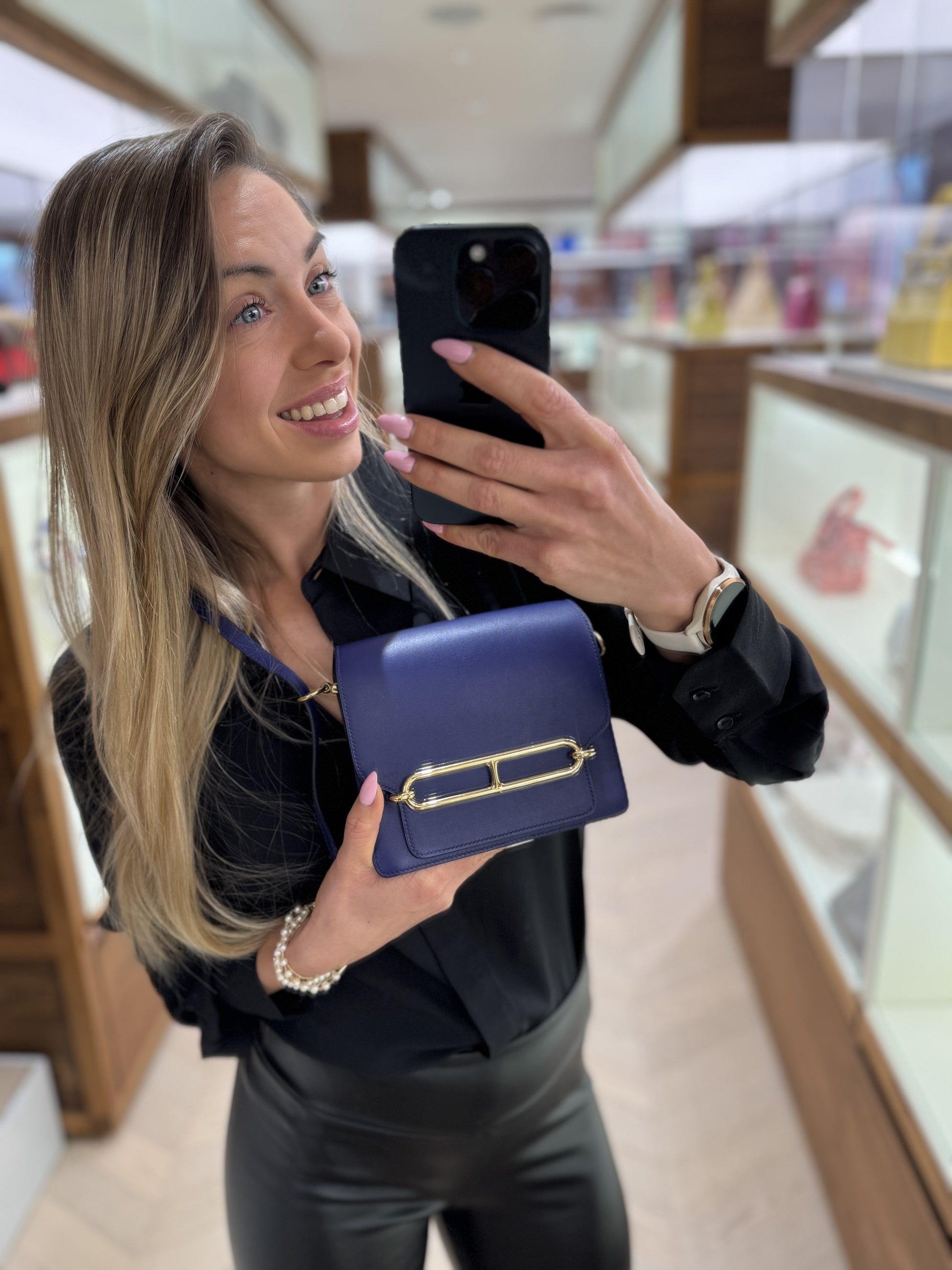 Pre-owned Hermes Roulis Mini M3 Ink Blue Swift Leather Golden Hardware, 2019