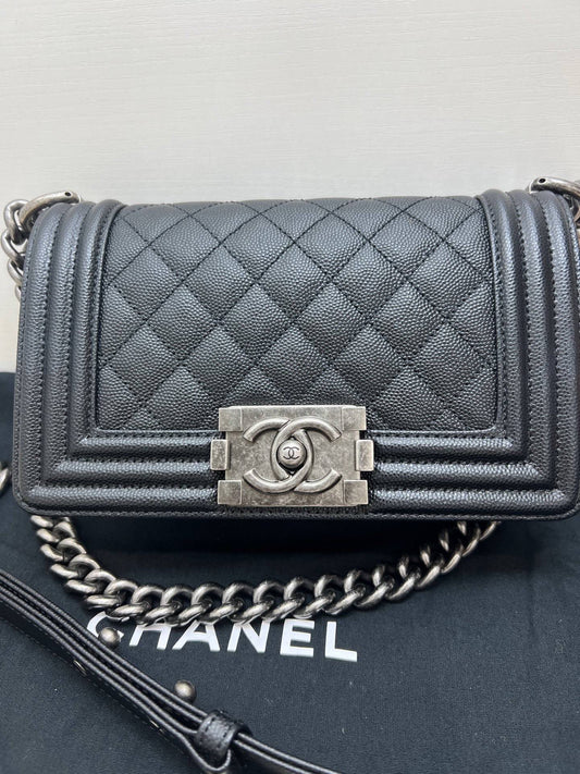Pre-owned Certified Chanel Boy Bag Small Black Caviar Leather Dark Silver Hardware, 2020-2021, w/ full set - box, dust bag, Authenticity Card