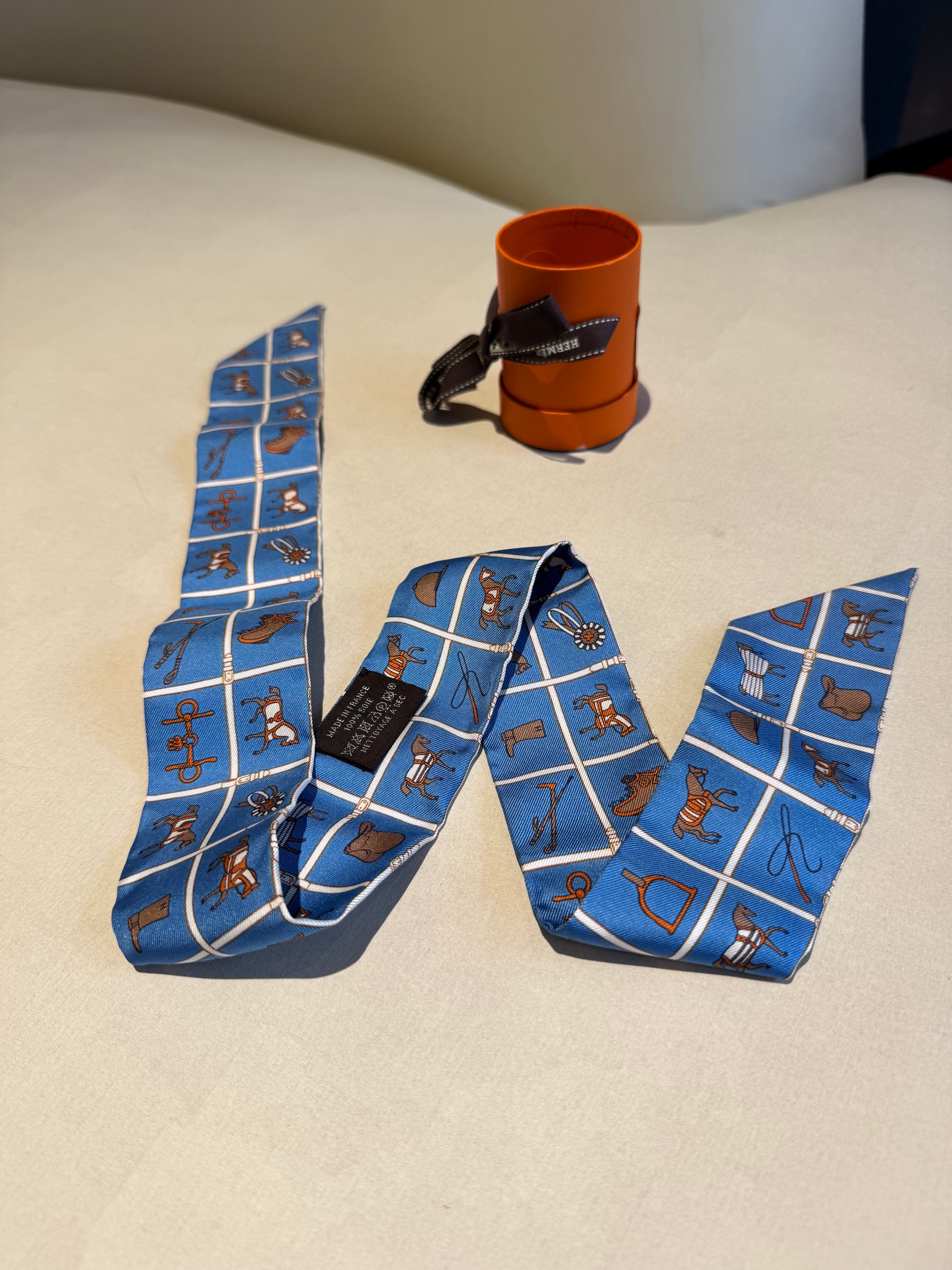 Not Used Hermes Silk Twilly Bright Blue Shades, w/ box