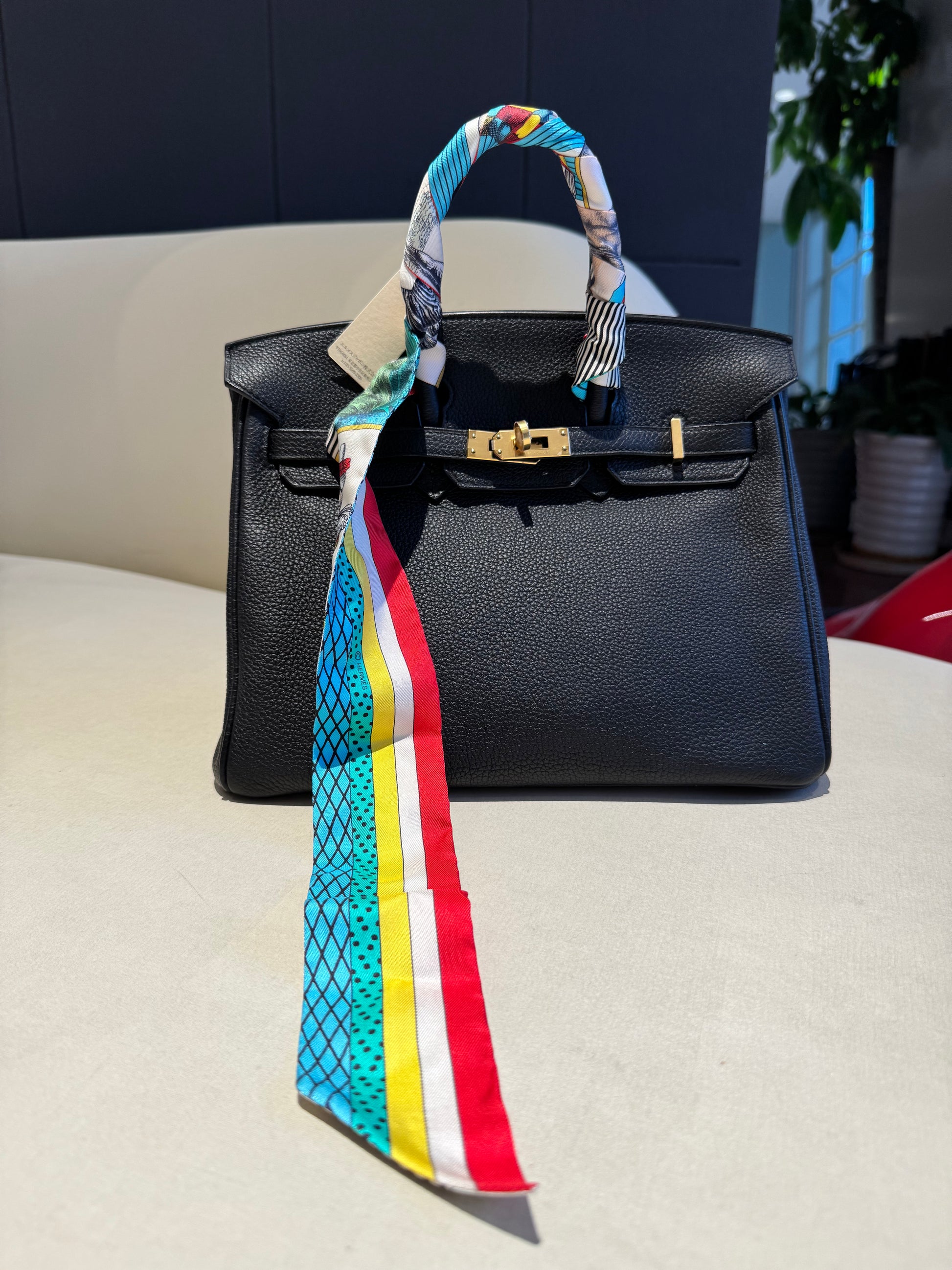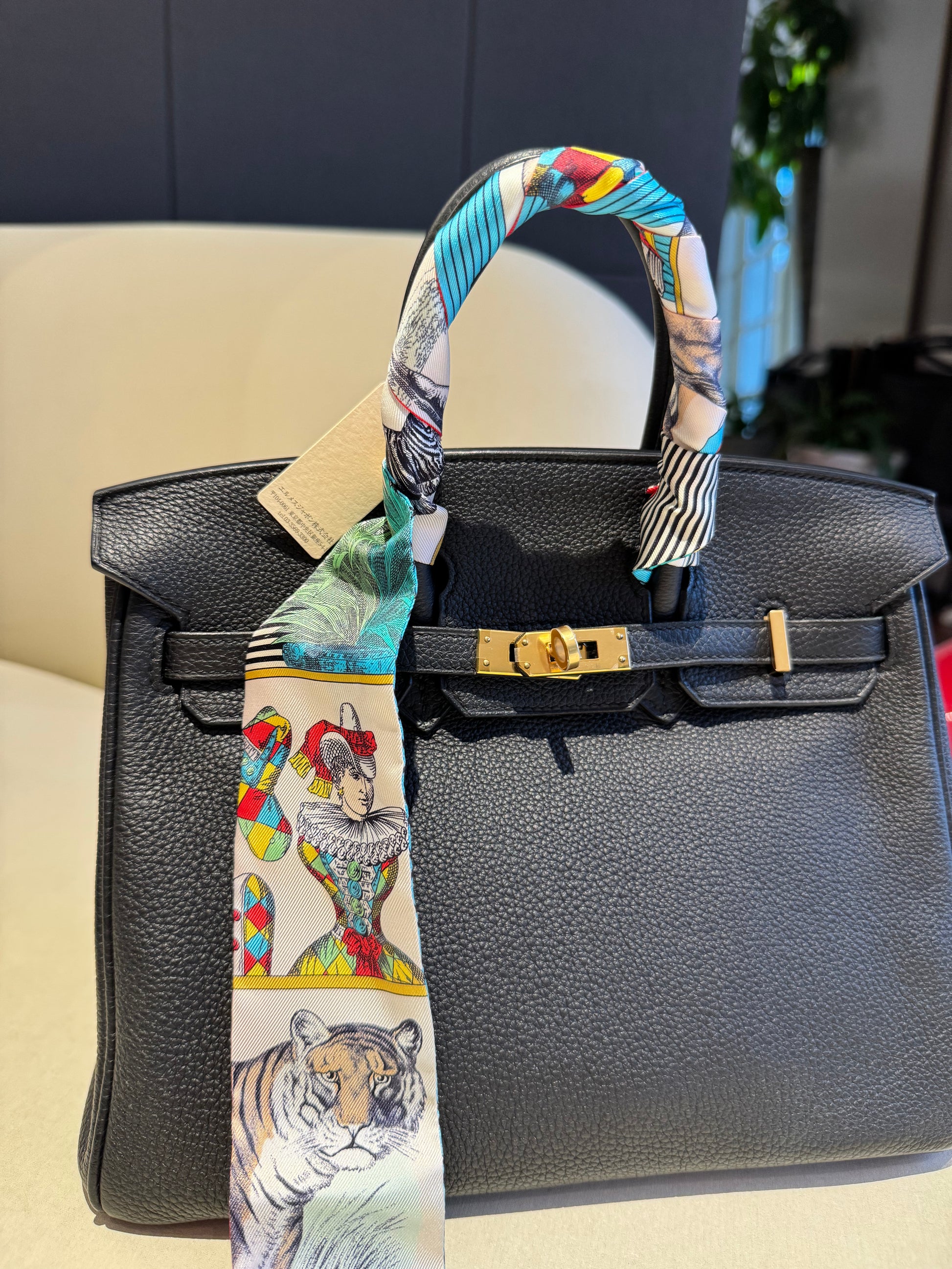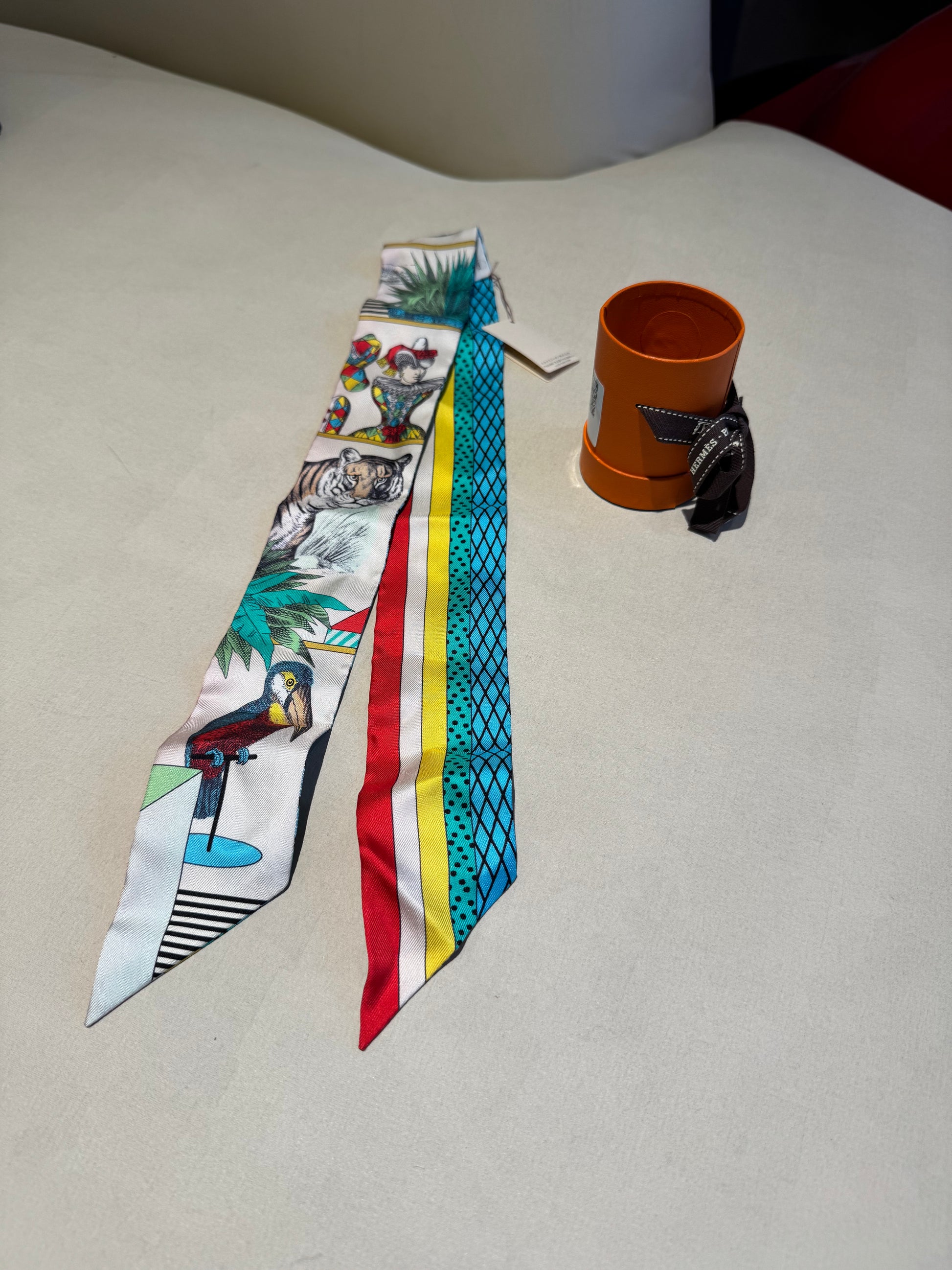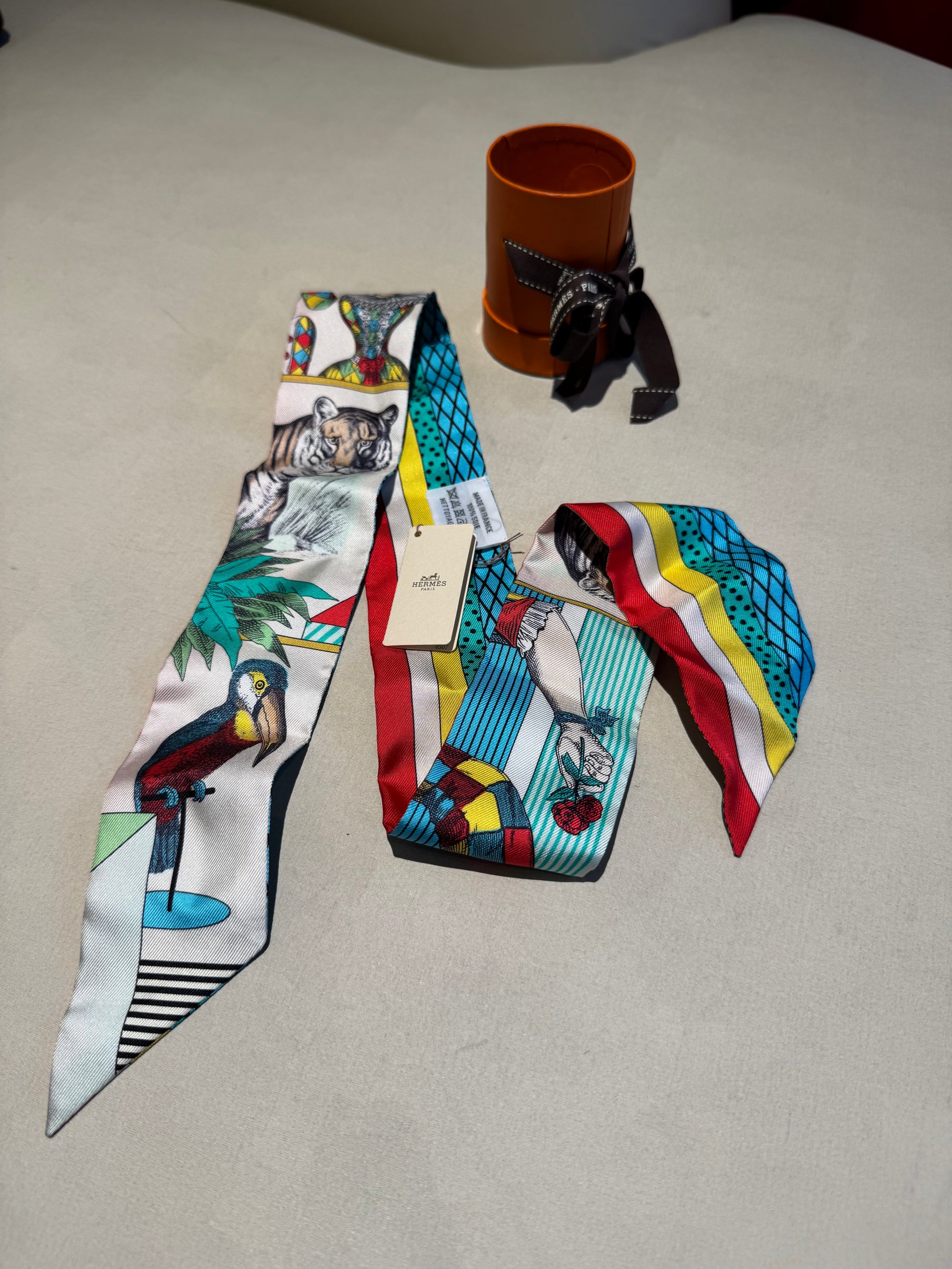 Not Used Hermes Silk Twilly "Grand Theatre" with red, w/ box