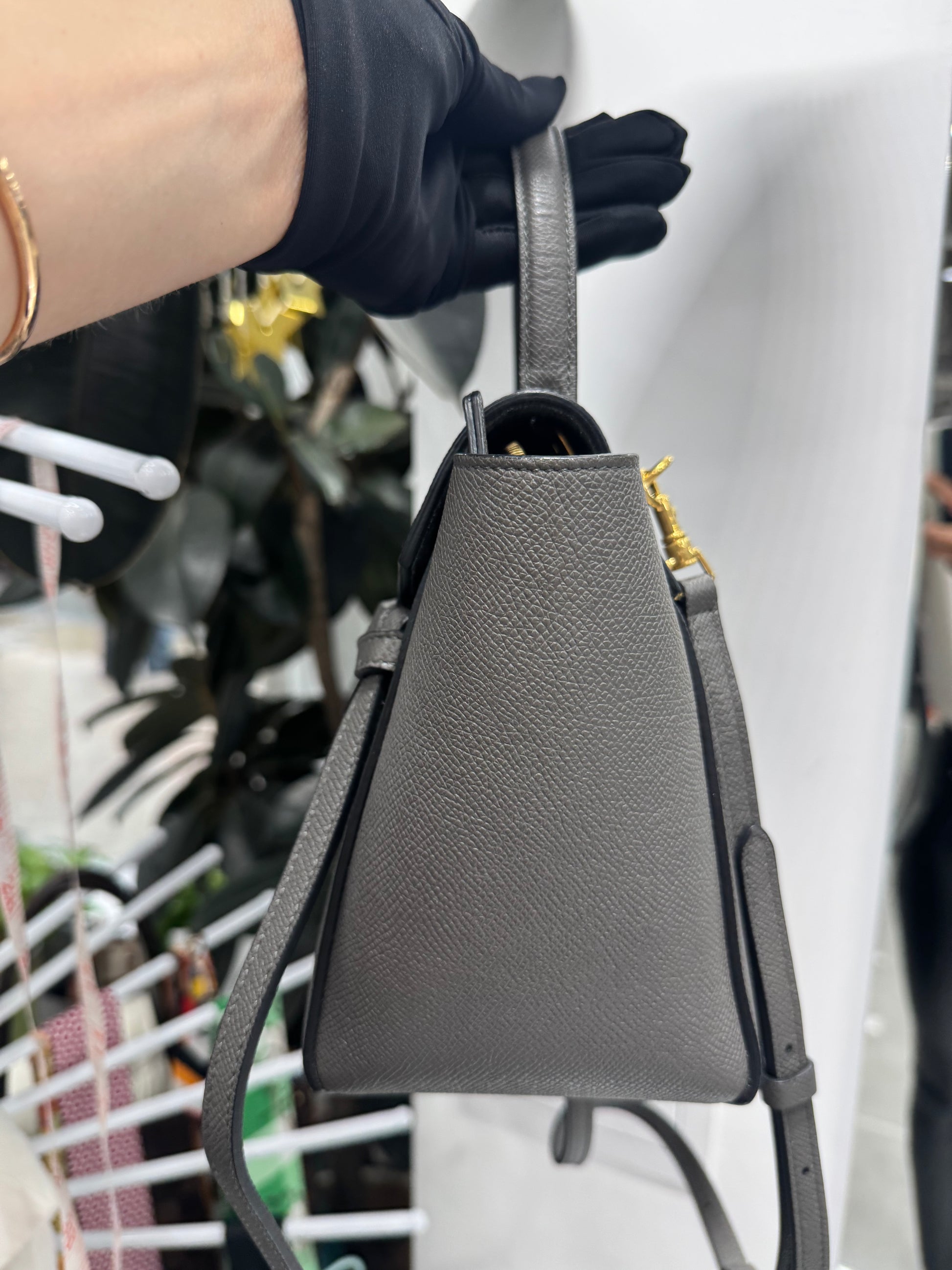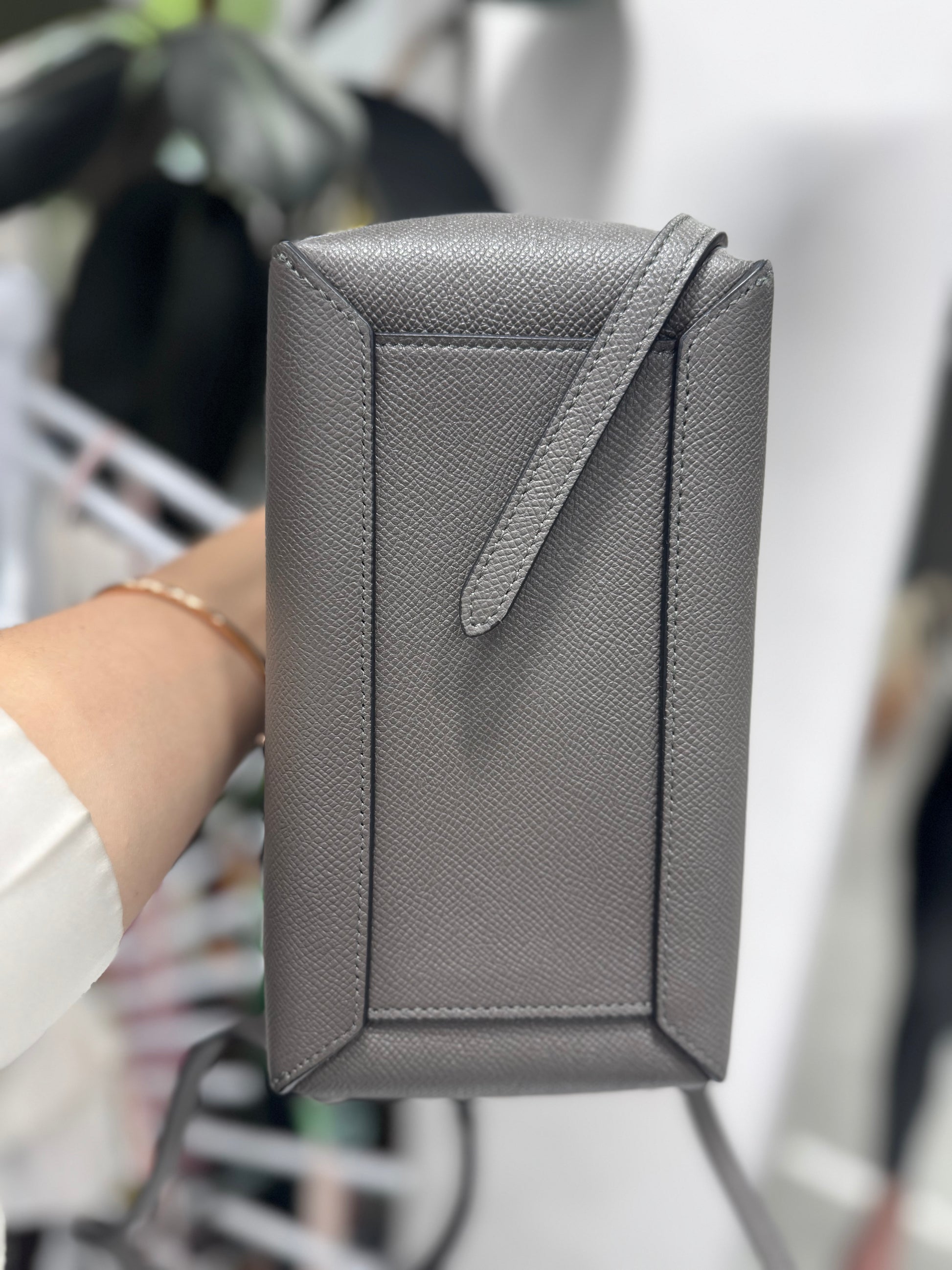 Pre-owned Certified Celine Nano Belt Grey Grained Calfskin, w/ dust bag