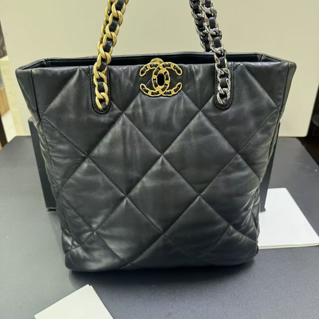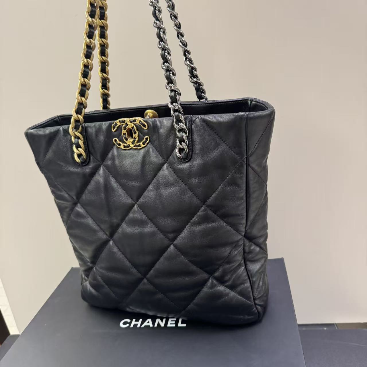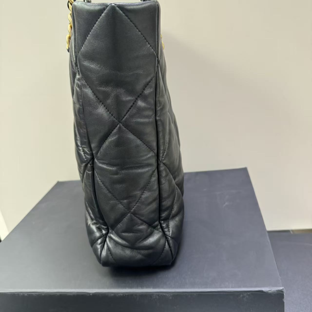 Pre-owned Certified Chanel 19 Shopper Tote Black Lambskin Golden Hw, 2023 Microchipped, w/ Full set - Chanel box, dust bag