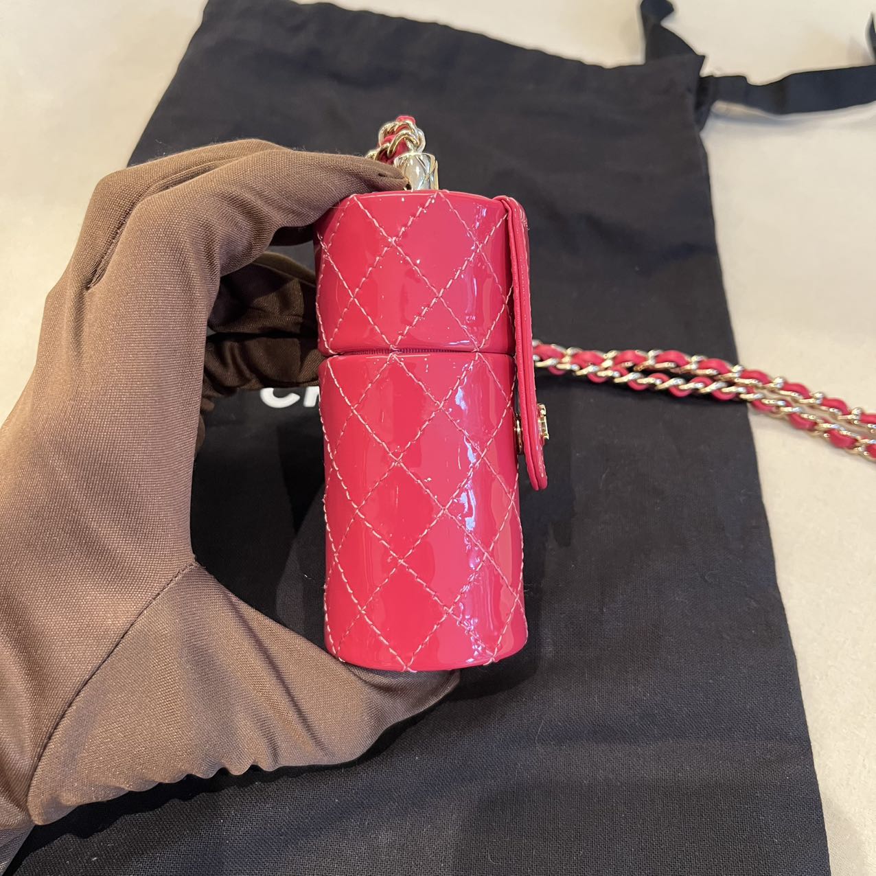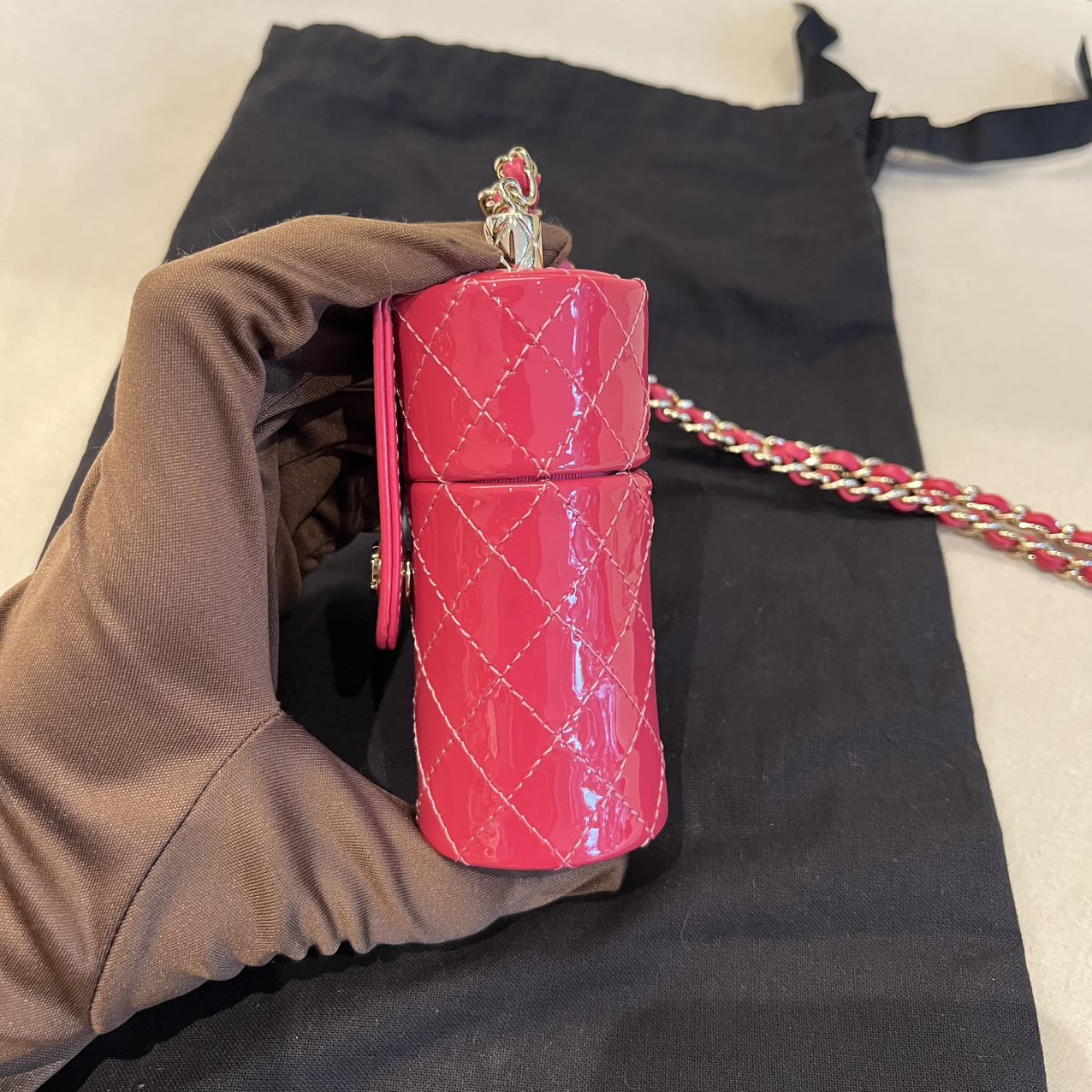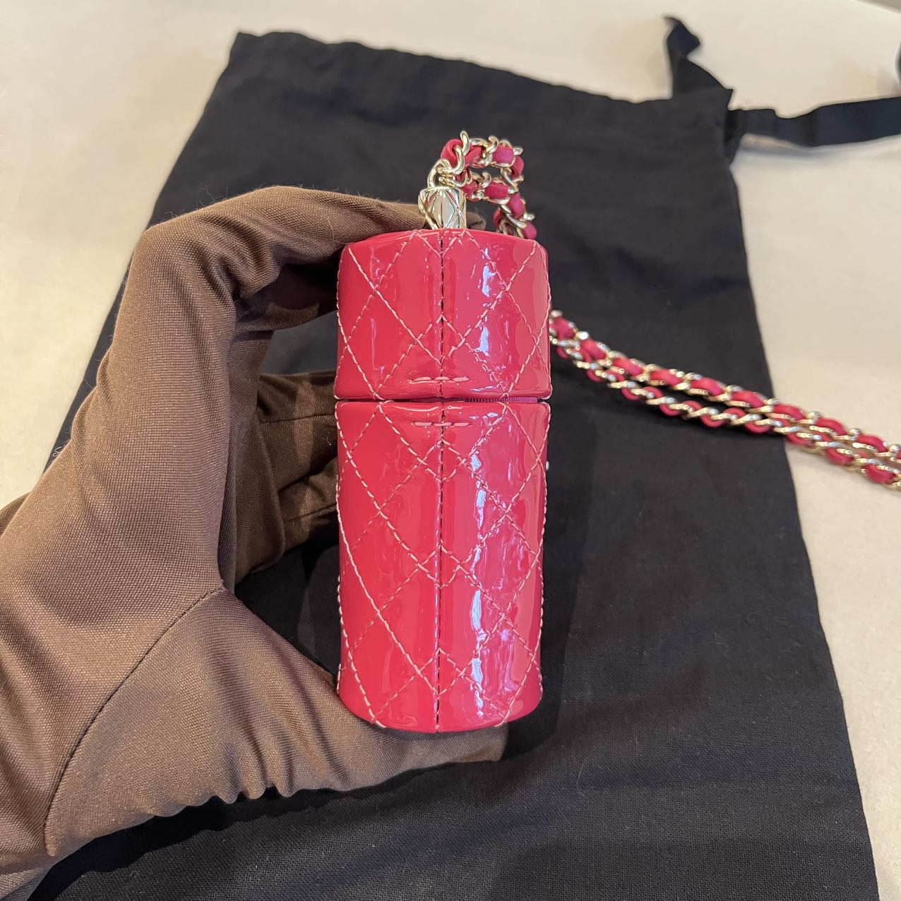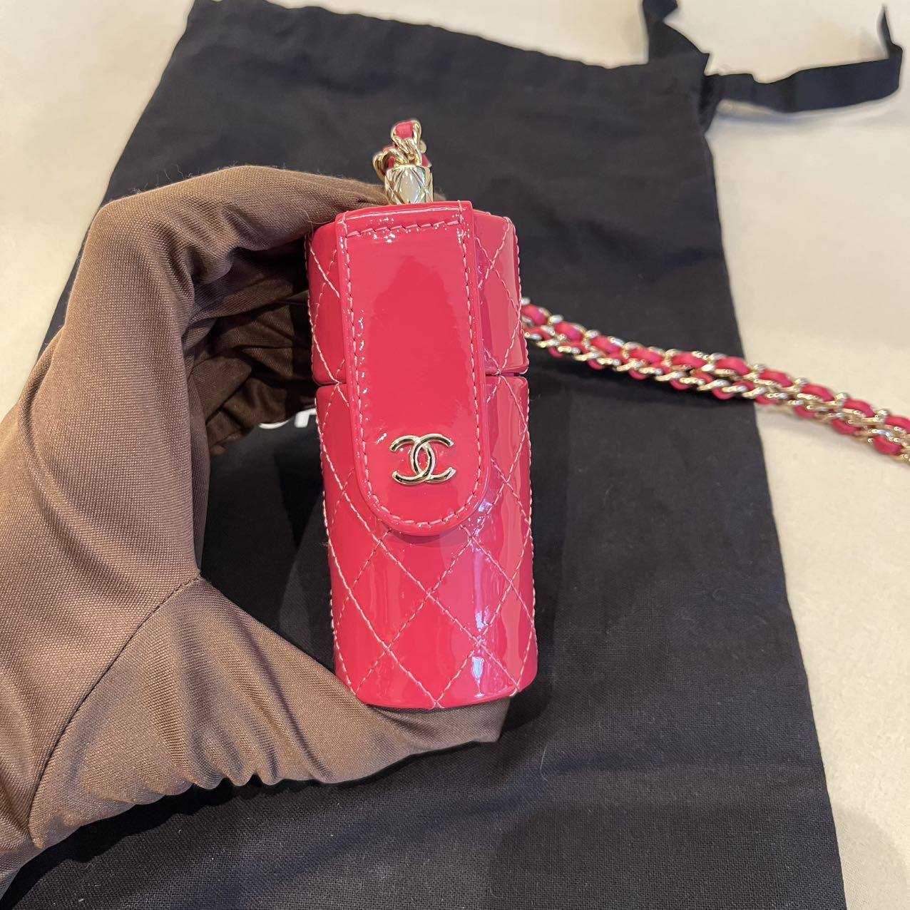 Pre-owned Certified Chanel Lipstick Bag on Chain Rose Pink Patent with Leather Golden Hardware, 2020-2021, w/ dust bag
