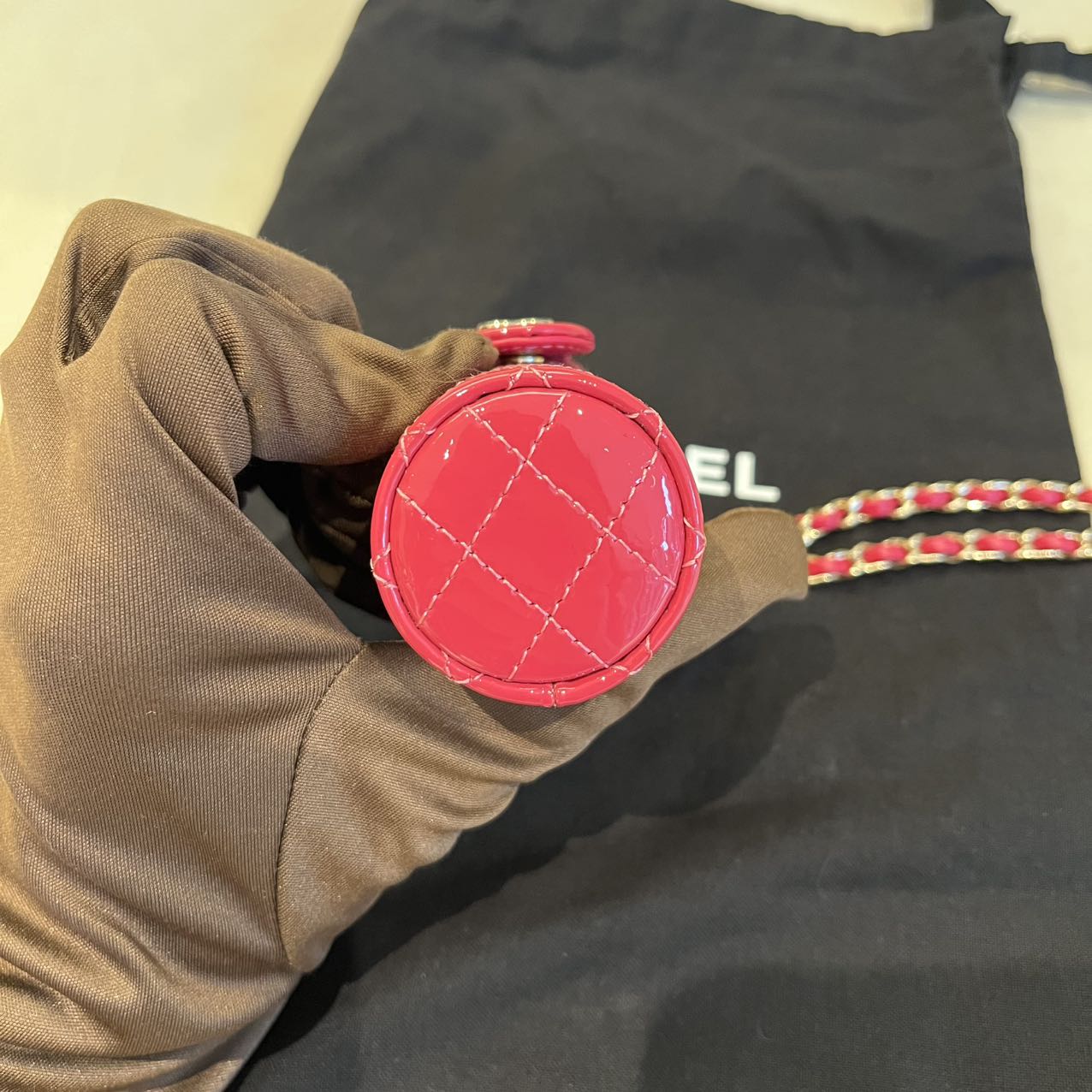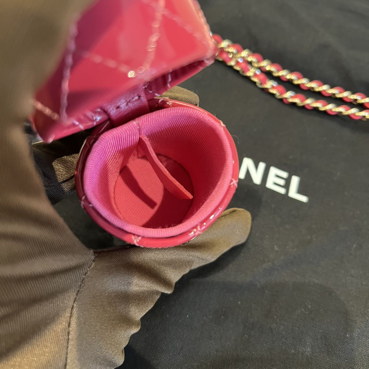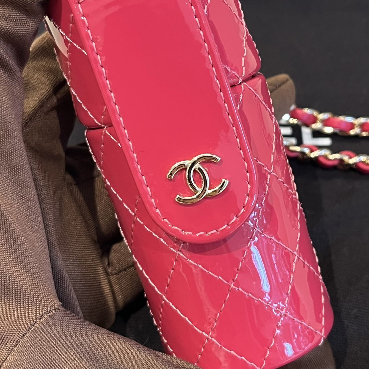 Pre-owned Certified Chanel Lipstick Bag on Chain Rose Pink Patent with Leather Golden Hardware, 2020-2021, w/ dust bag