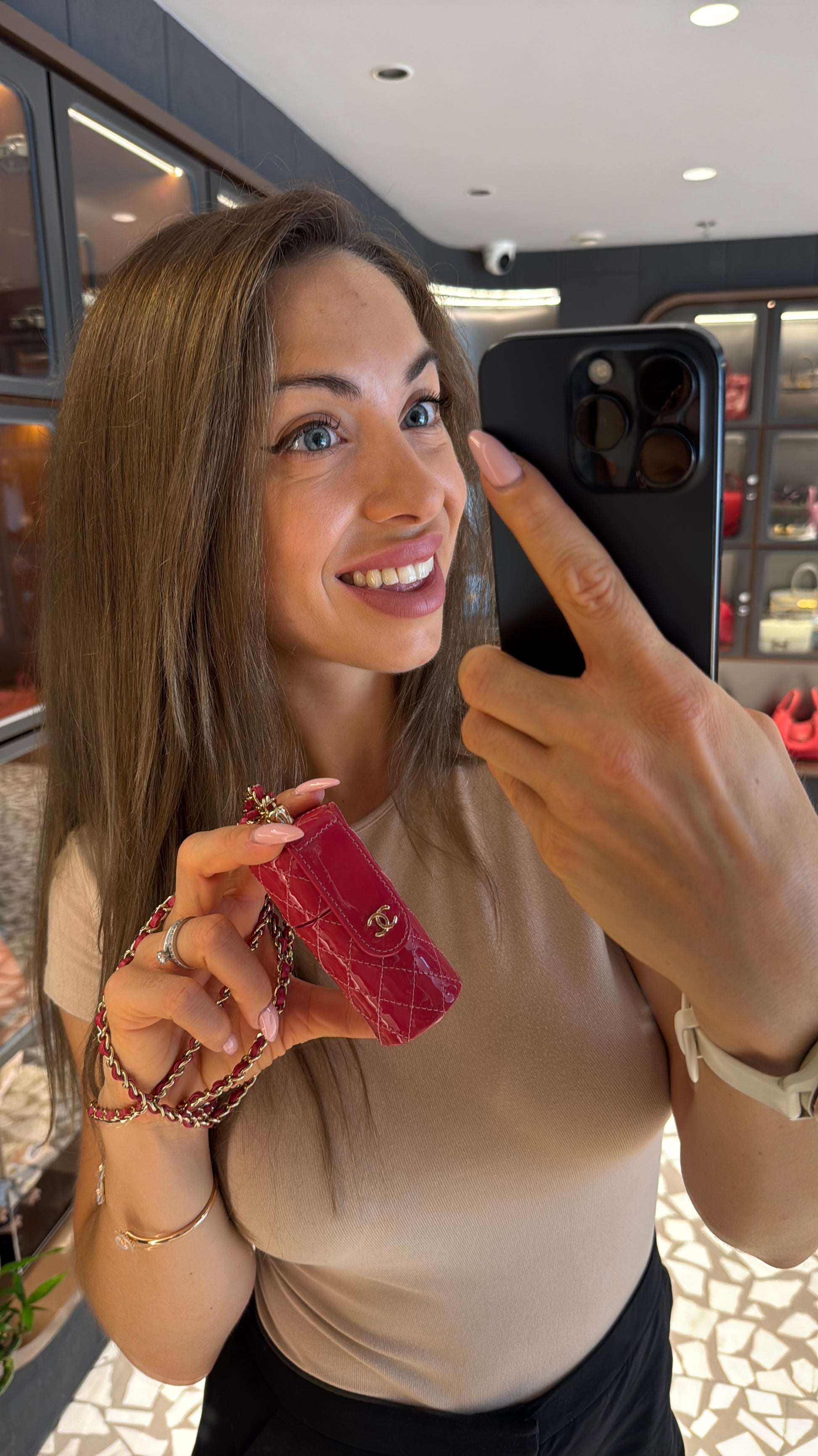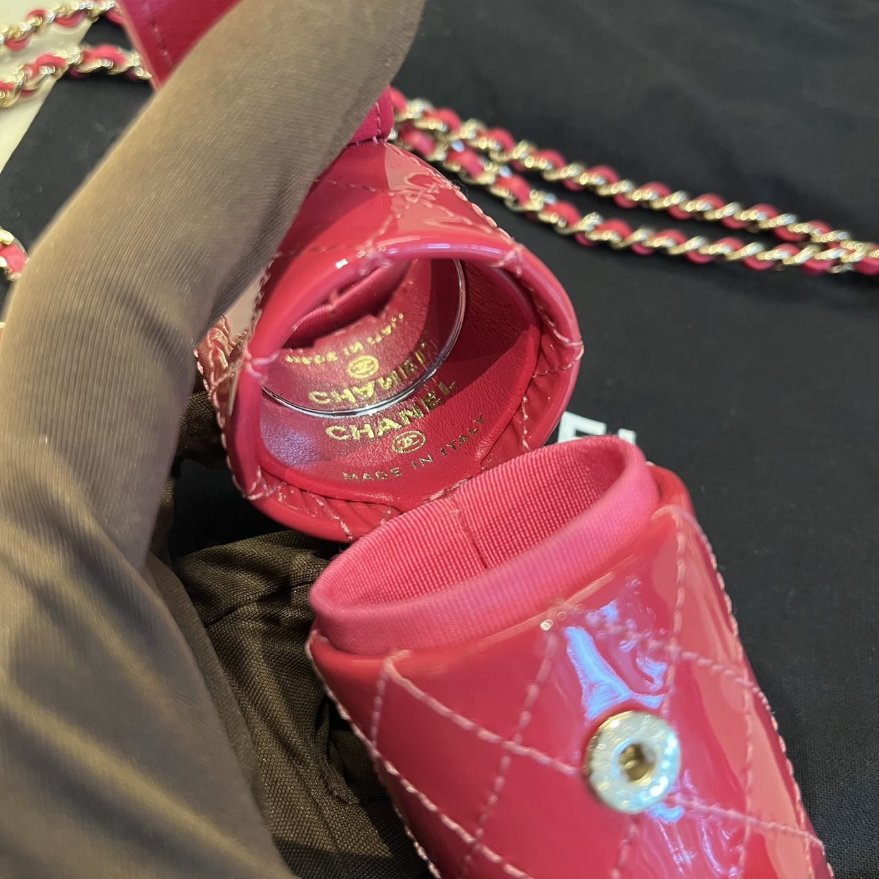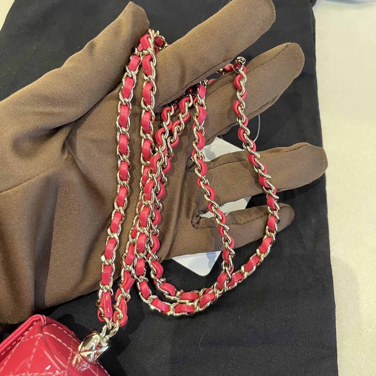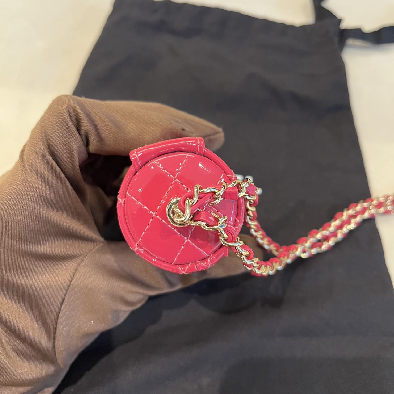 Pre-owned Certified Chanel Lipstick Bag on Chain Rose Pink Patent with Leather Golden Hardware, 2020-2021, w/ dust bag