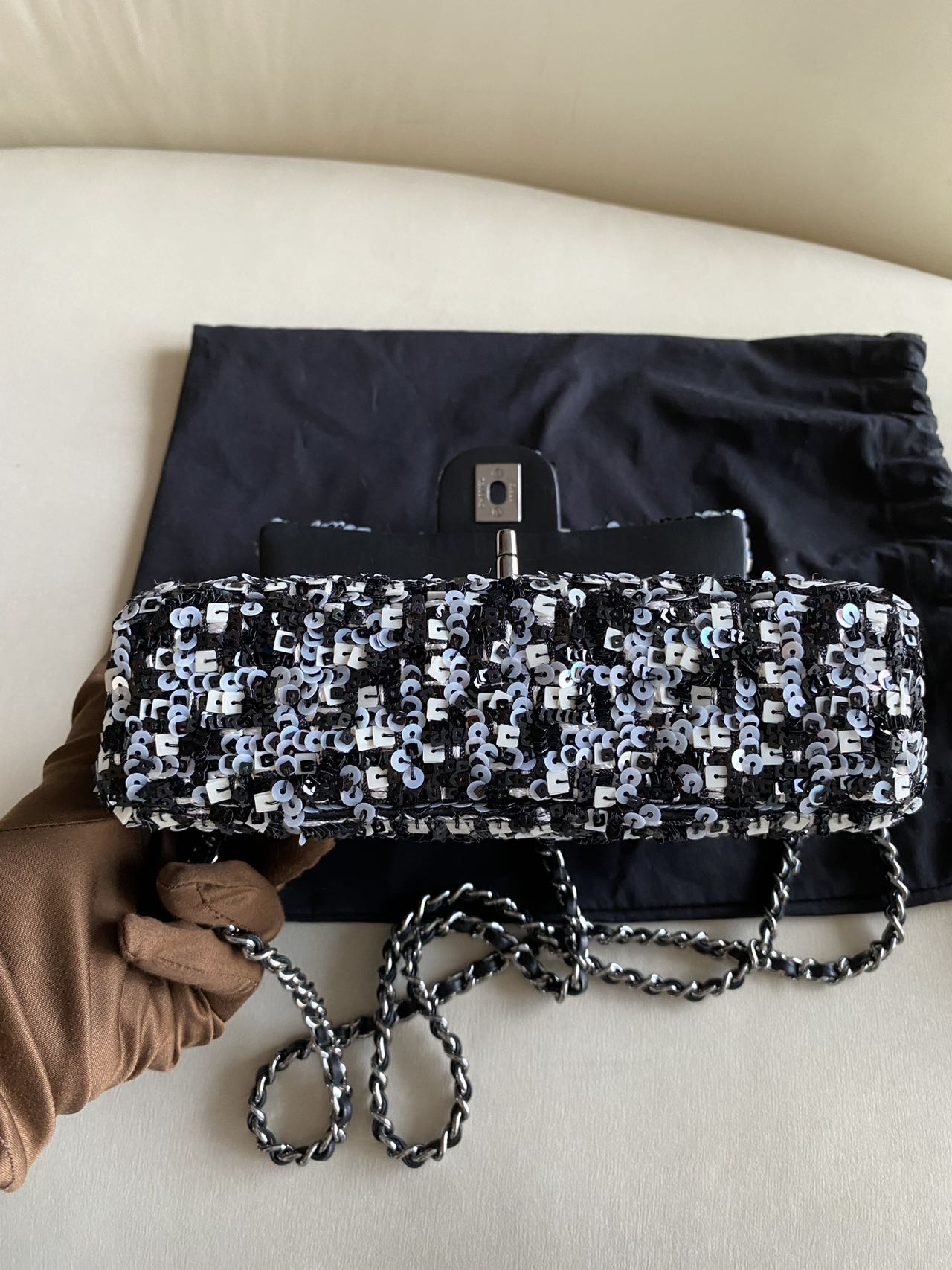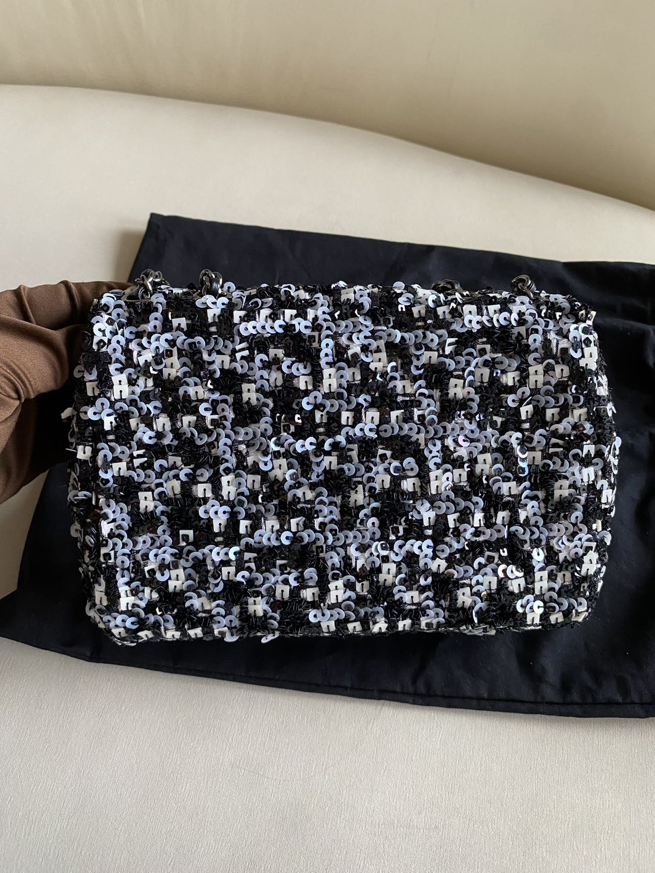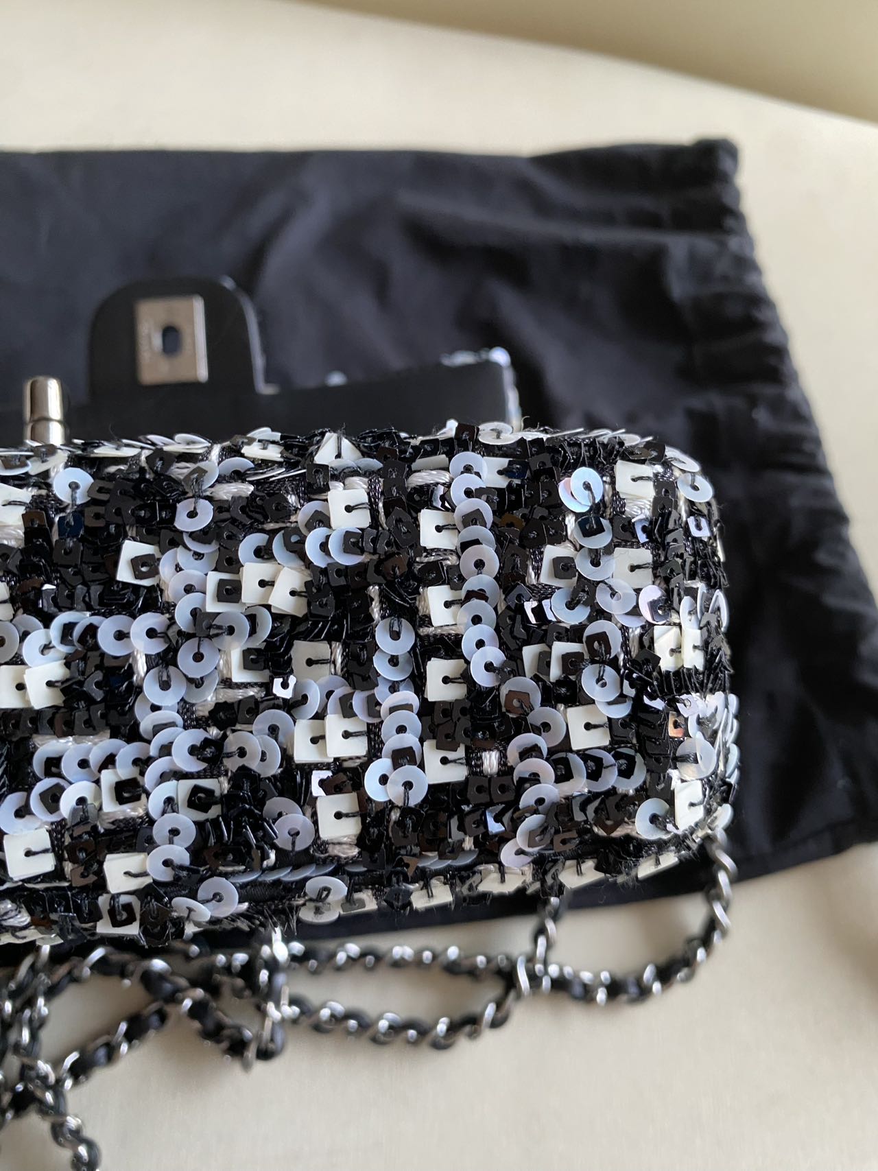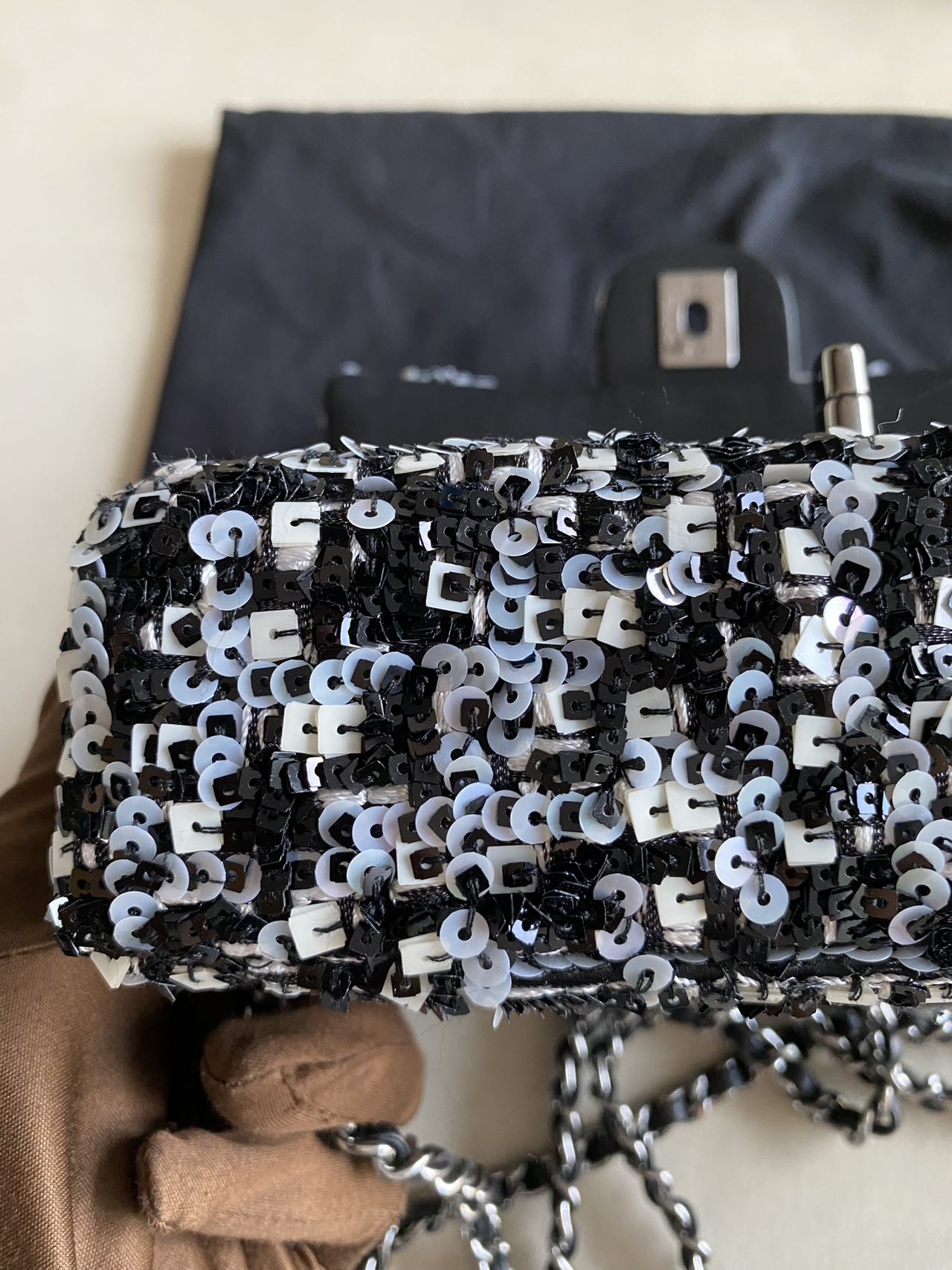 Pre-owned Certified Chanel Mini Classic Flap CF Rectangle with Sequins with Black Shiny Hardware, 2020-2021, w/ Full Set
