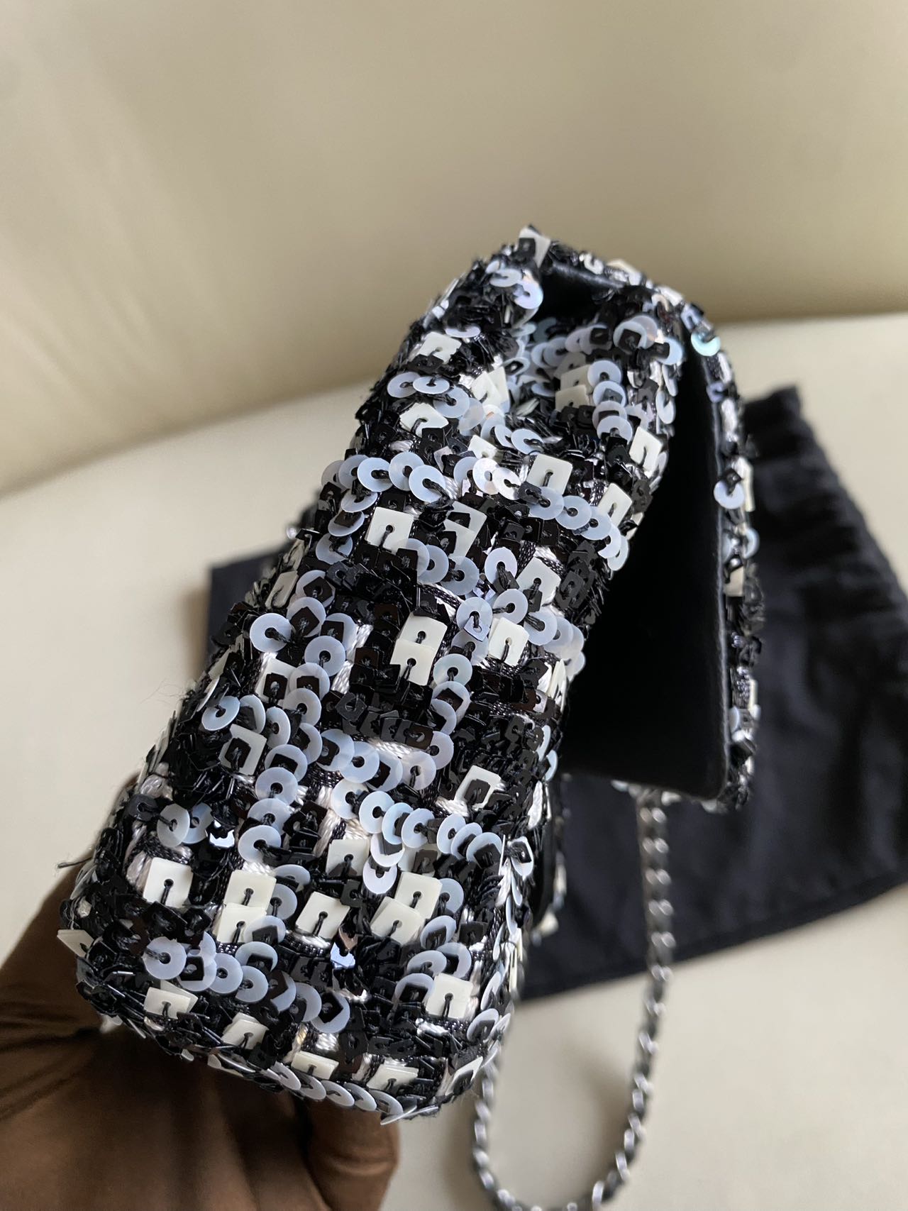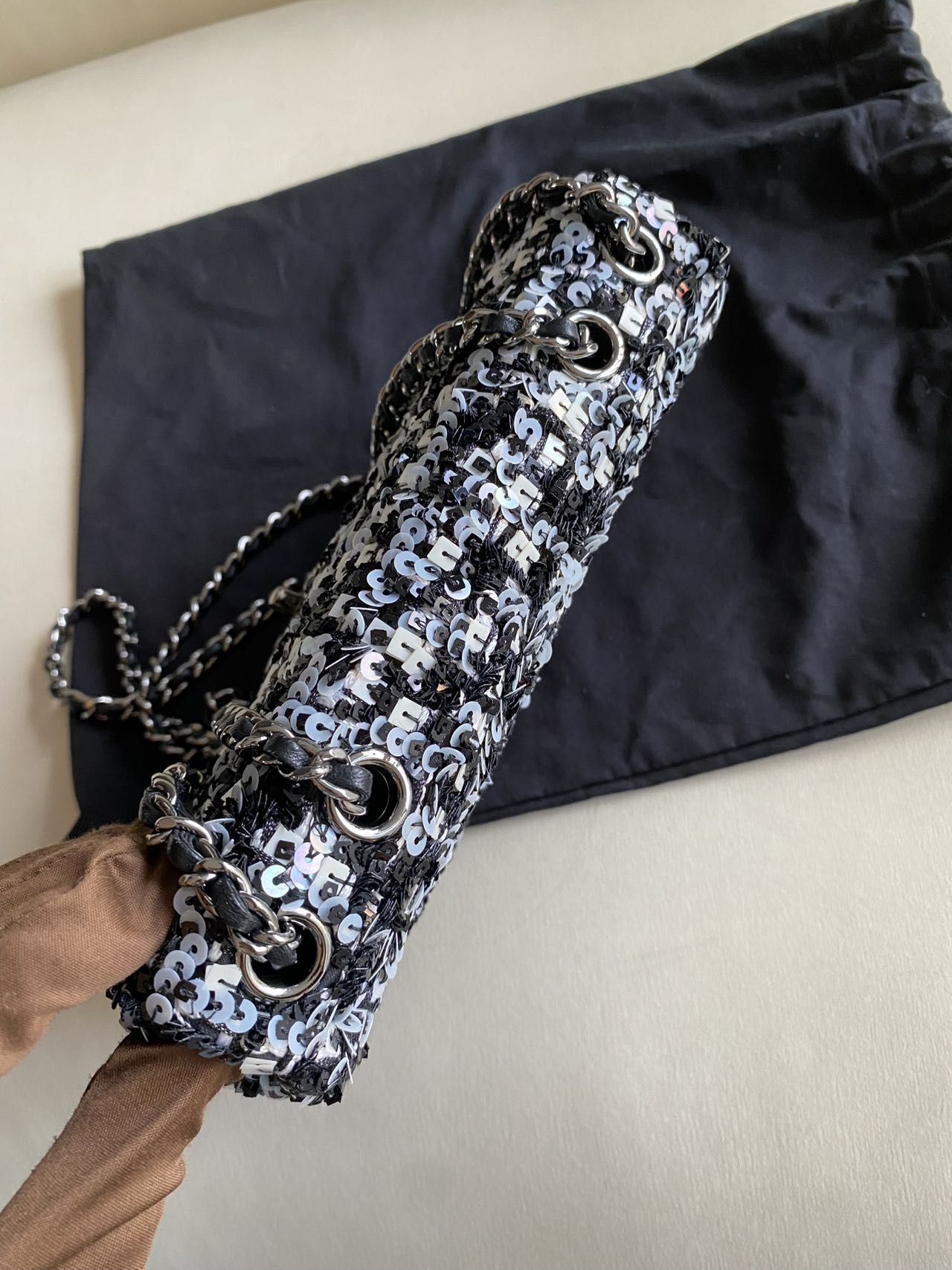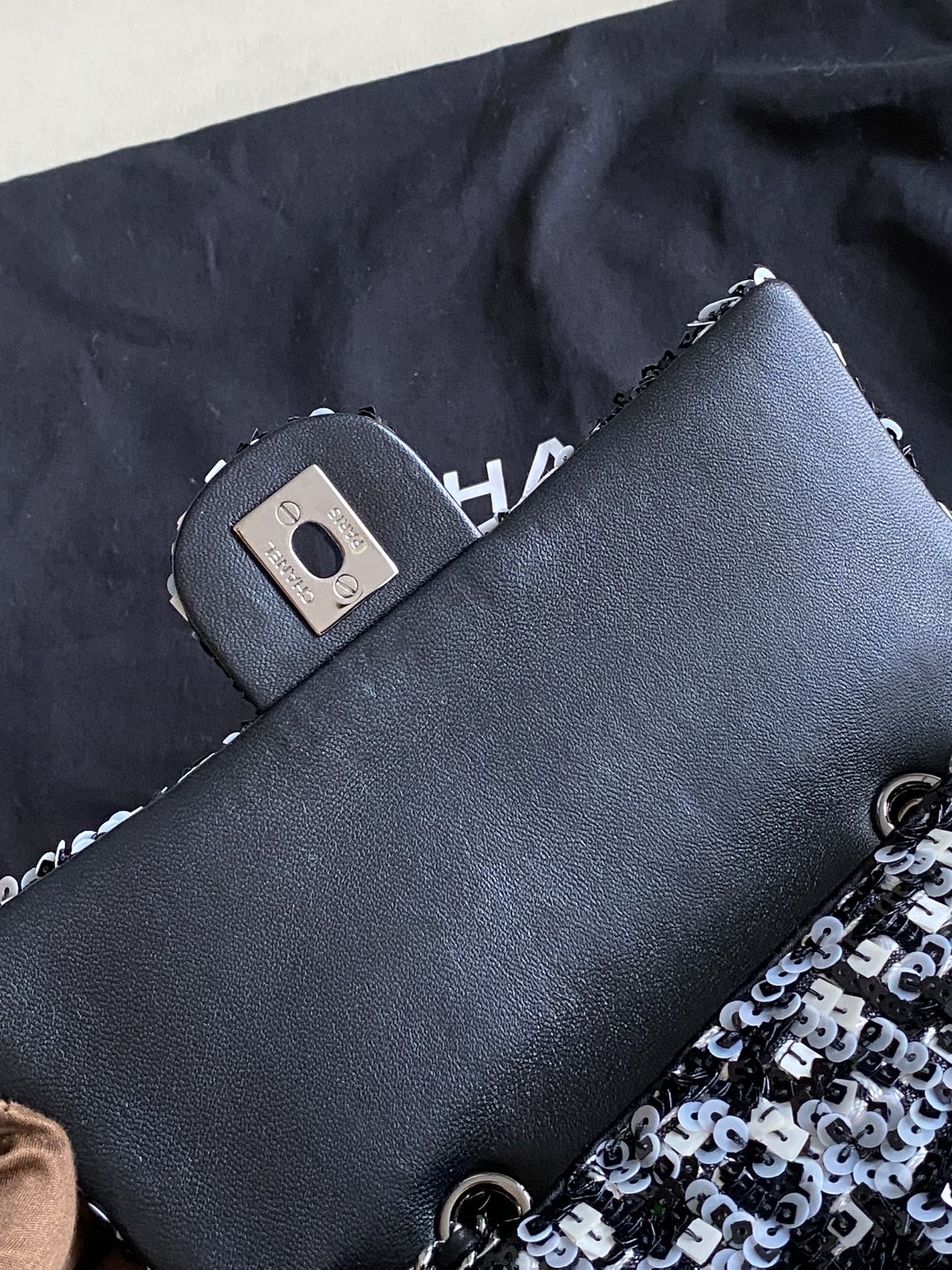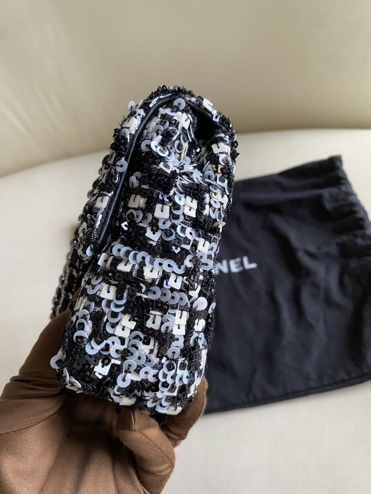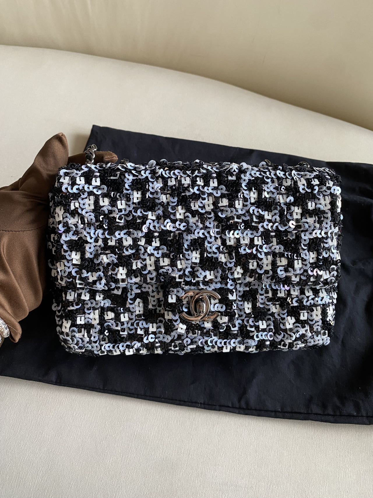 Pre-owned Certified Chanel Mini Classic Flap CF Rectangle with Sequins with Black Shiny Hardware, 2020-2021, w/ Full Set