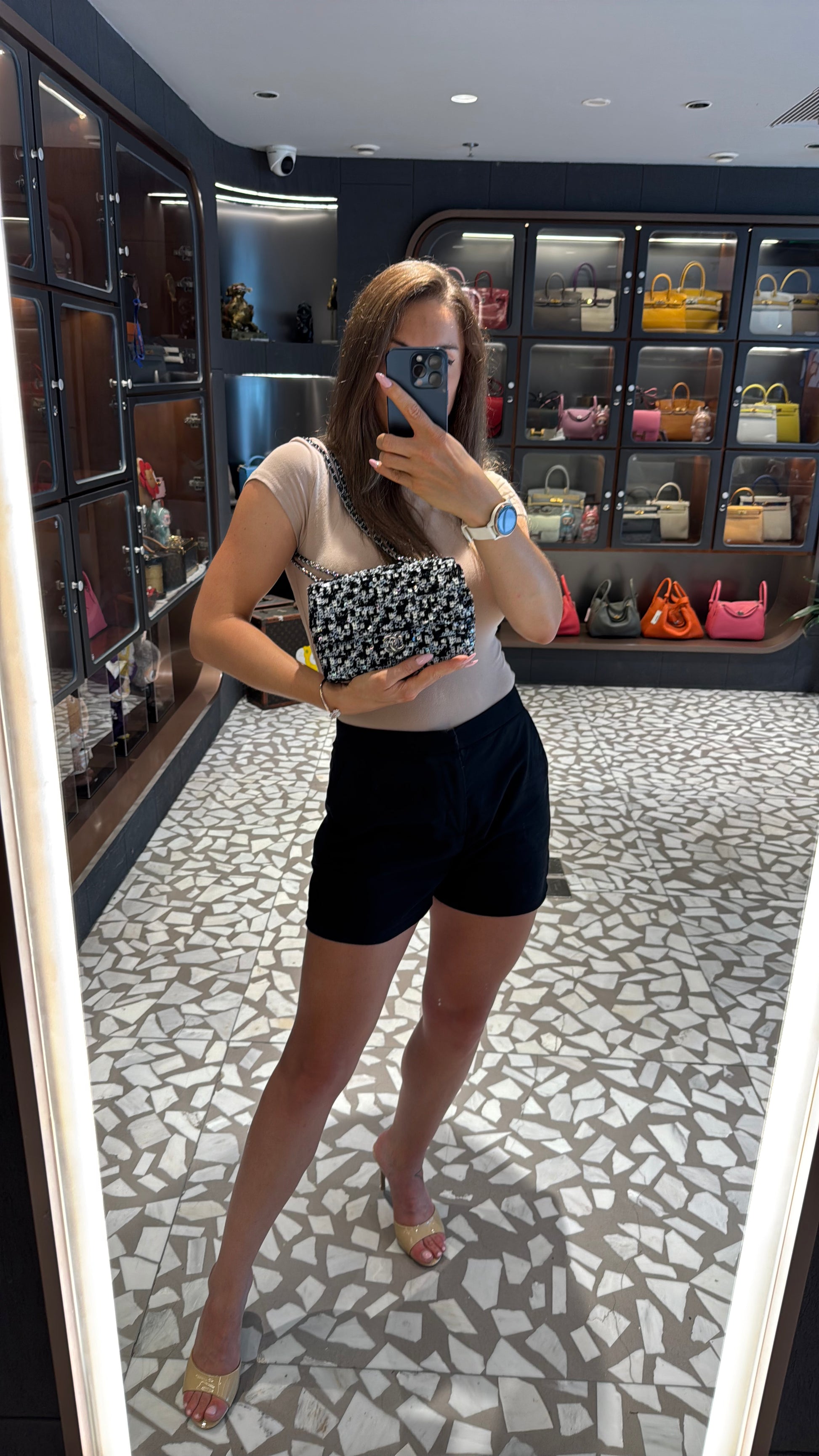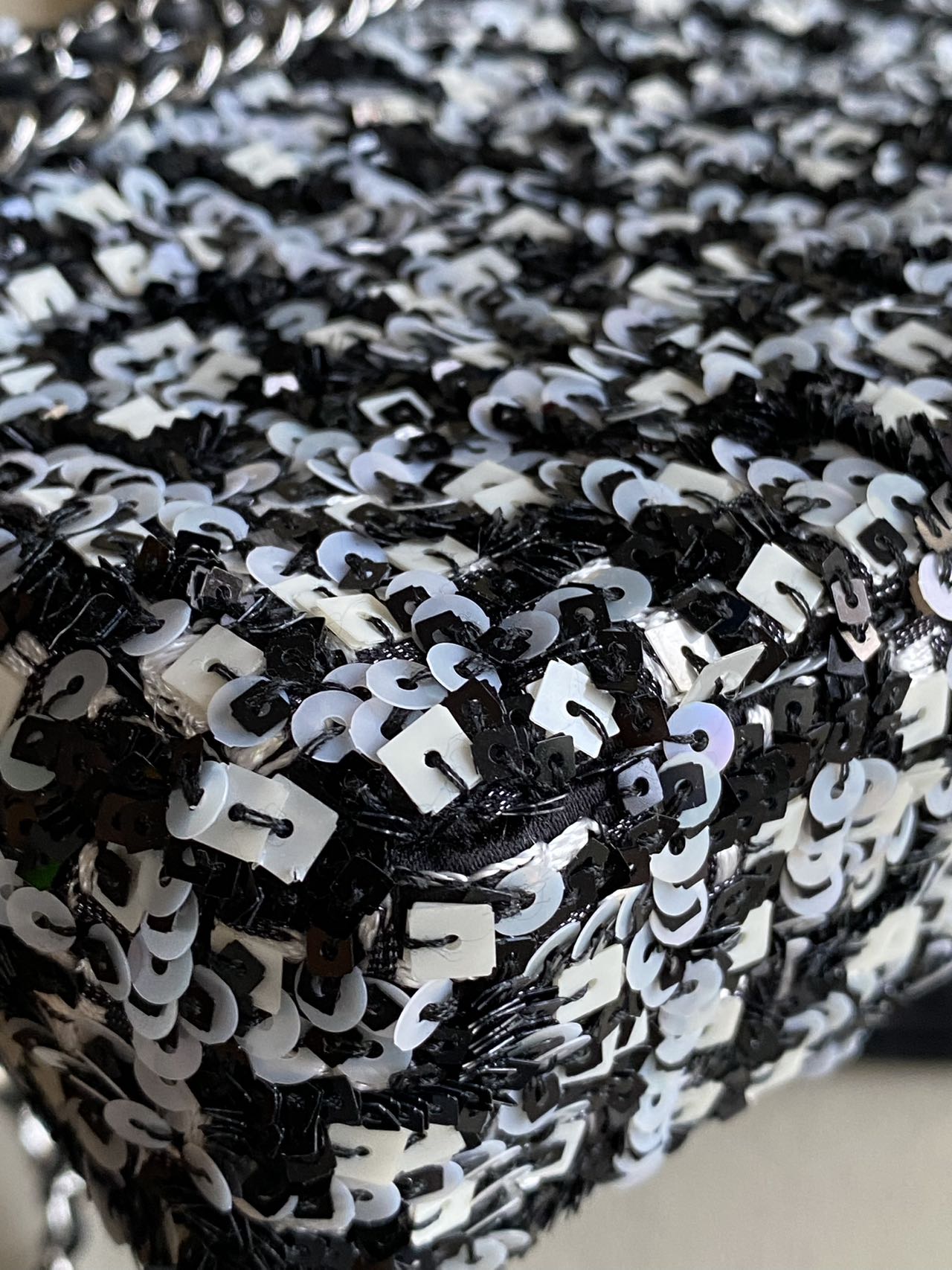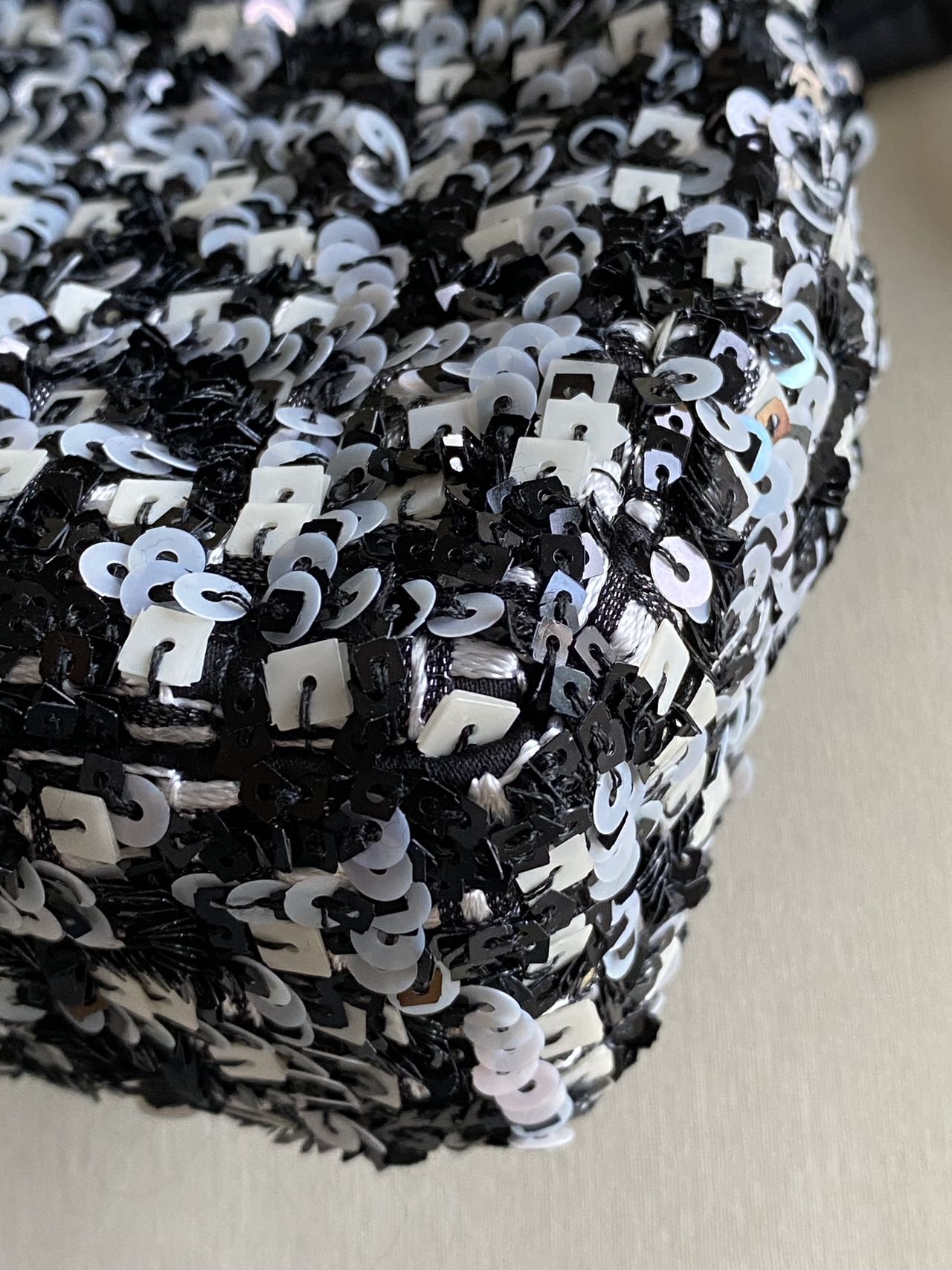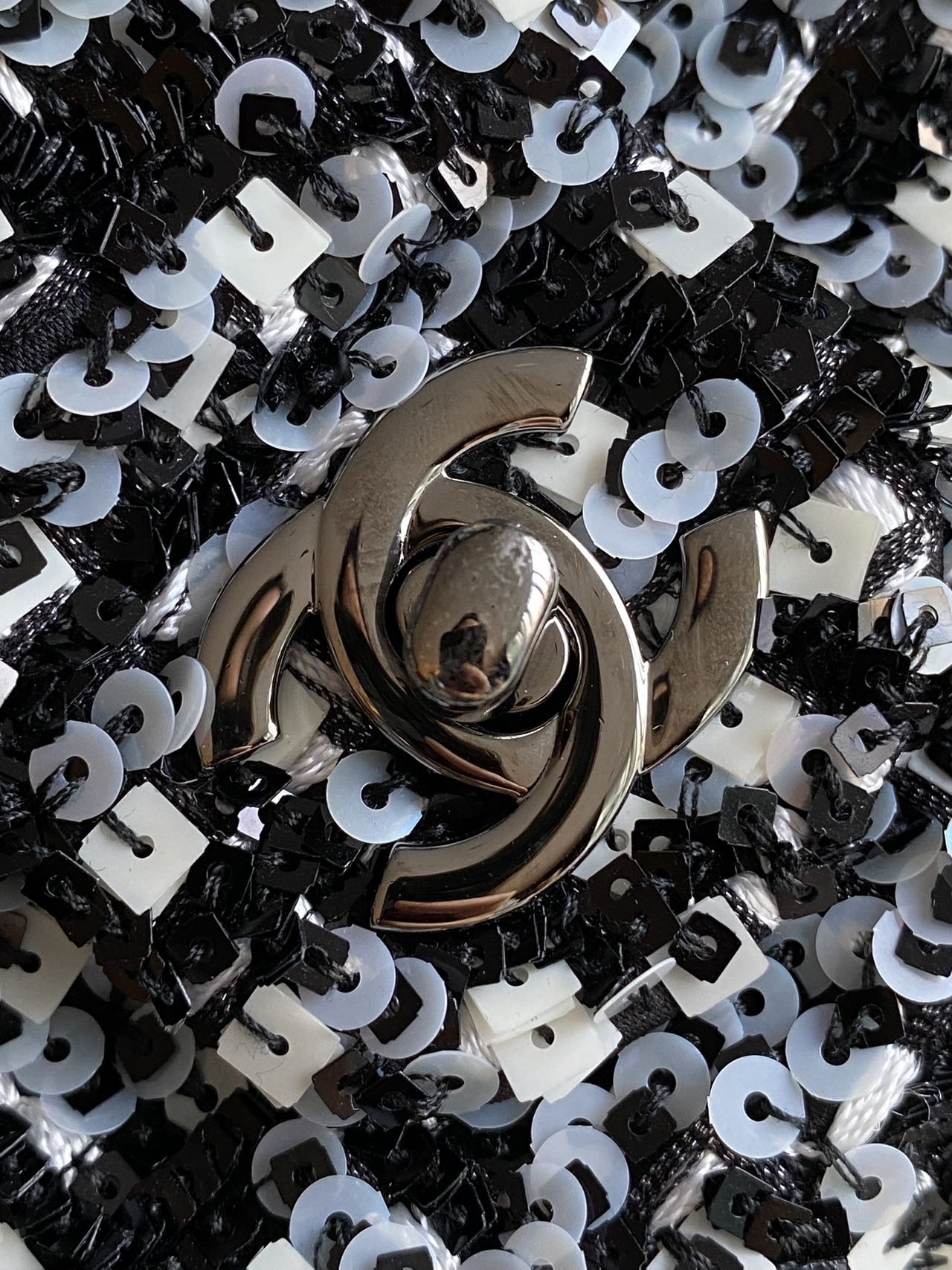 Pre-owned Certified Chanel Mini Classic Flap CF Rectangle with Sequins with Black Shiny Hardware, 2020-2021, w/ Full Set