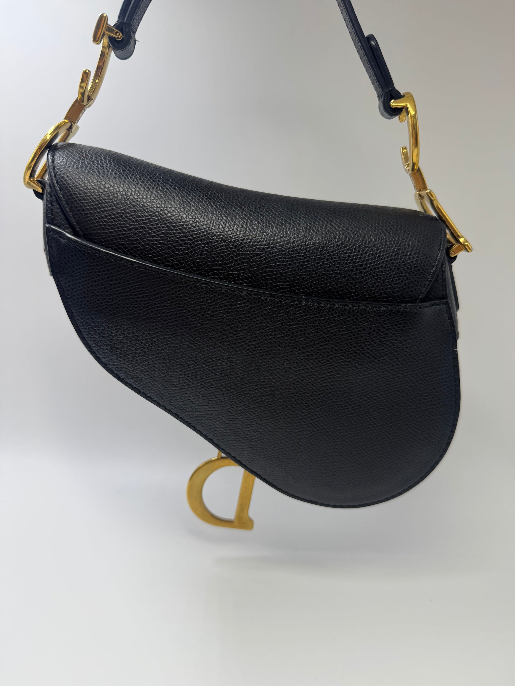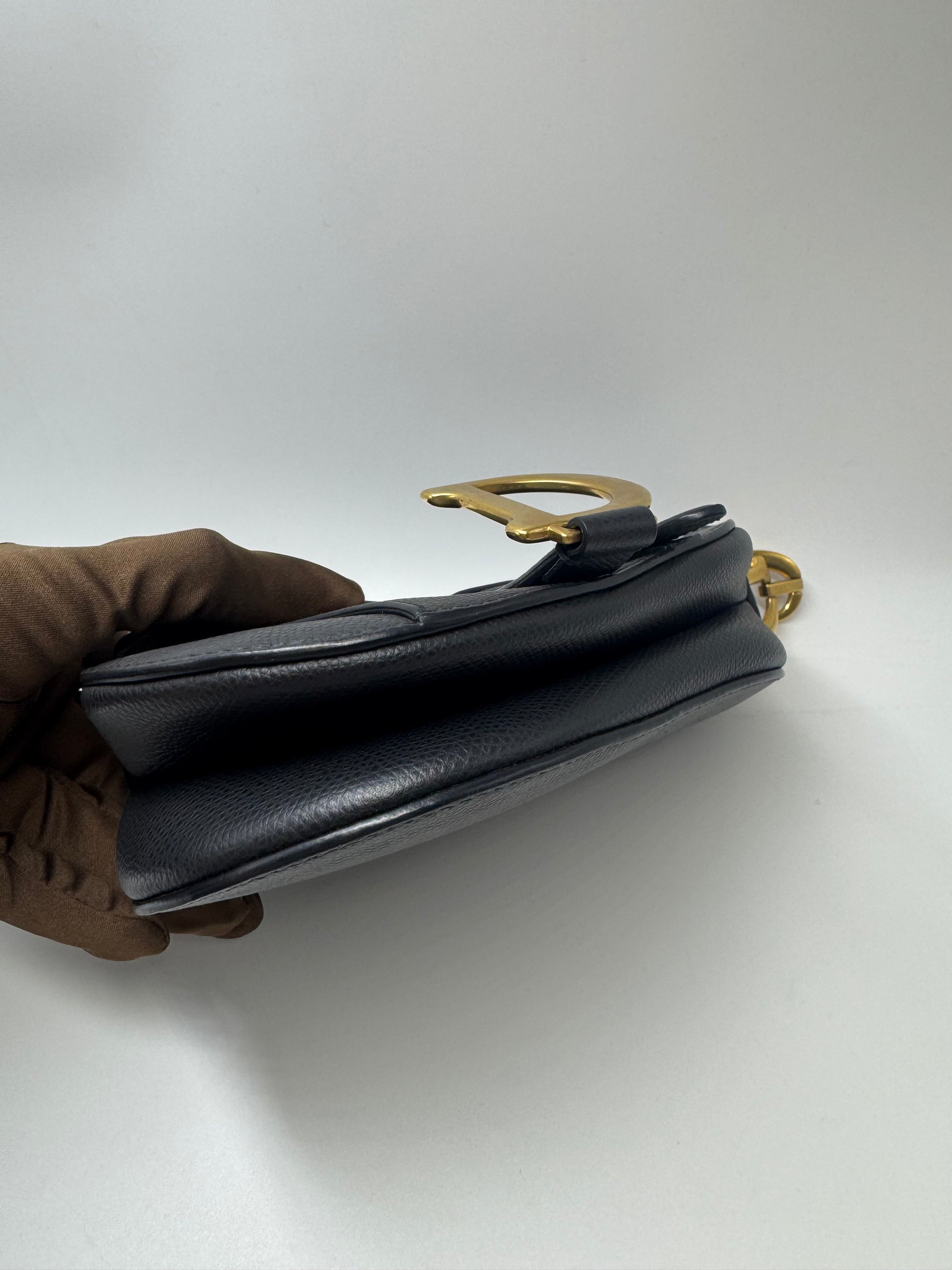 Pre-owned Certified Dior Mini Saddle Black Grained Calfskin with Golden Hardware, set with Canvas Strap, 2018, w/ dust bag, strap