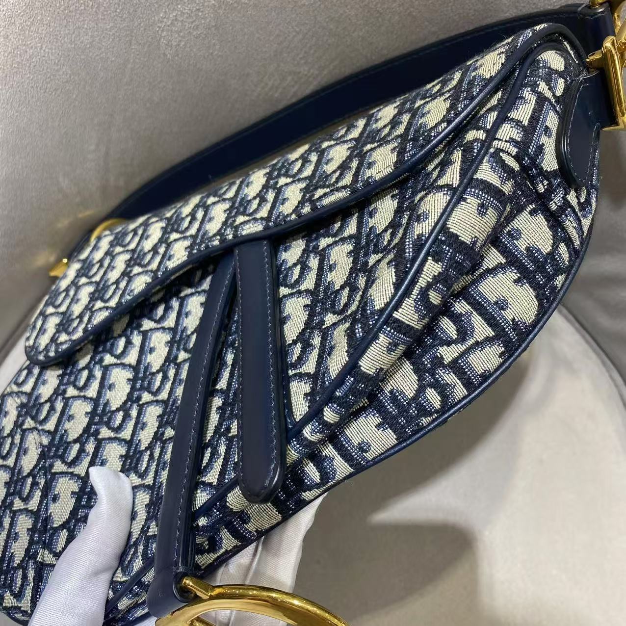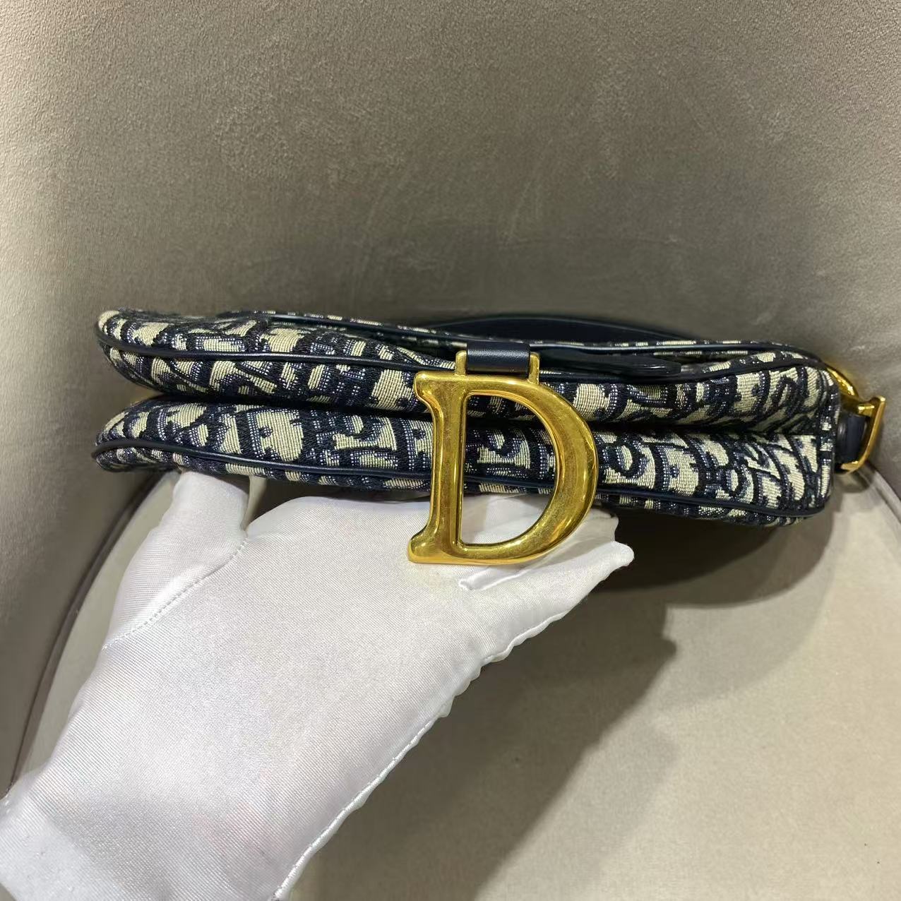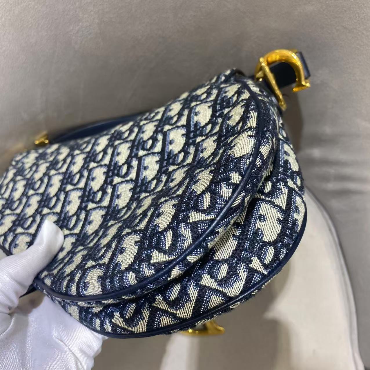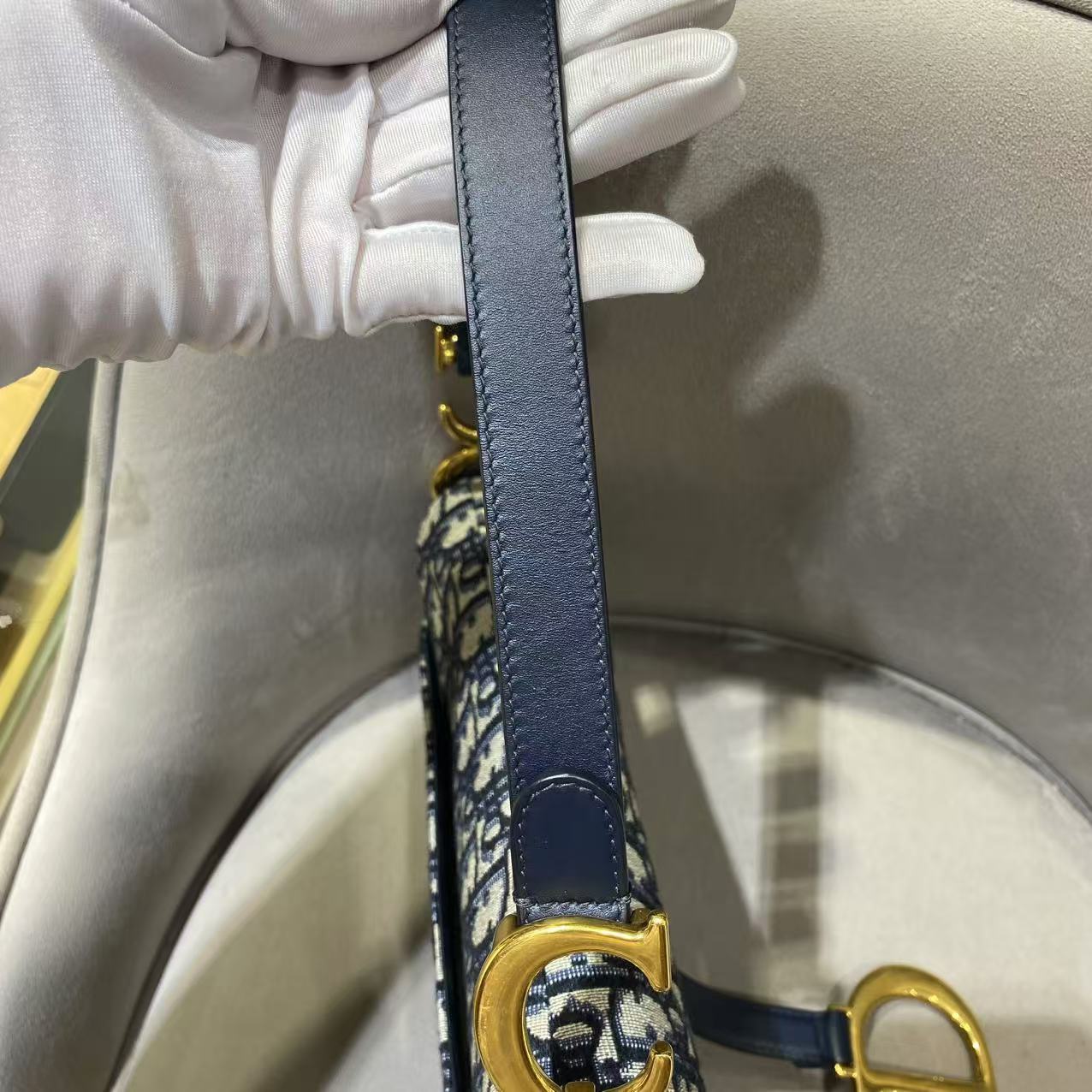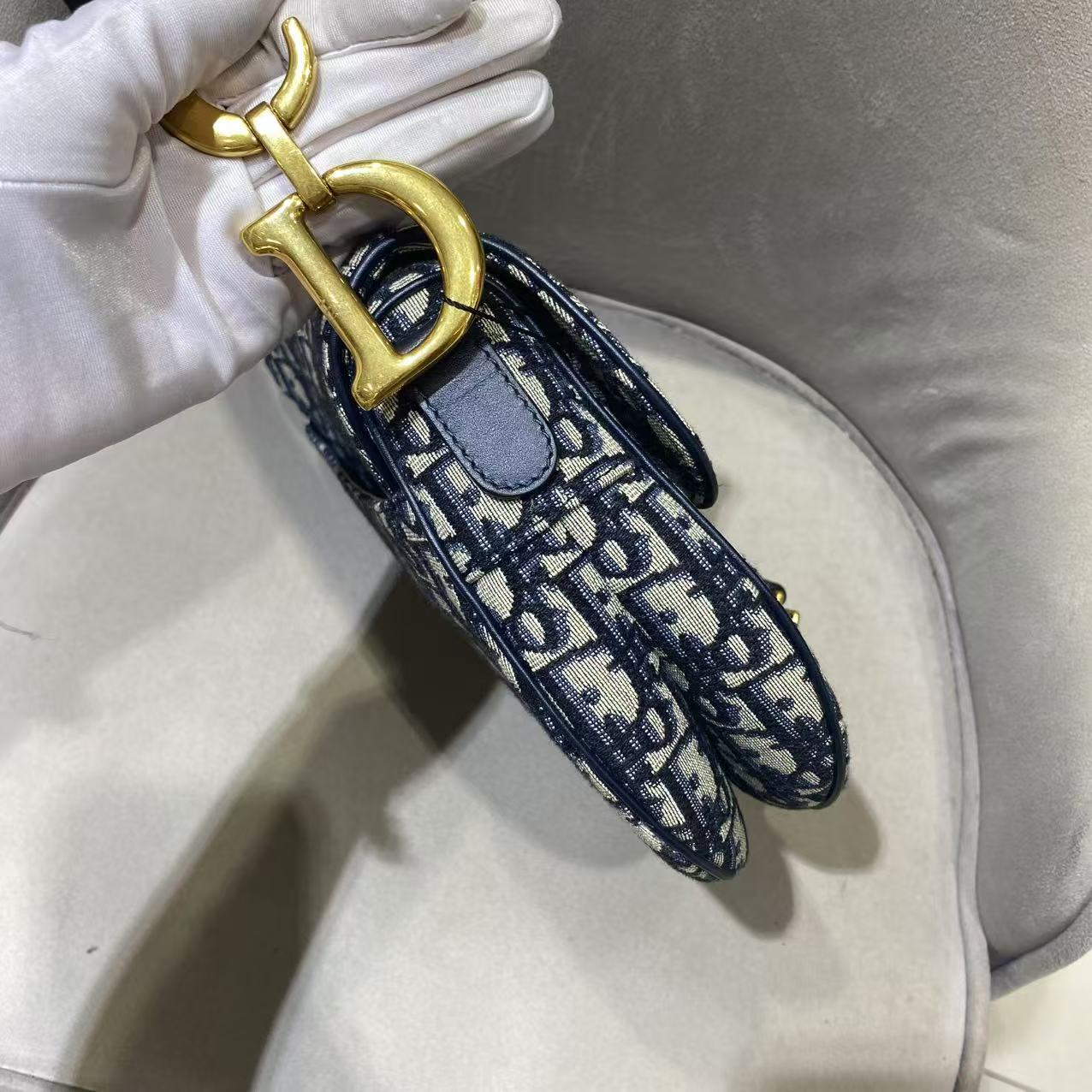Pre-owned Certified Dior Saddle Bag Blue Oblique Canvas with Golden Hardware, w/ dust bag
