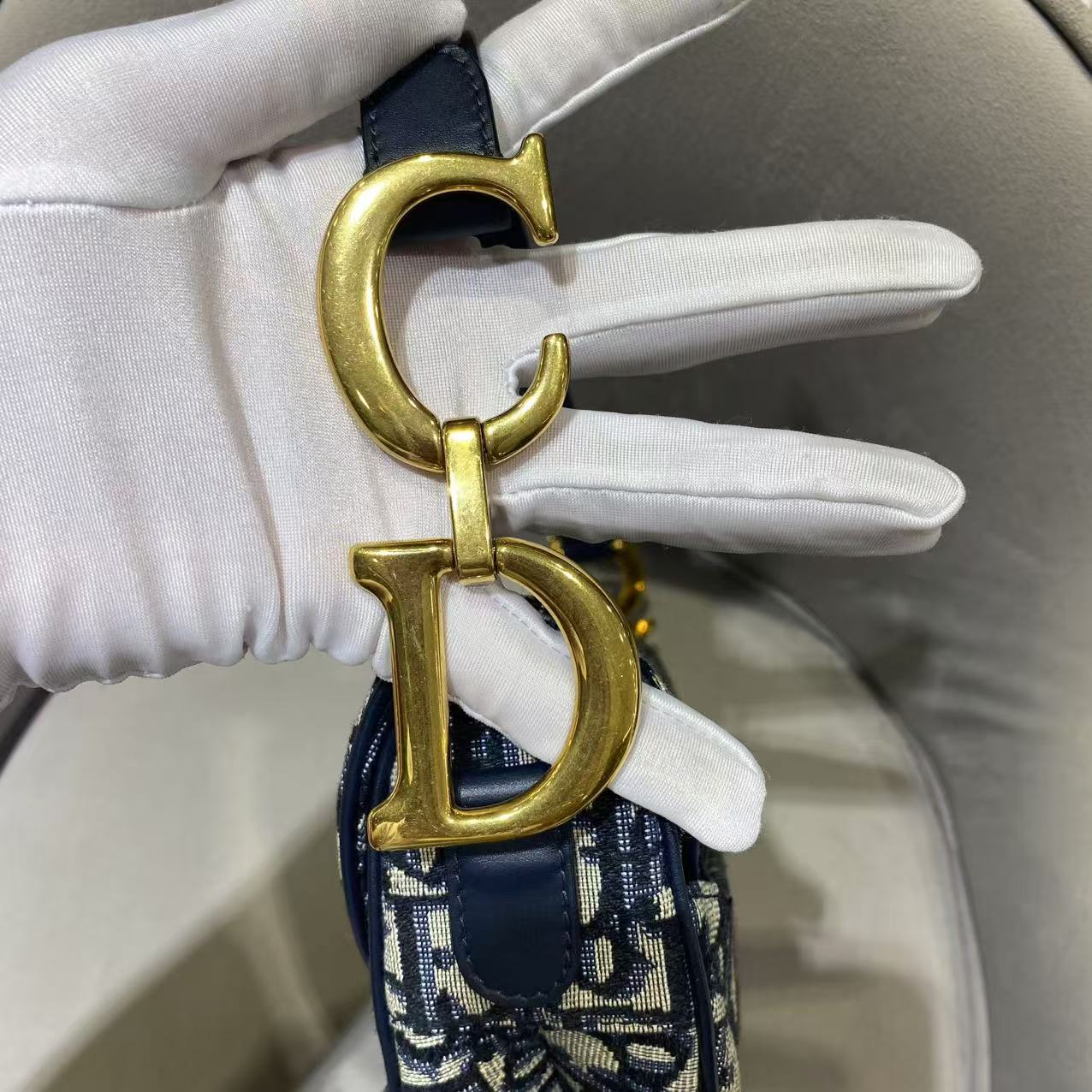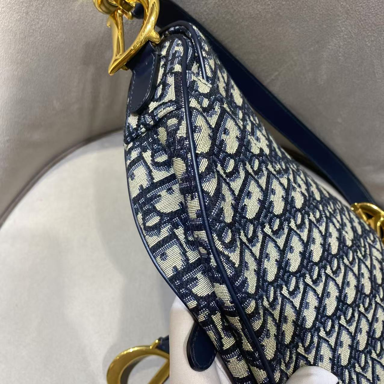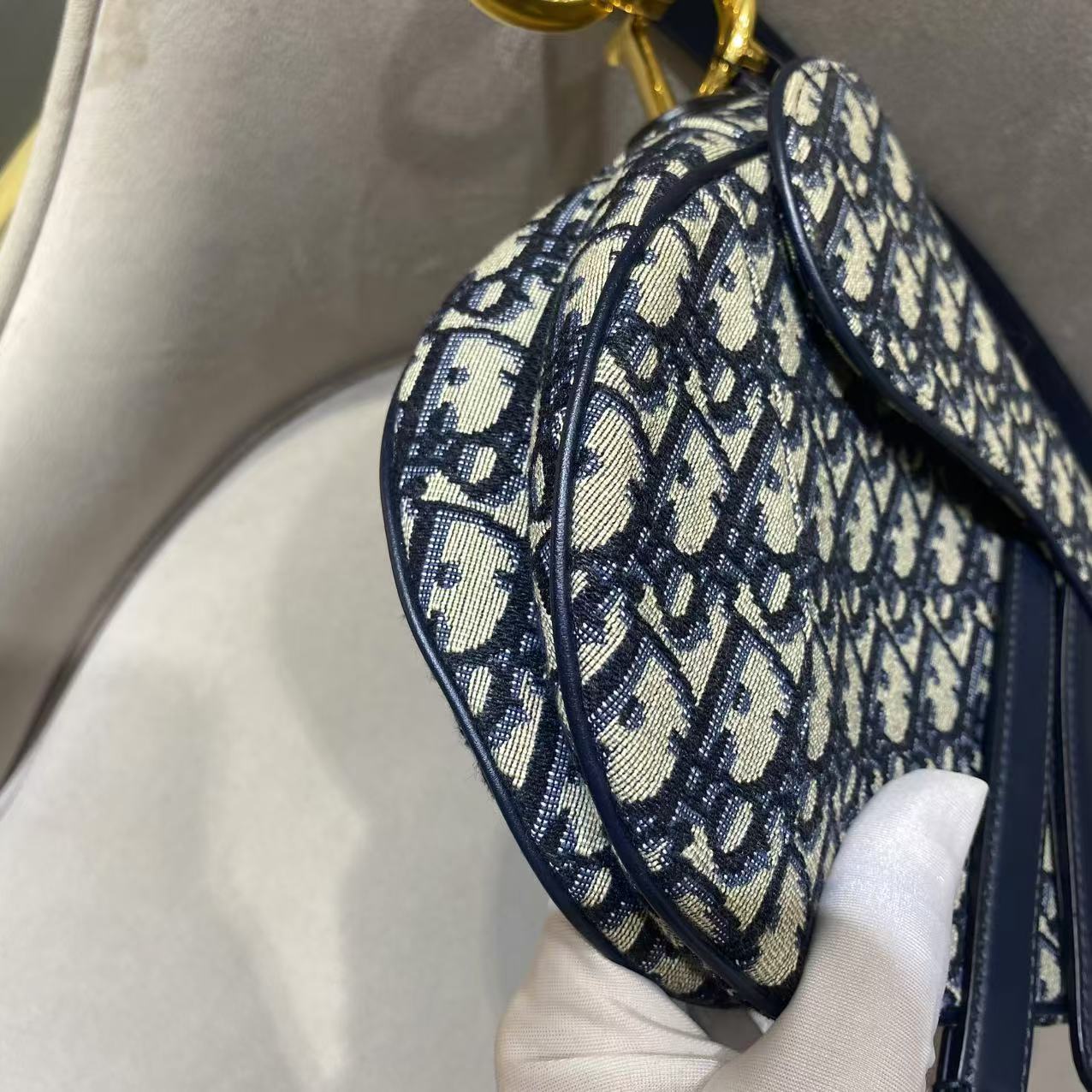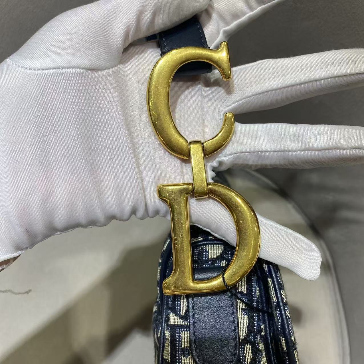 Pre-owned Certified Dior Saddle Bag Blue Oblique Canvas with Golden Hardware, w/ dust bag