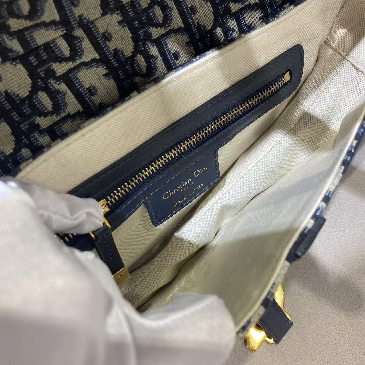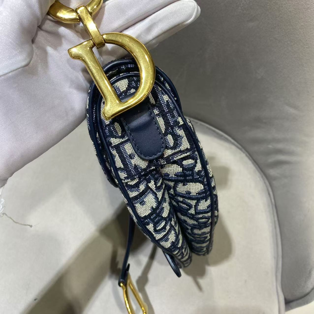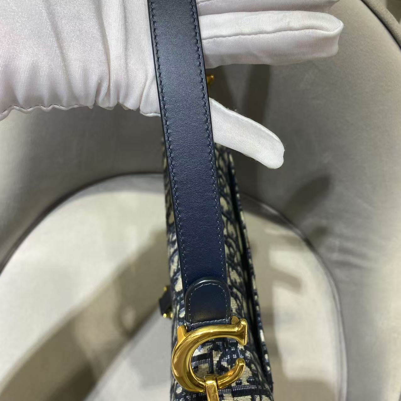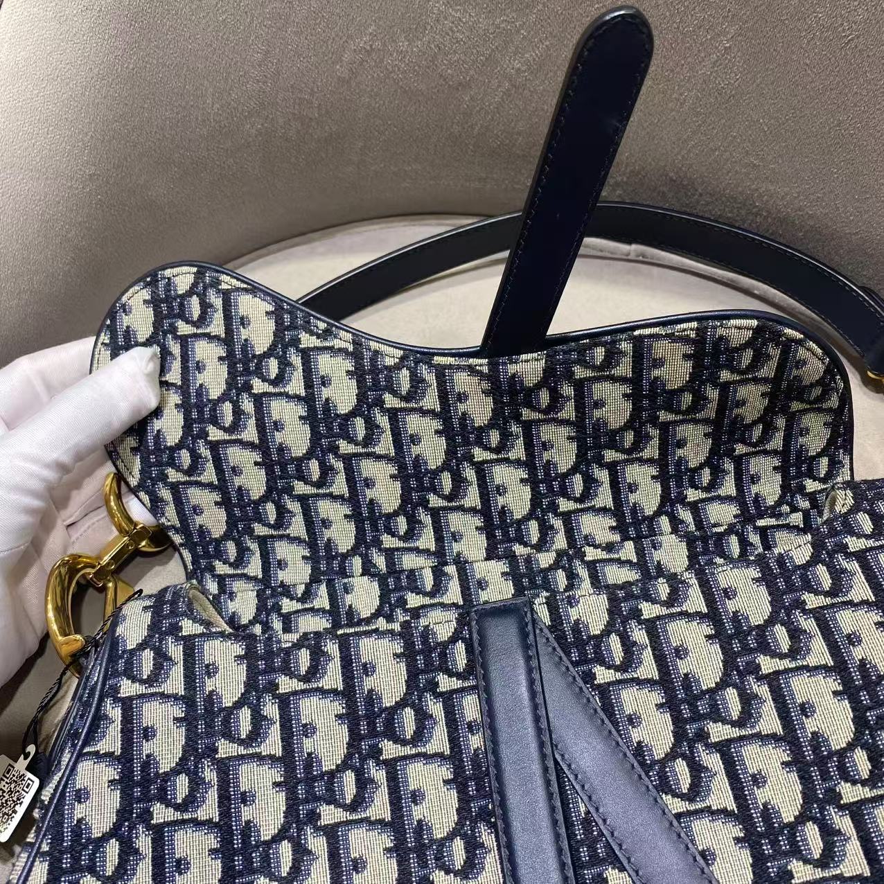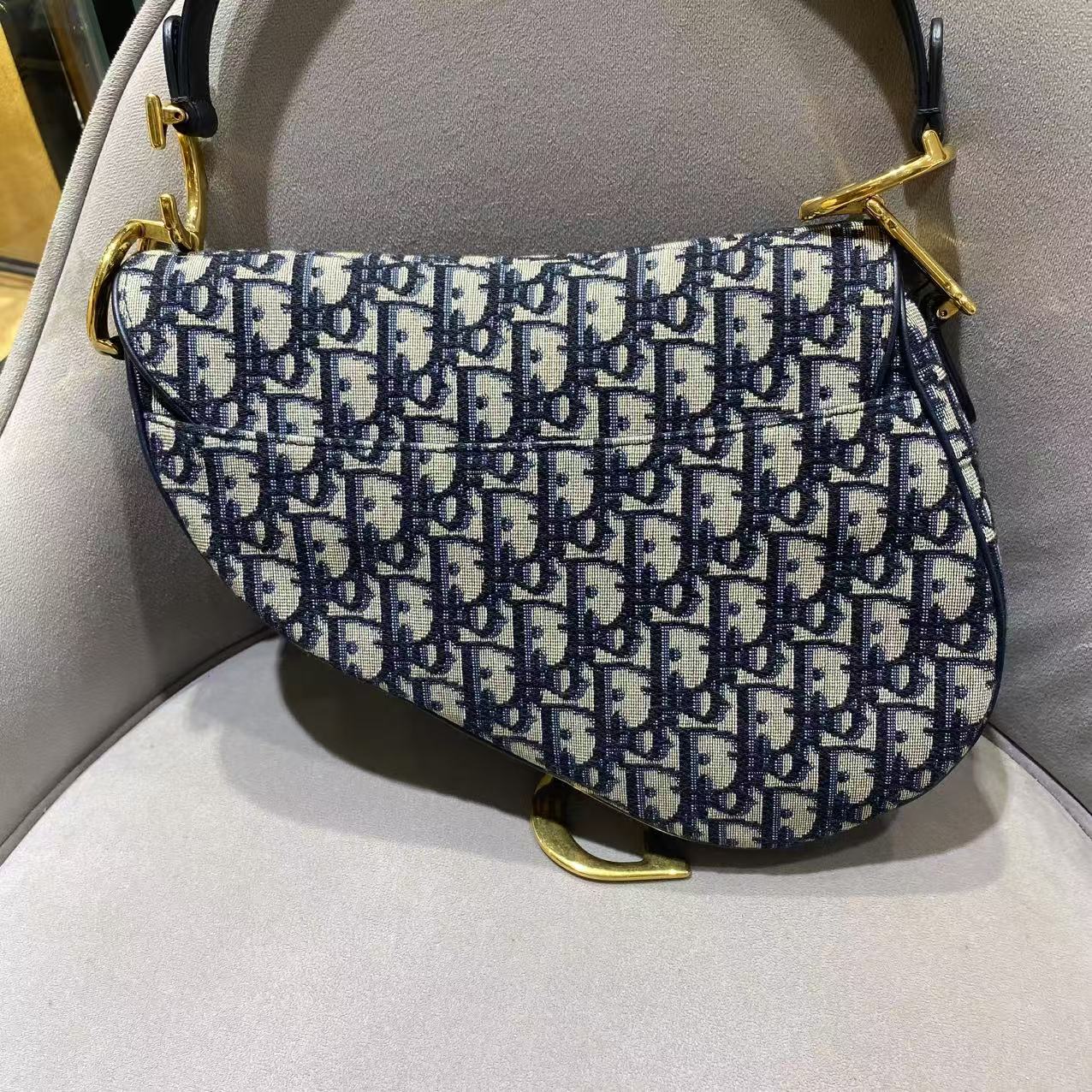 Pre-owned Certified Dior Saddle Bag Blue Oblique Canvas with Golden Hardware, w/ dust bag