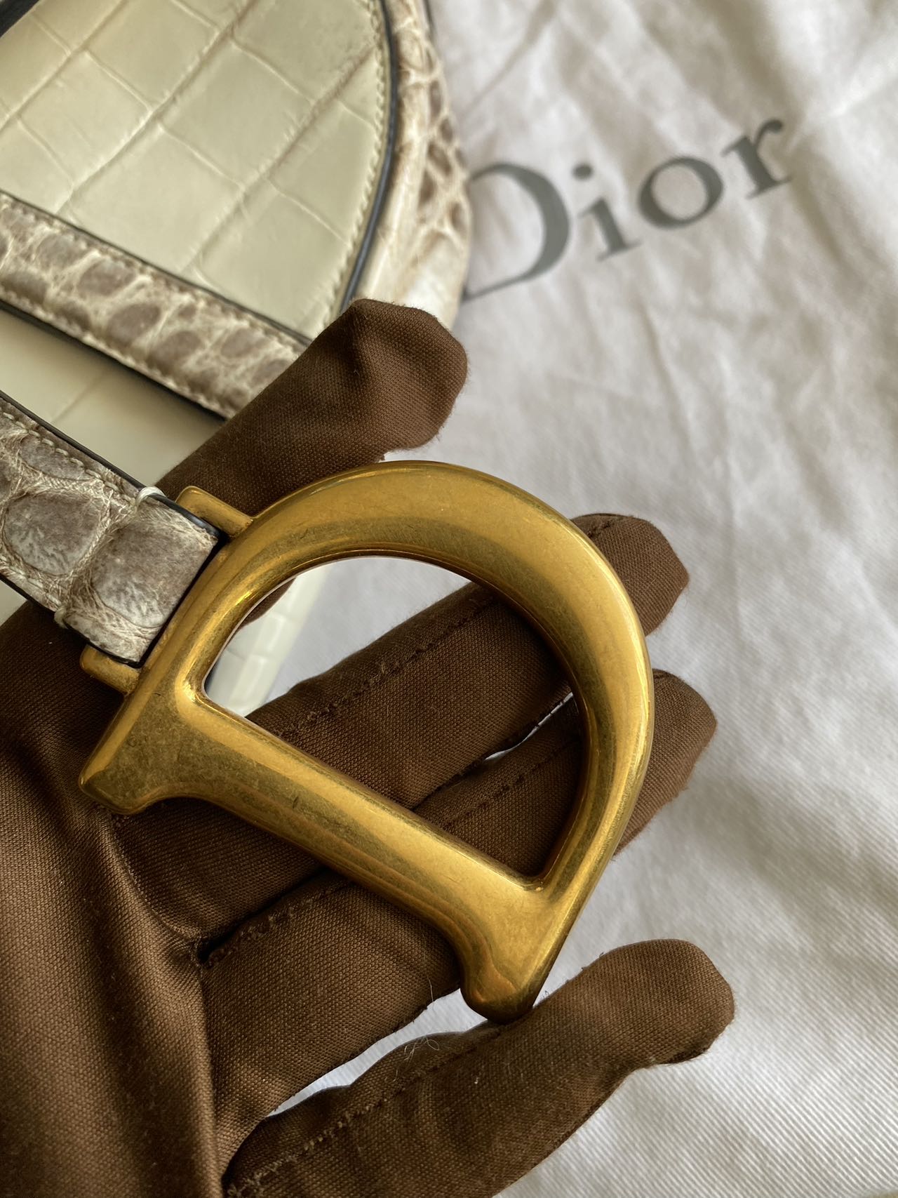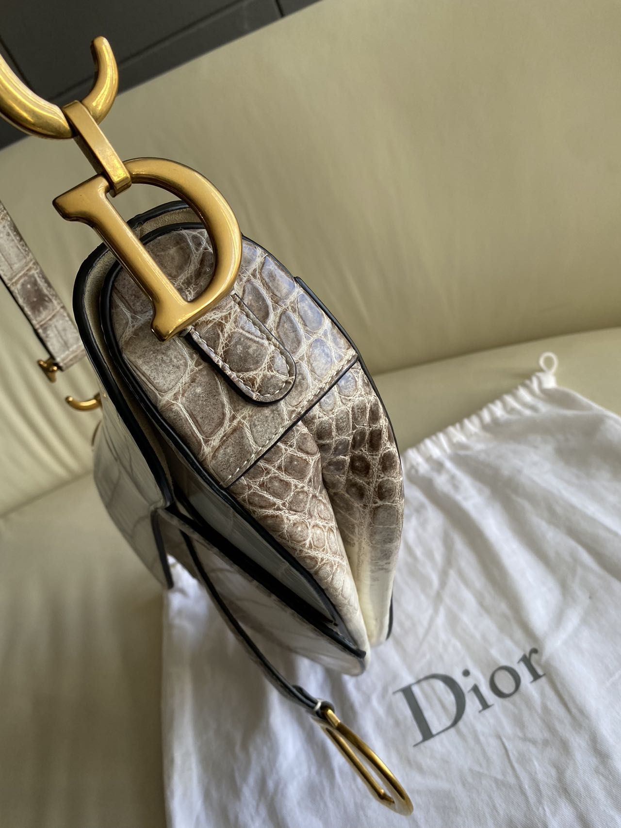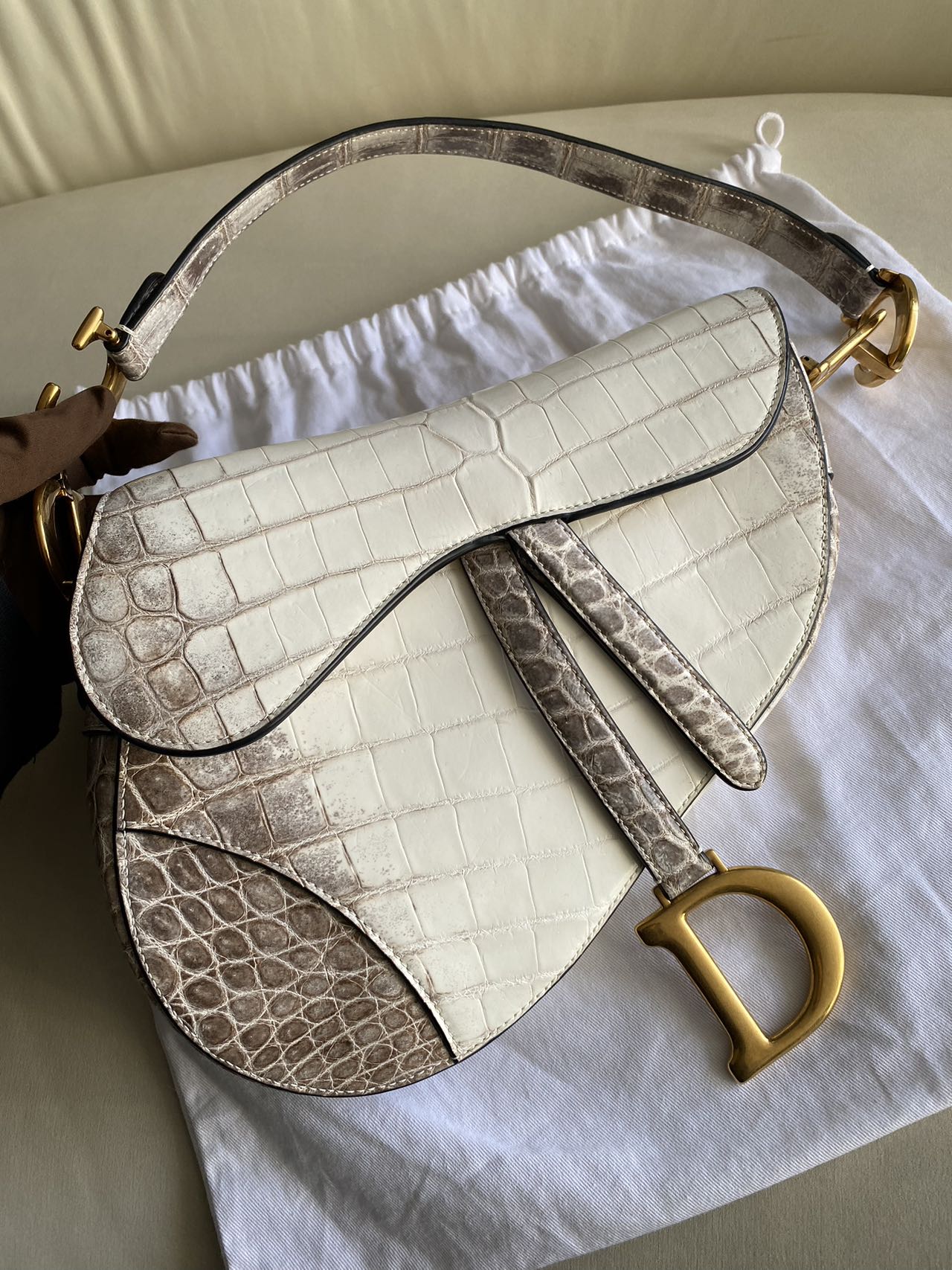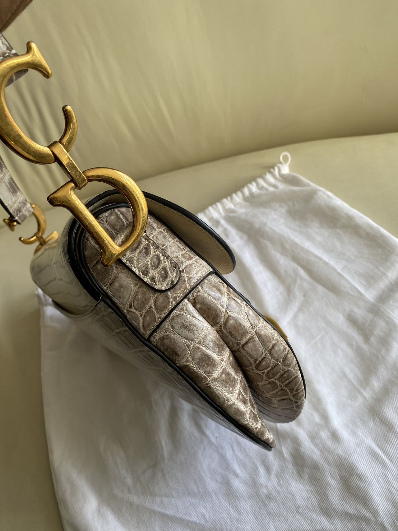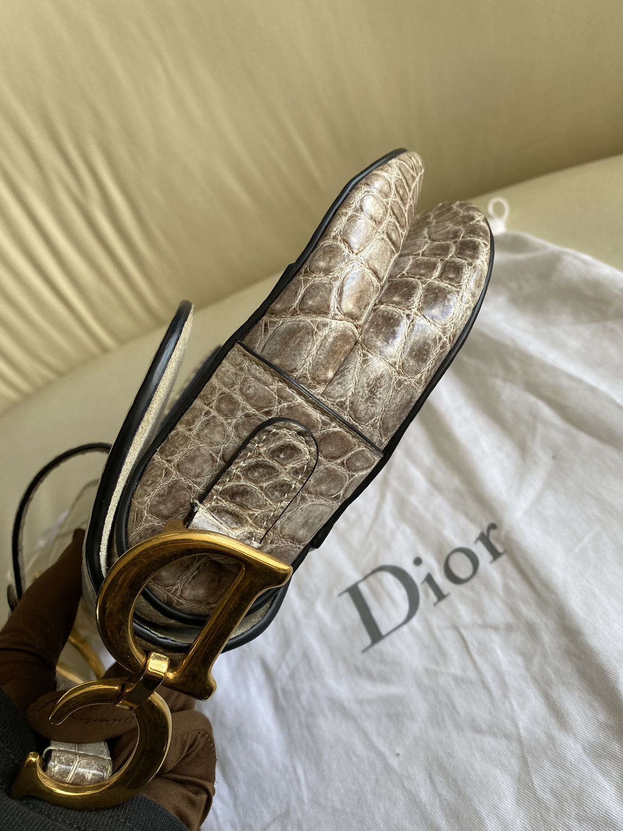 Pre-owned Certified Dior Saddle Bag in Natural Alligator Himalayan with Golden Hardware, 2019, w/ dust bag, box