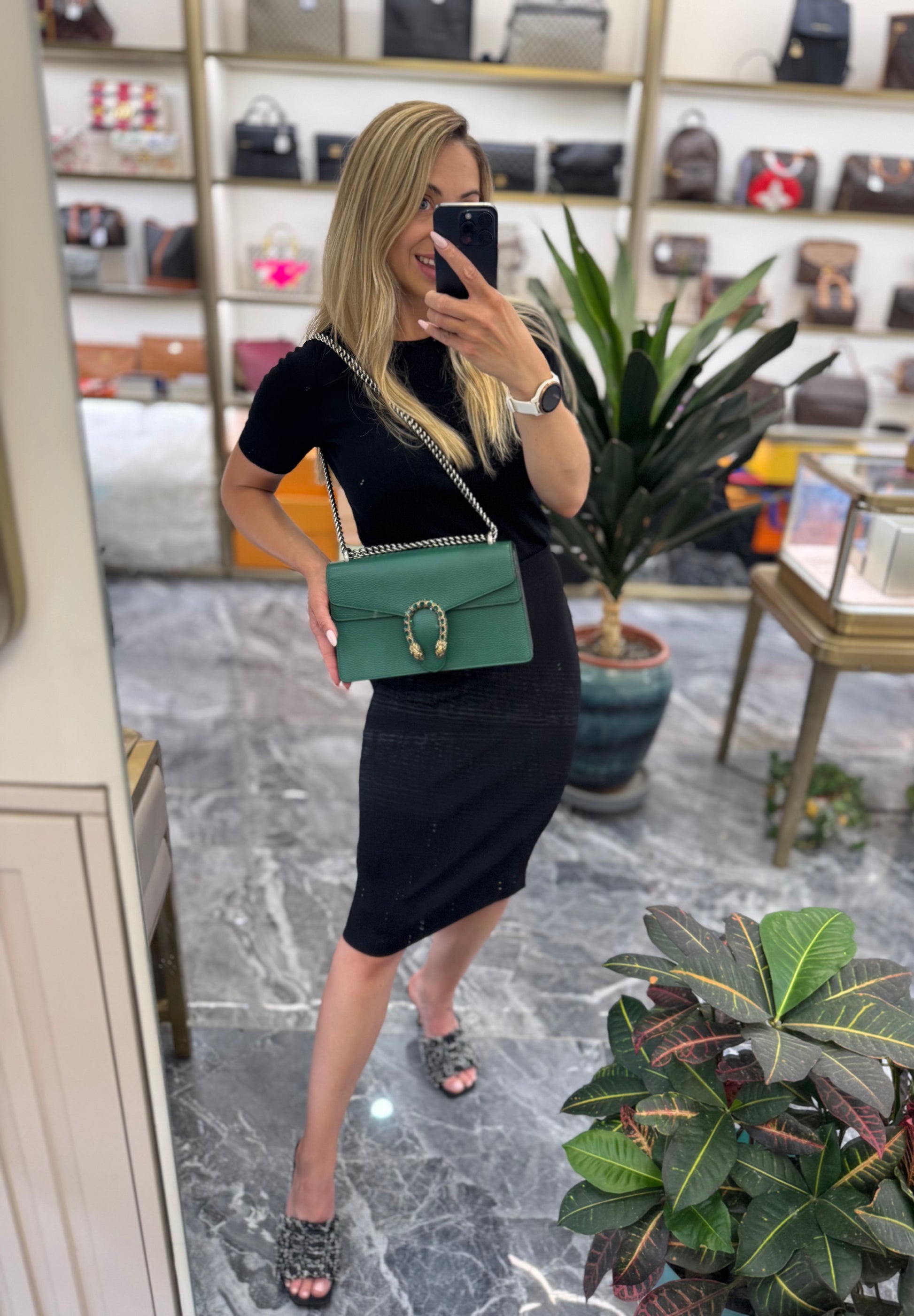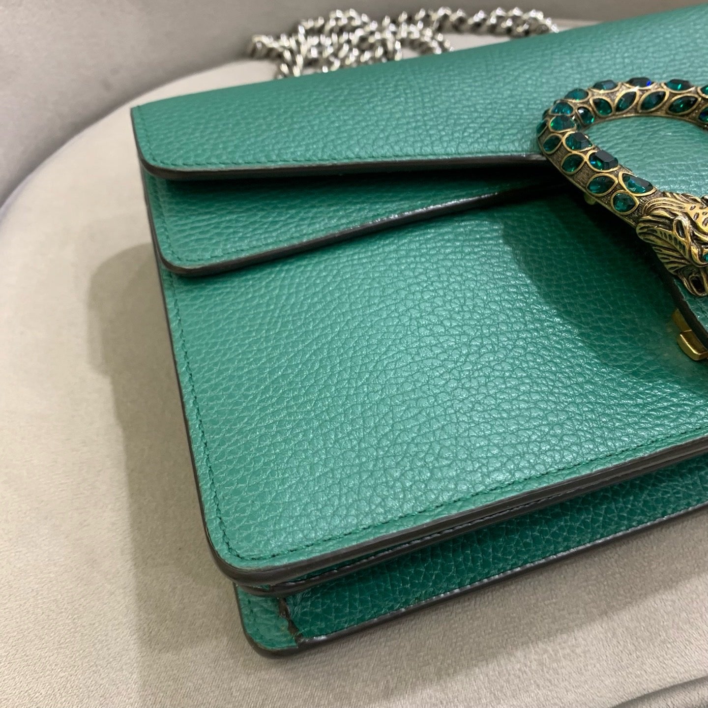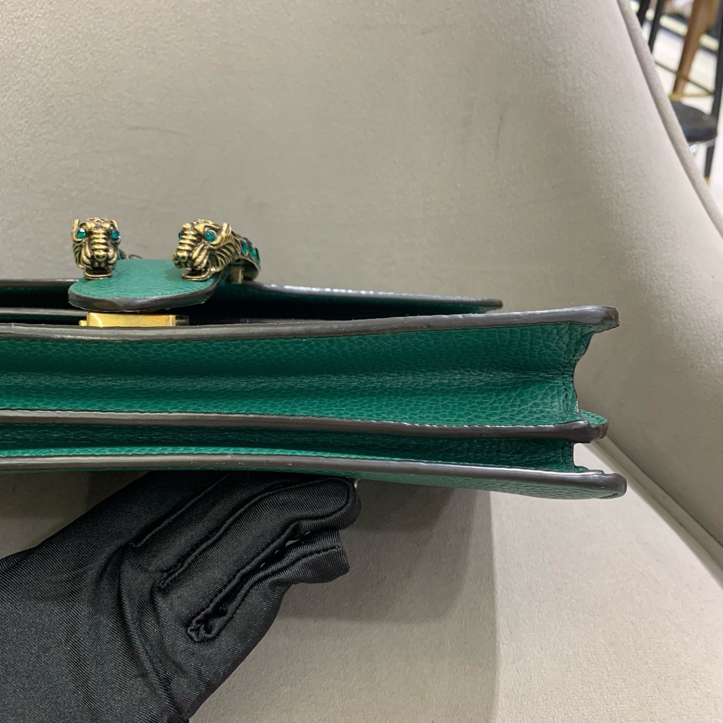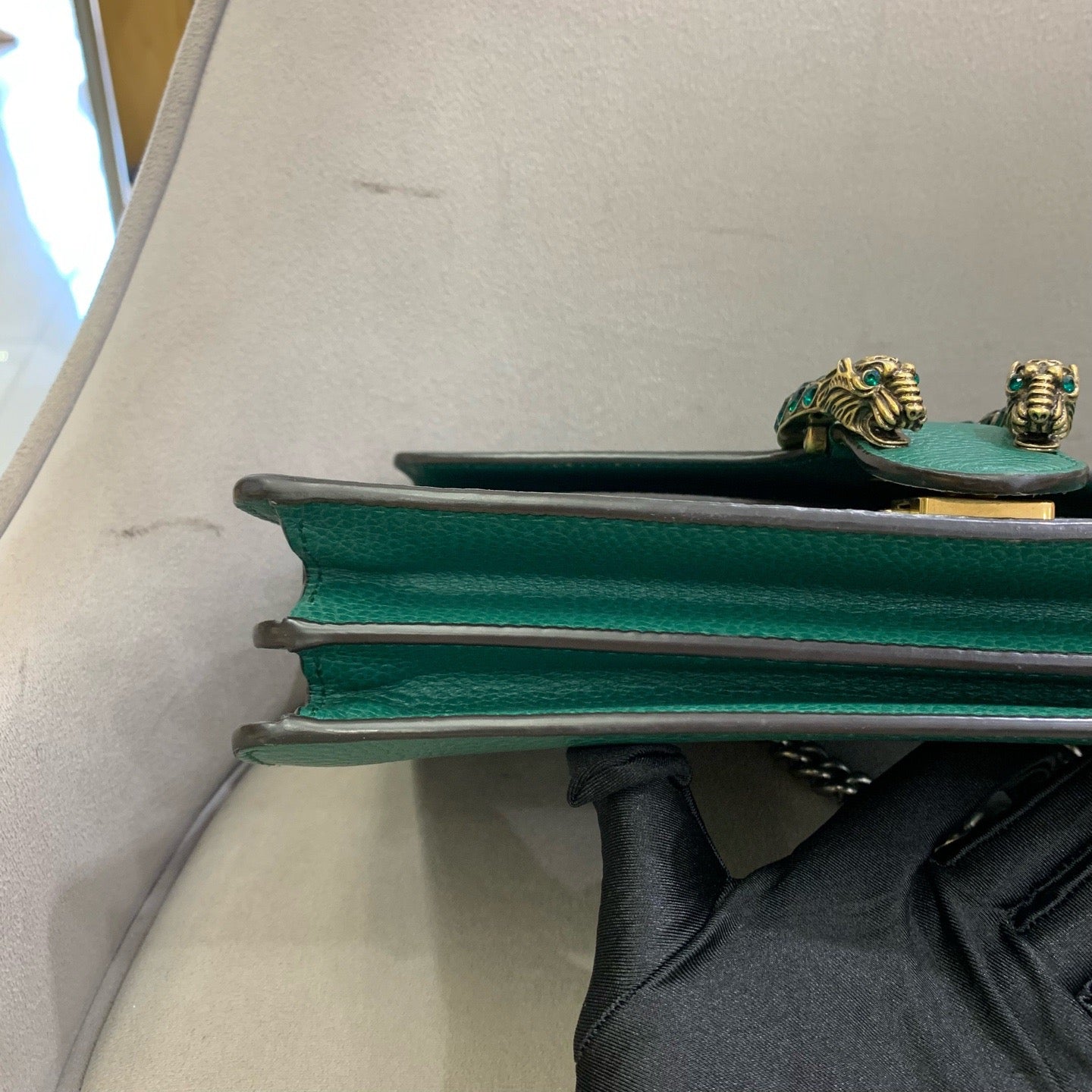 Pre-owned Certified Gucci Dionysus Medium Green Calfskin with Crystal Hardware, w/ dust bag