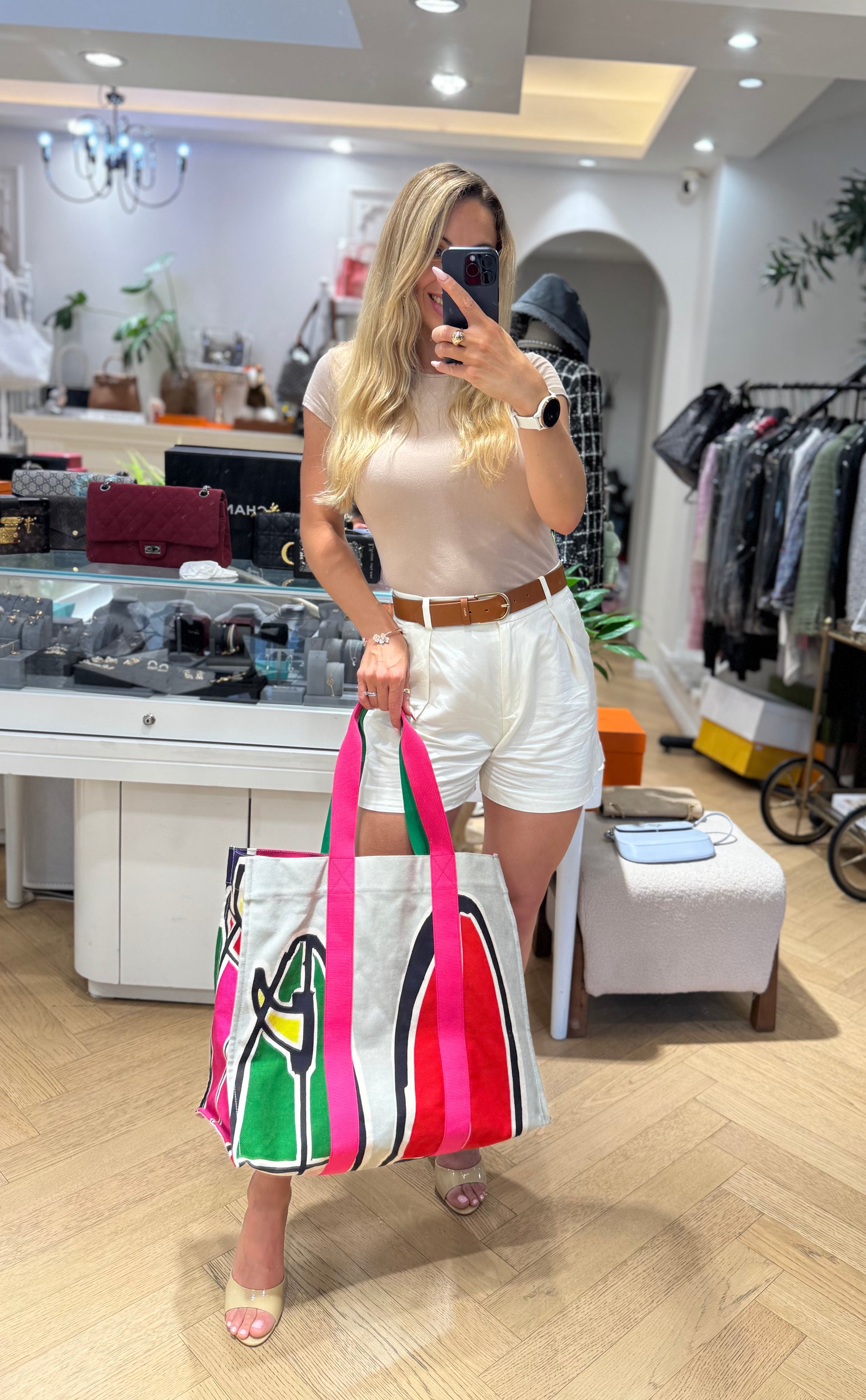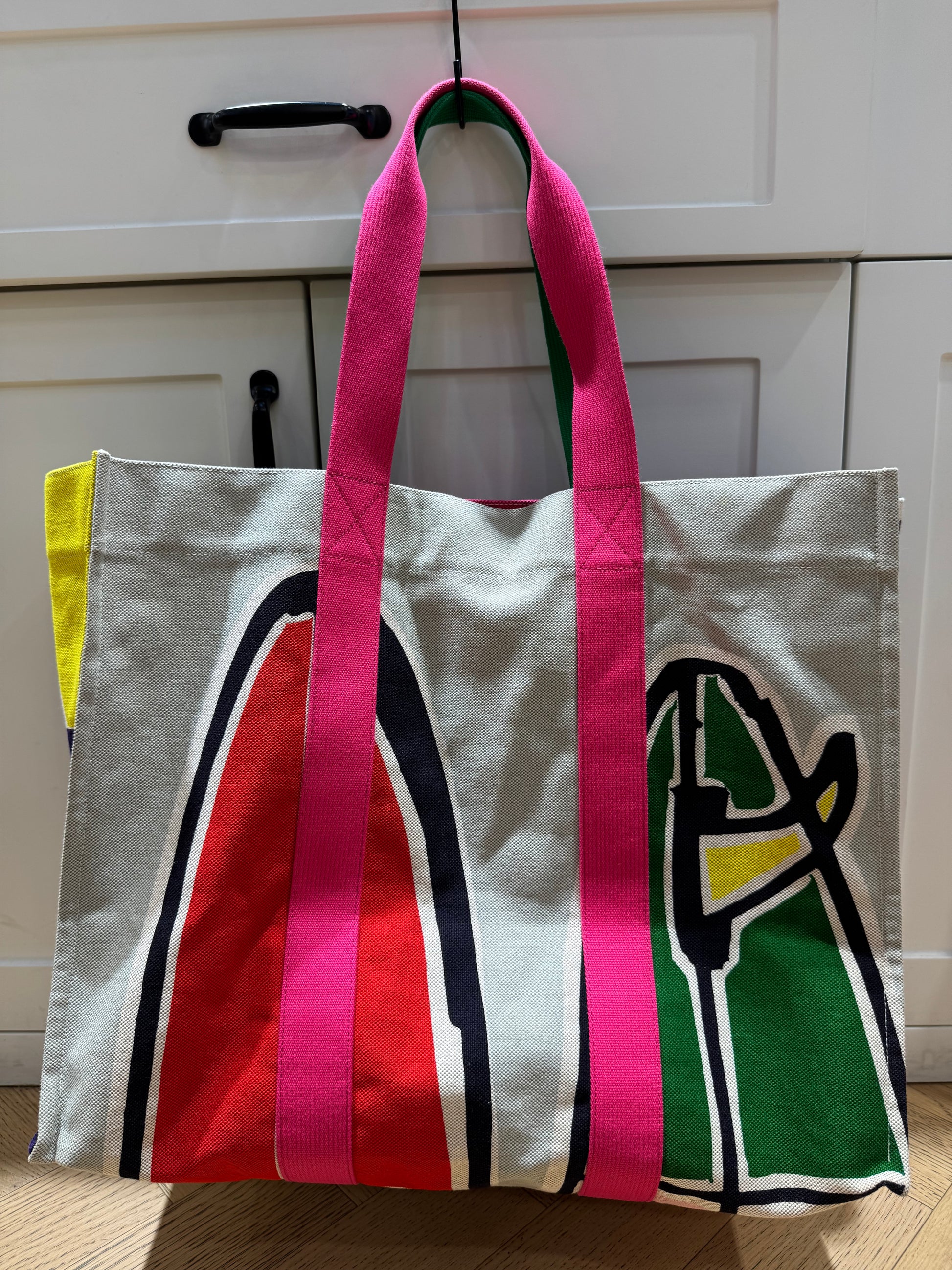 Pre-owned Certified Hermes 3 Surfs Canvas Multicolore Beach Bag, with pouch