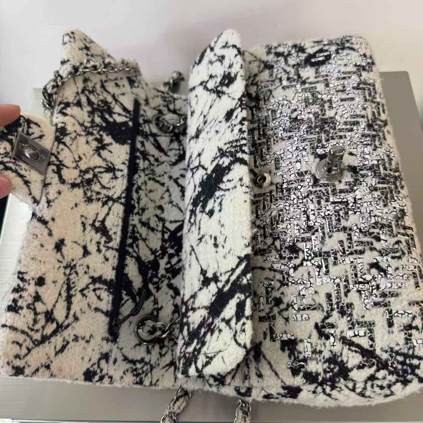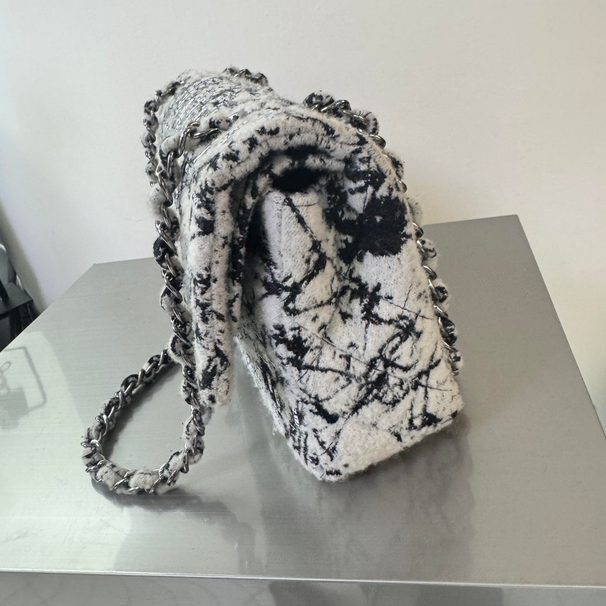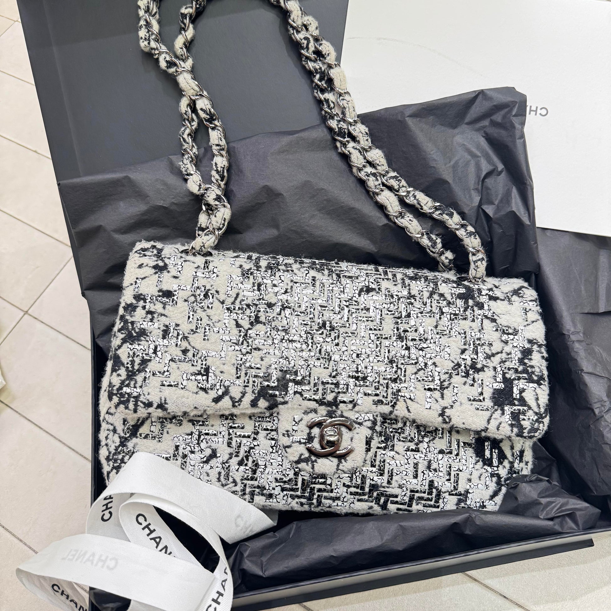 Pre-owned Certified Limited Chanel Medium Timeless Double Classic Flap, Tweed with Herringbone Pattern, 2017-2018, w/ box, dust bag