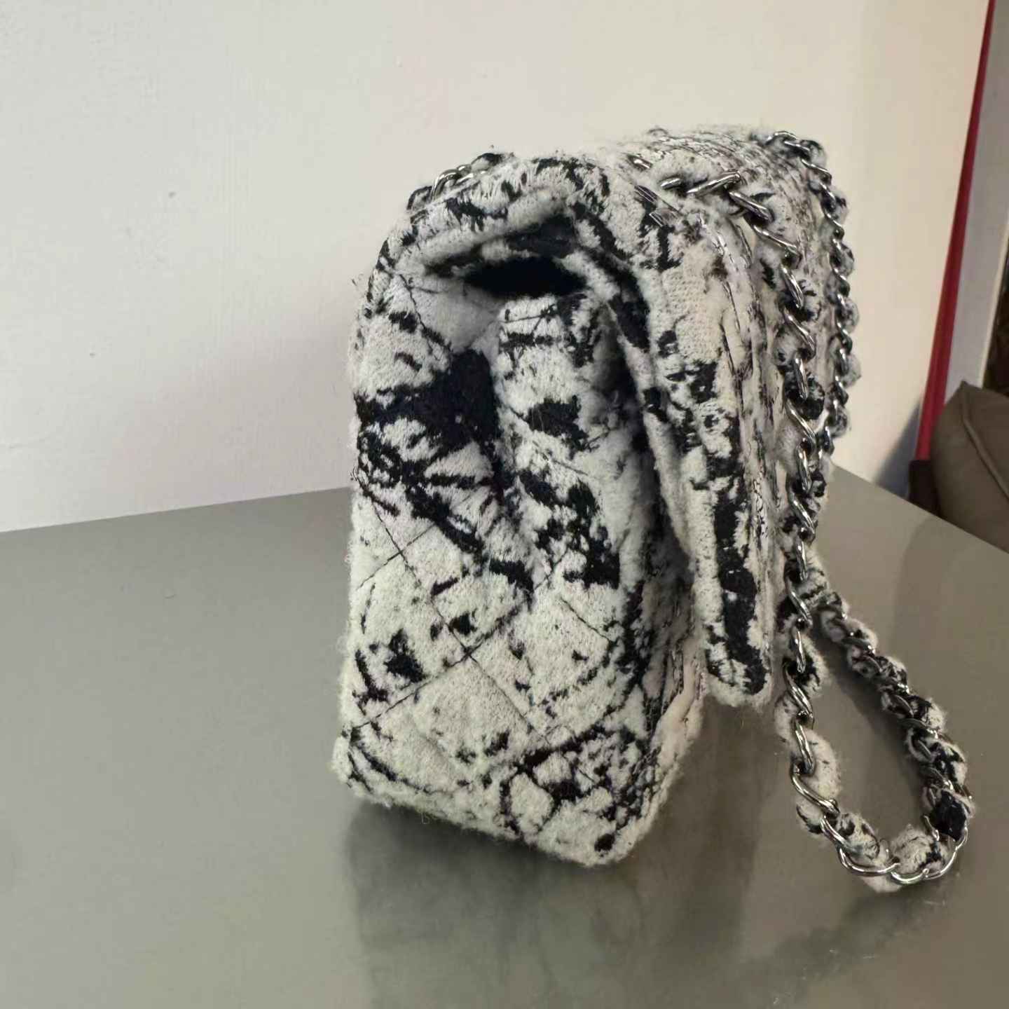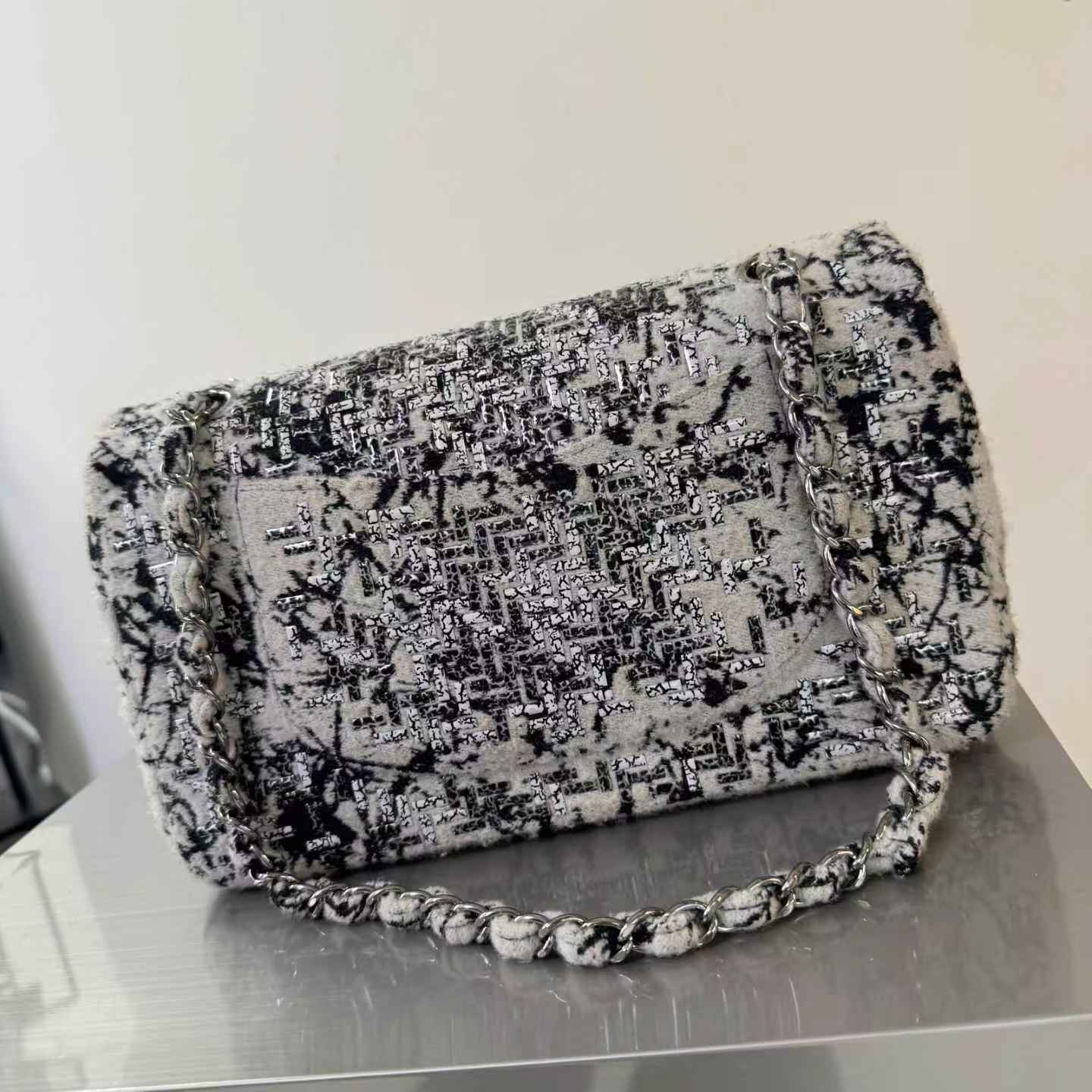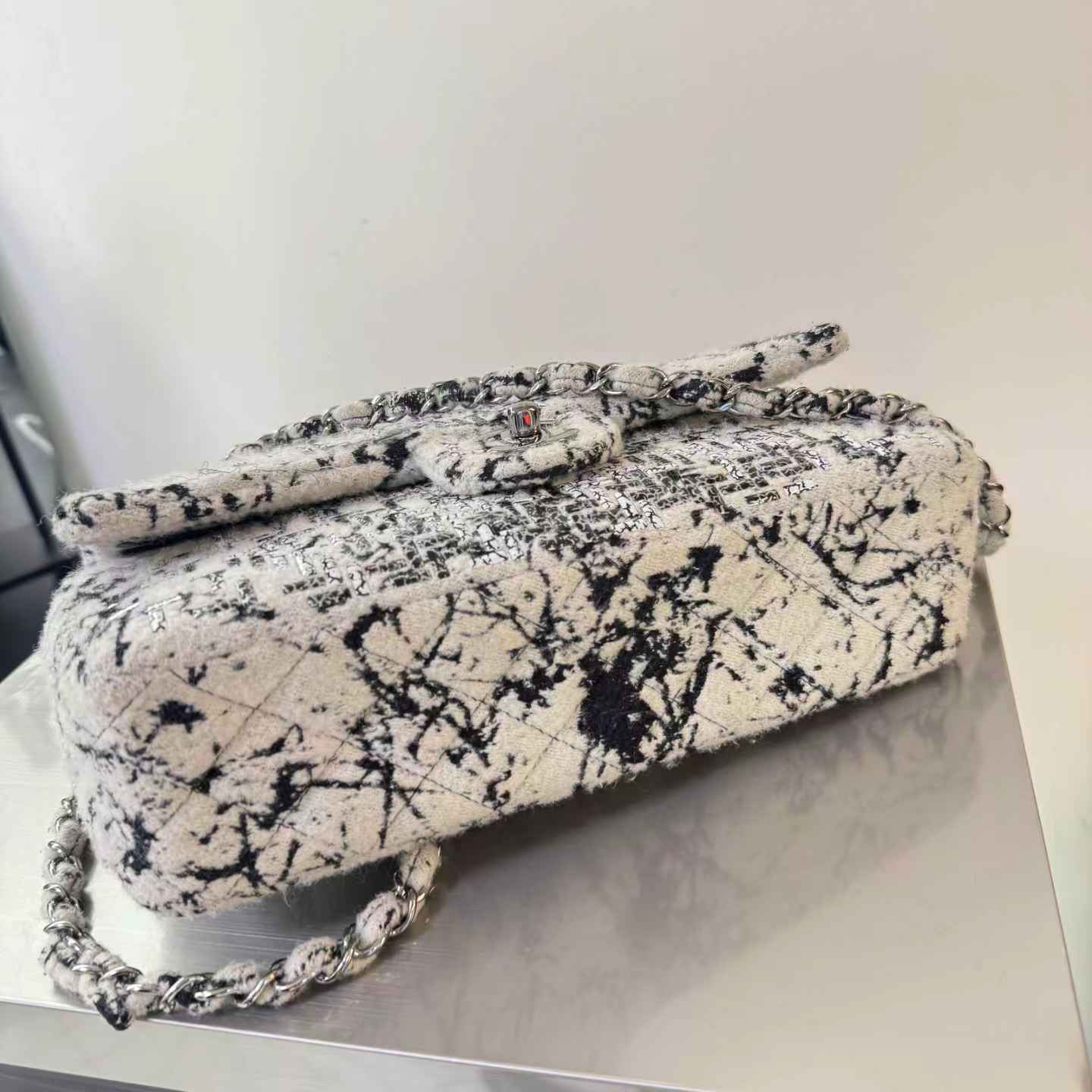 Pre-owned Certified Limited Chanel Medium Timeless Double Classic Flap, Tweed with Herringbone Pattern, 2017-2018, w/ box, dust bag