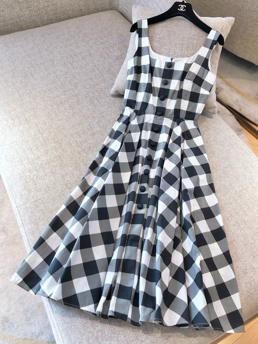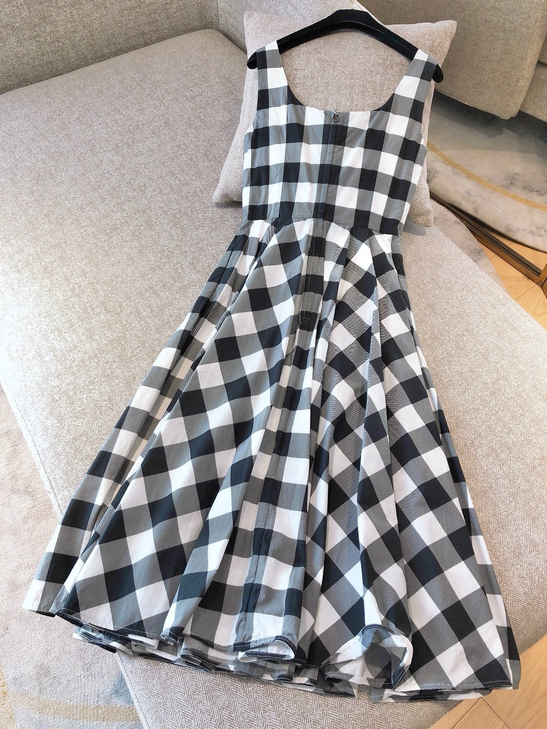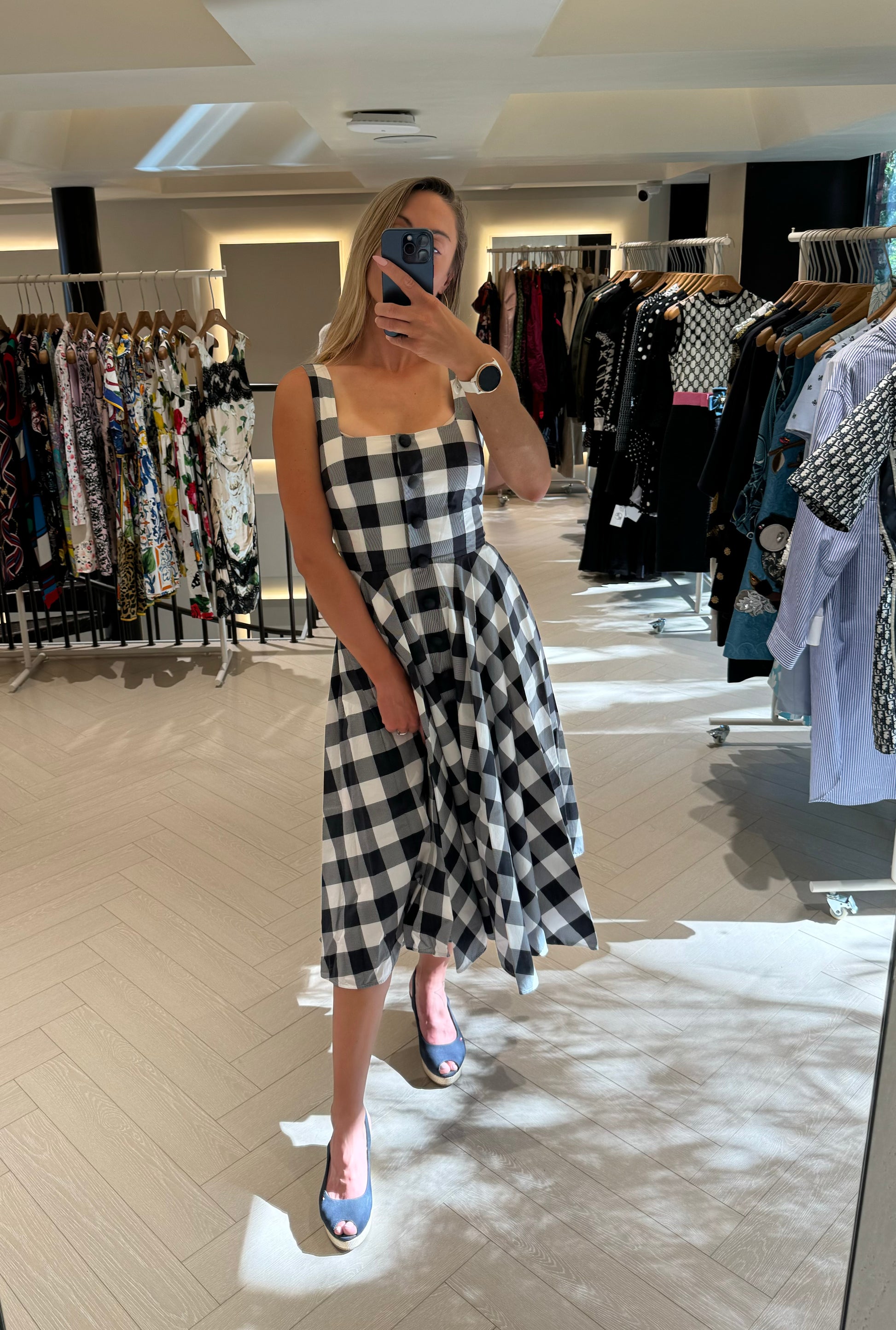 Pre-owned Dolce & Gabbana Long Summer Dress Black & White checkers, Size 38