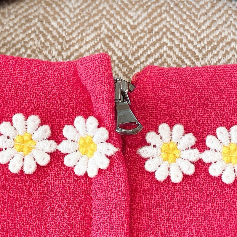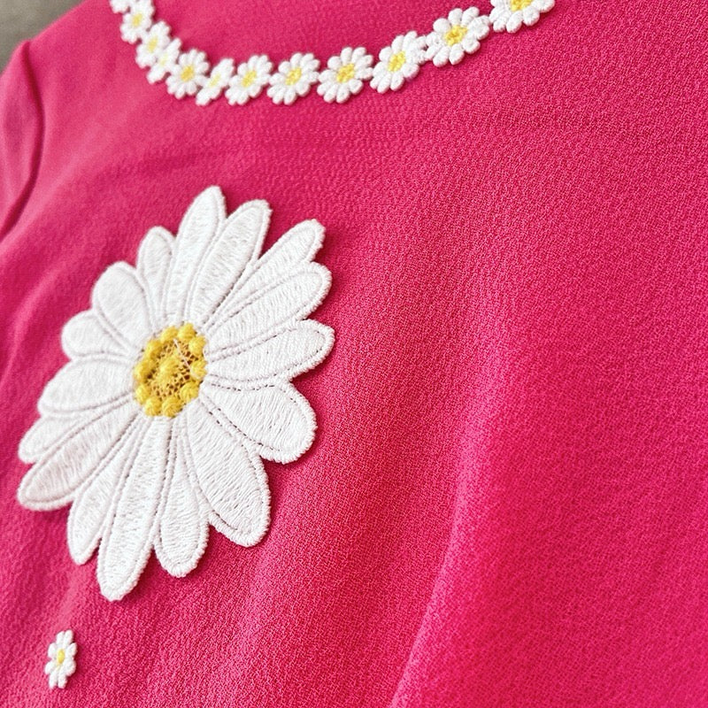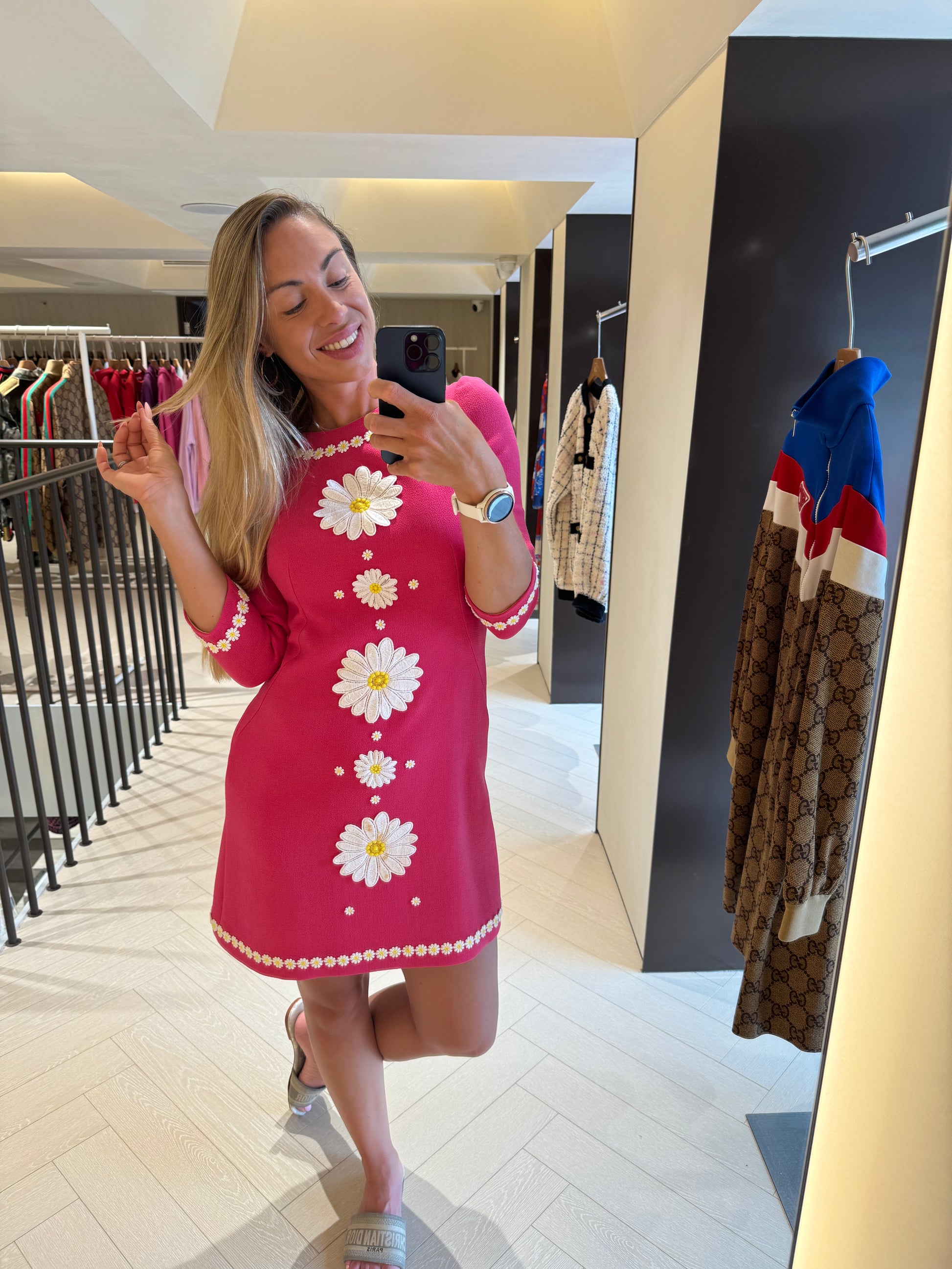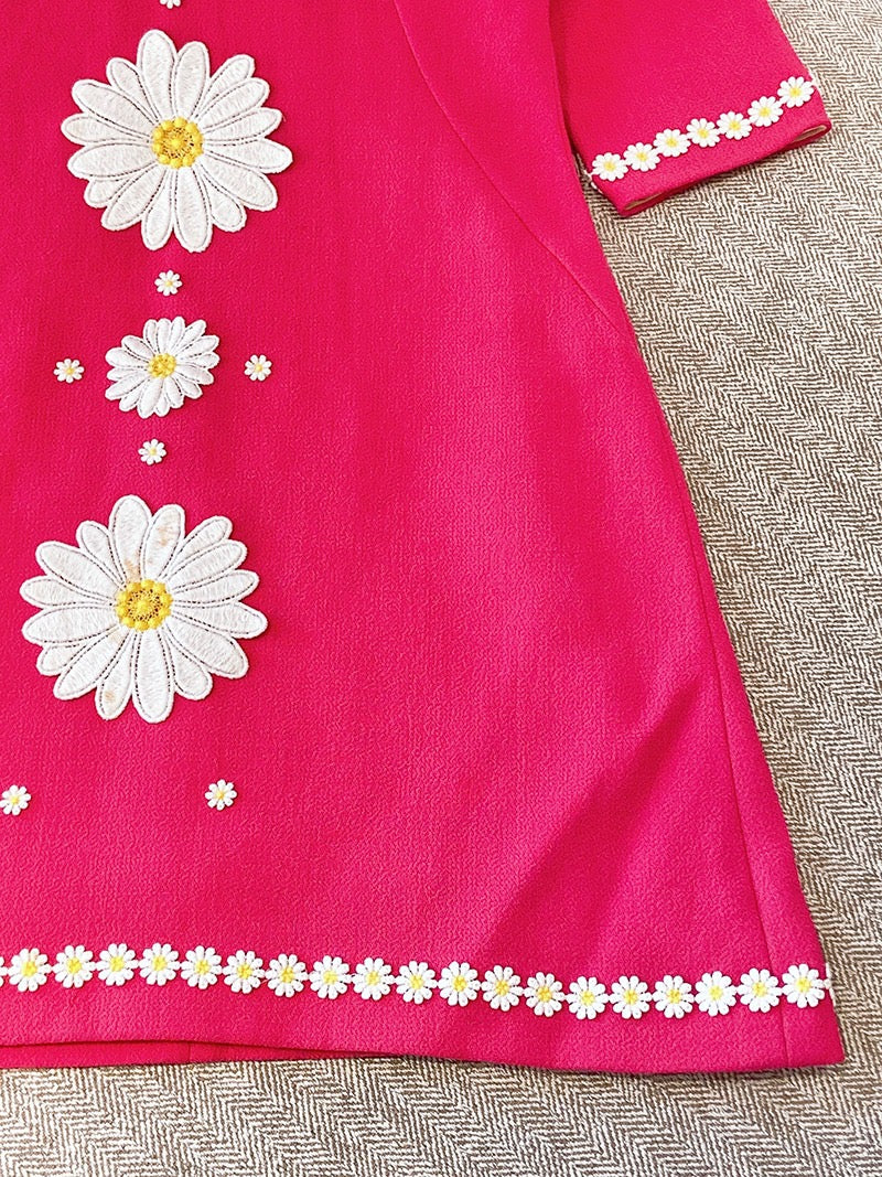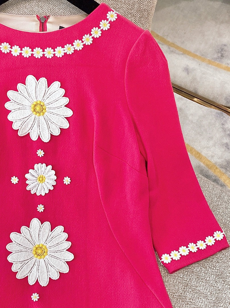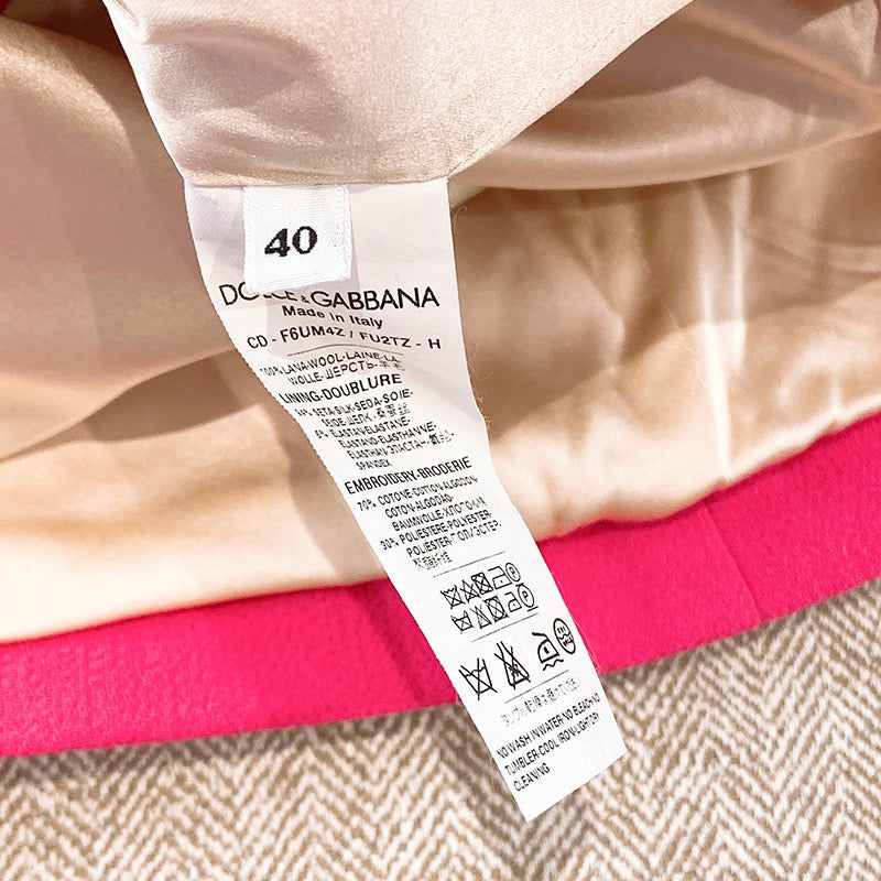 Pre-owned Dolce & Gabbana Pink Long Sleeve Tweed Dress with White Flowers, Size 40