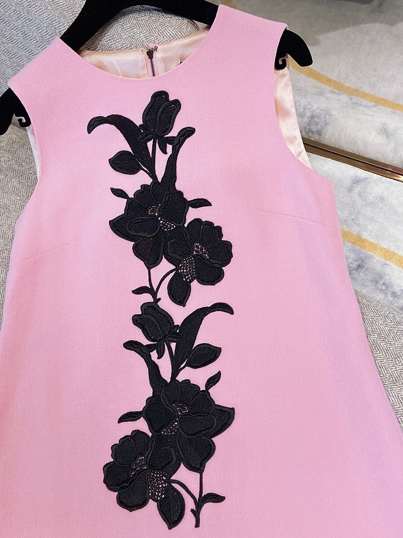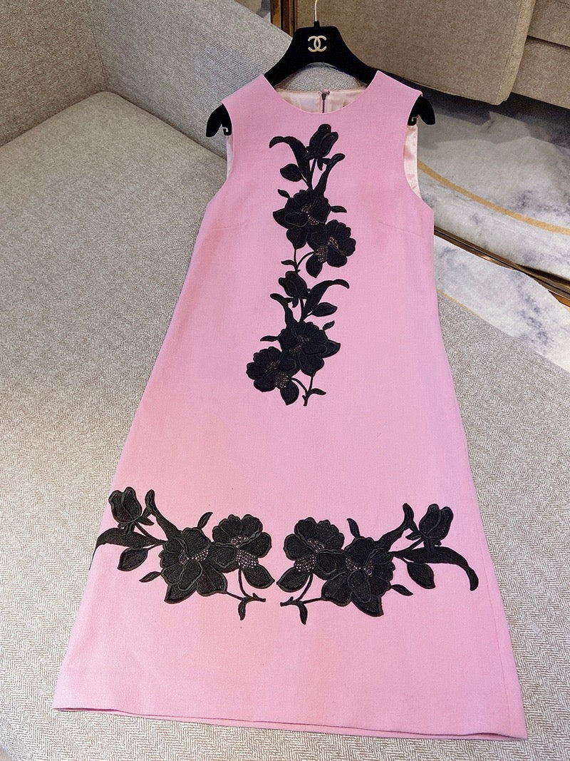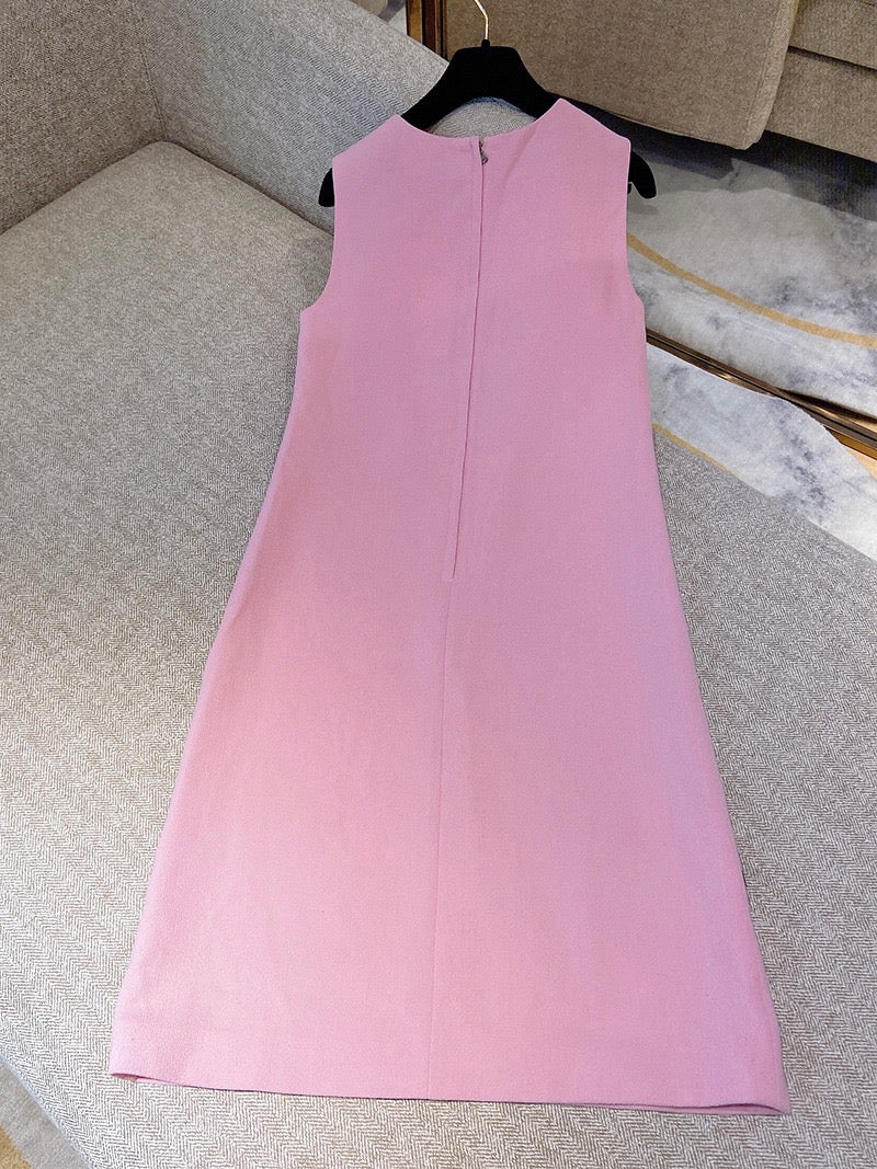 Pre-owned Dolce & Gabbana Sleeveless Pink Embroidered Wool Dress with Silk Lining, Size 38