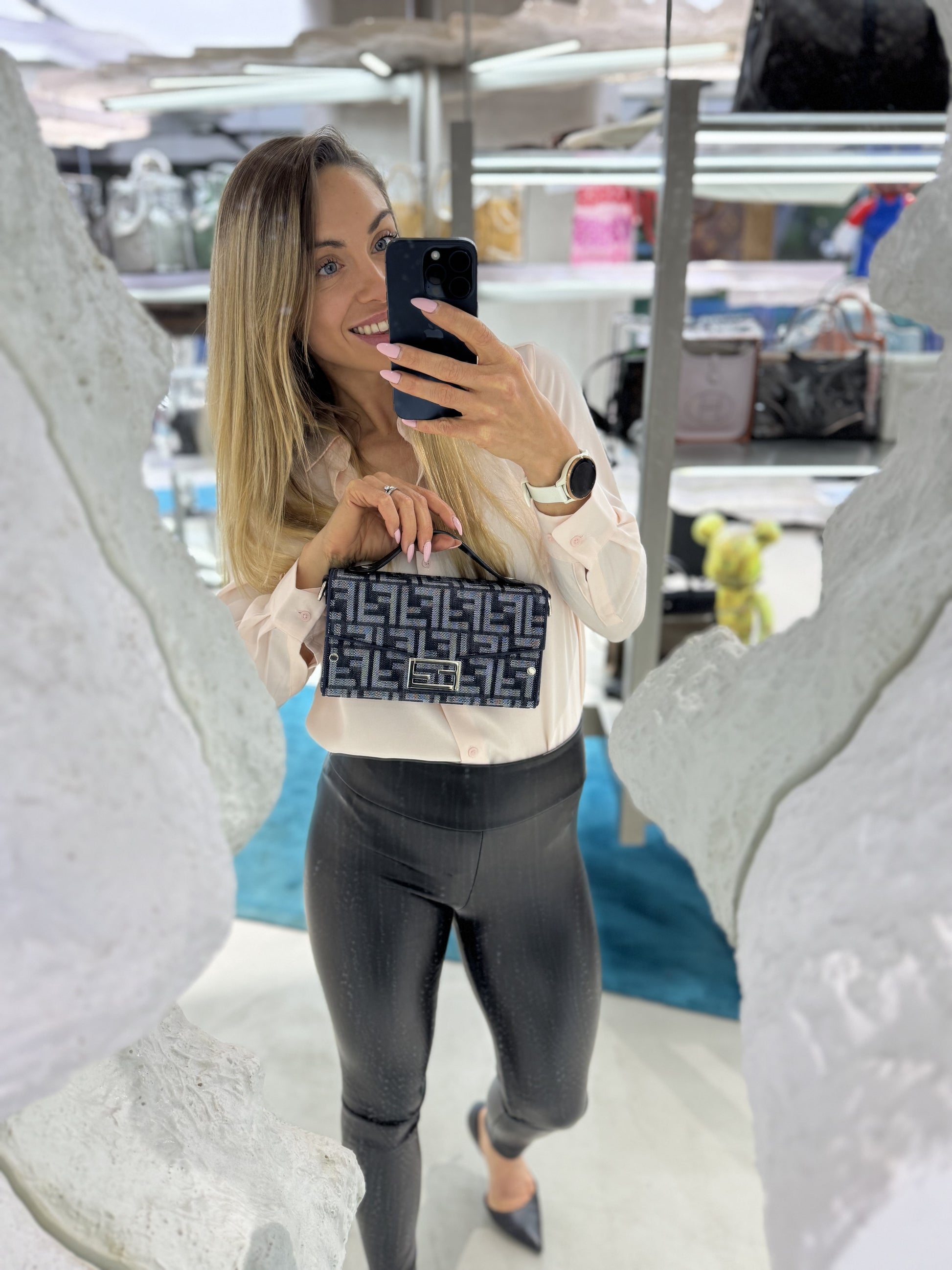 Pre-owned Fendi 23s Model Denim Baguette Soft Trunk Messenger, w/ strap