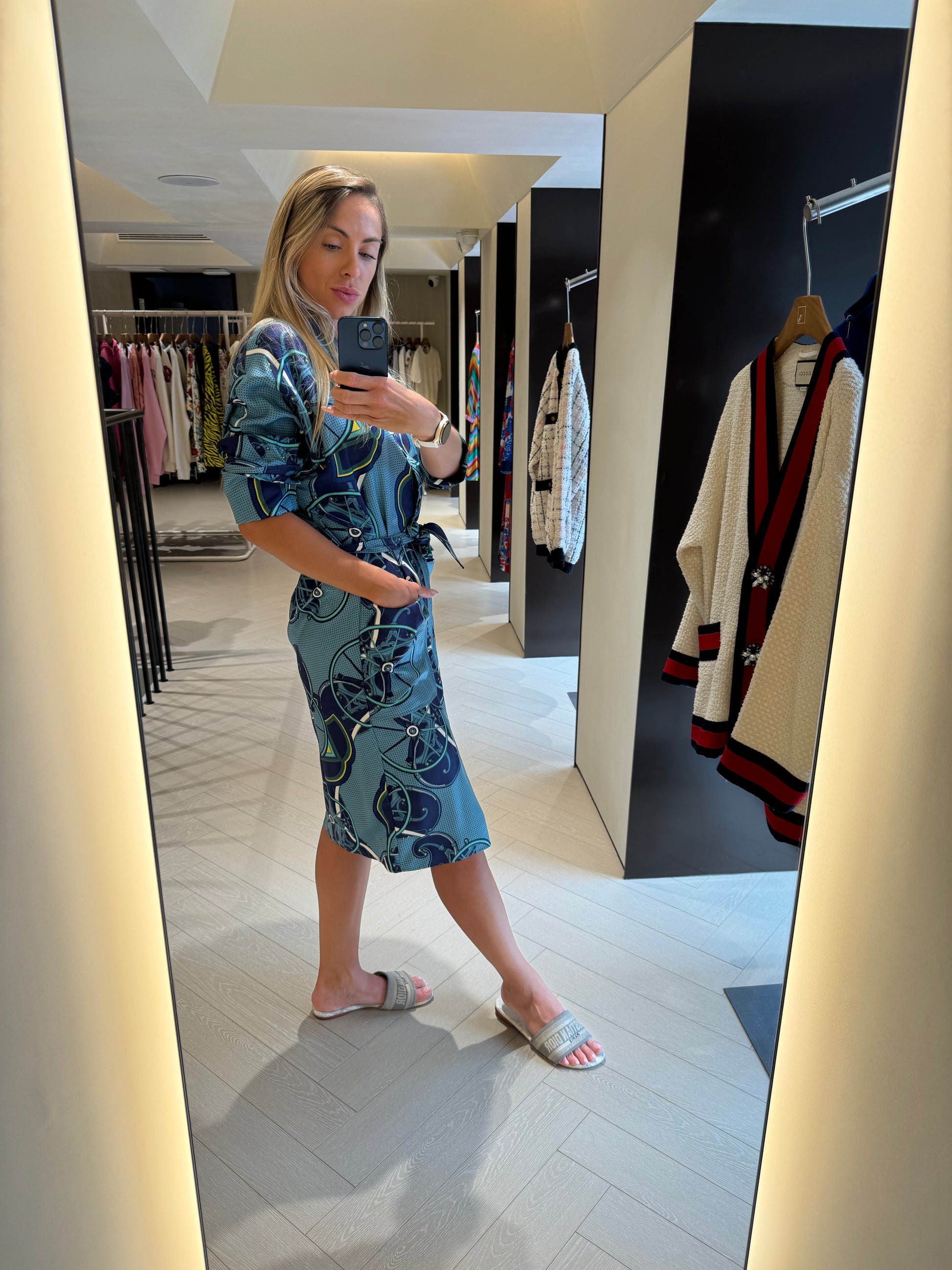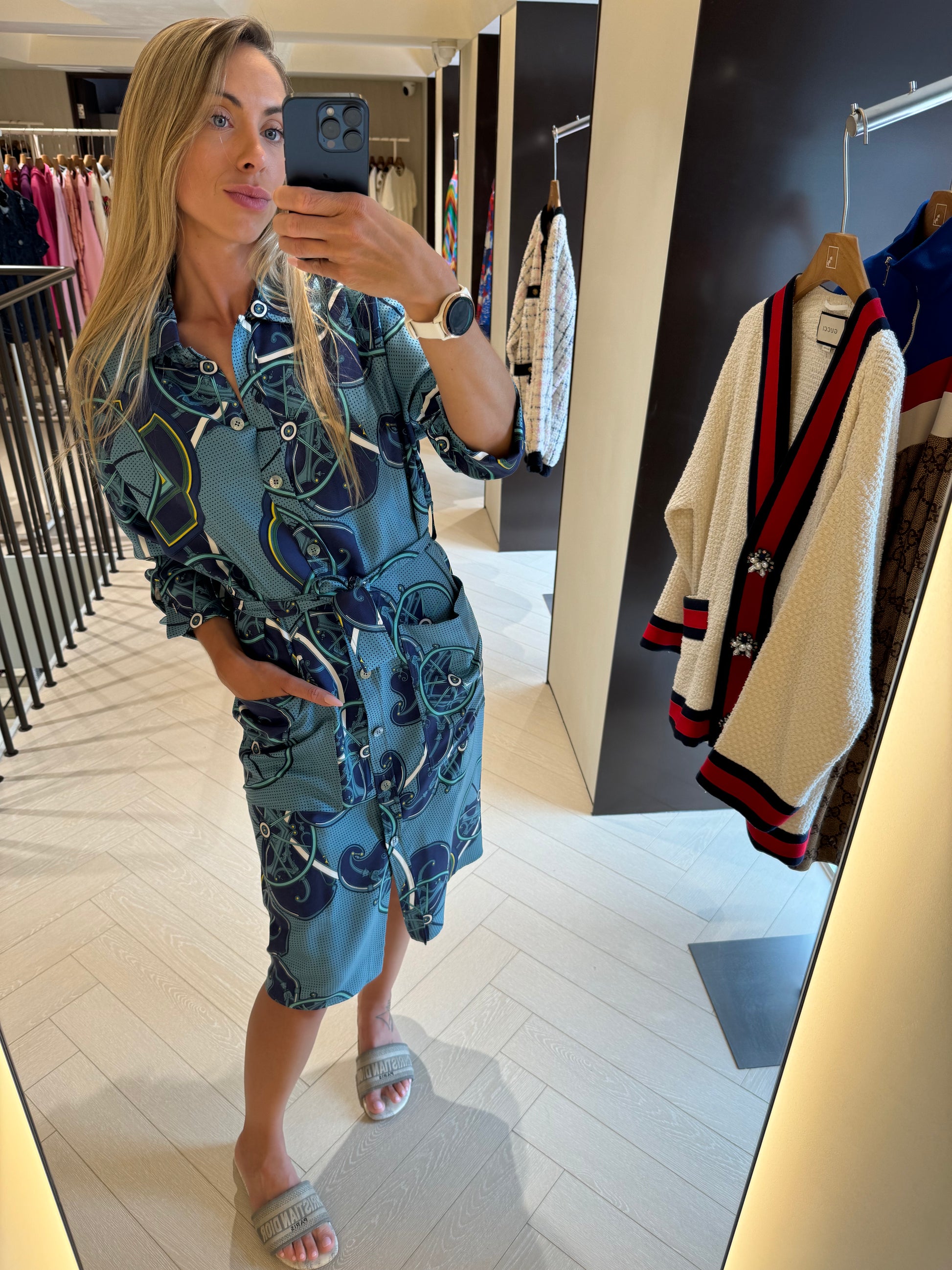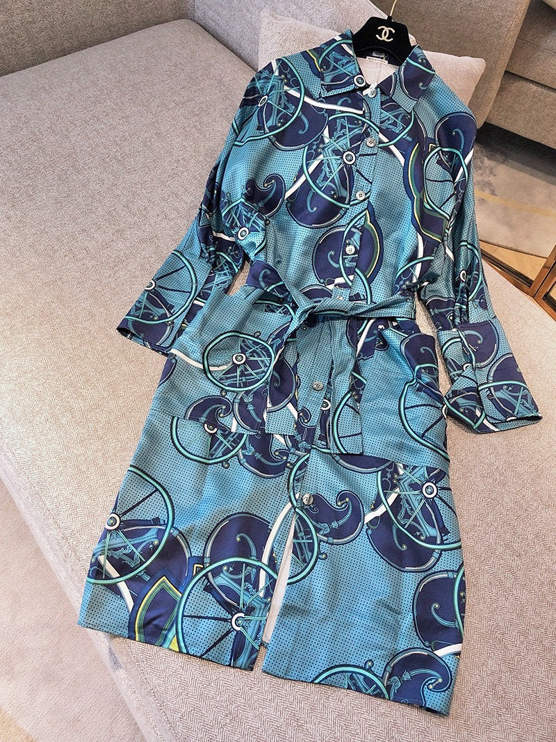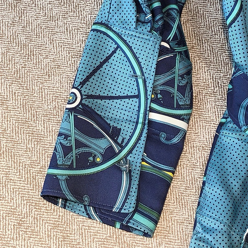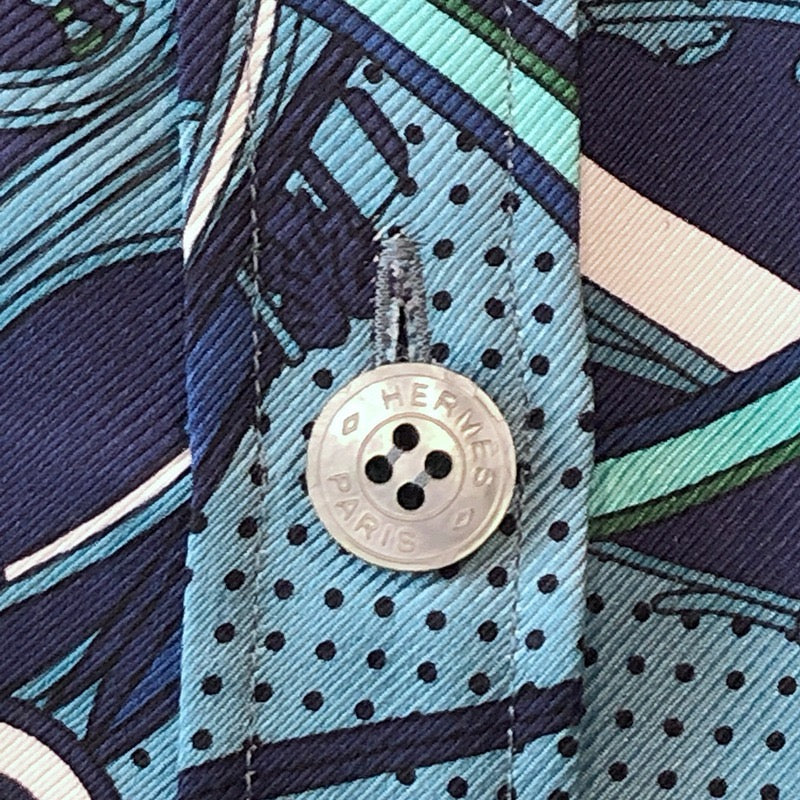 Pre-owned Hermes Silk Long Shirt Dress with Wheels Pattern, size 34
