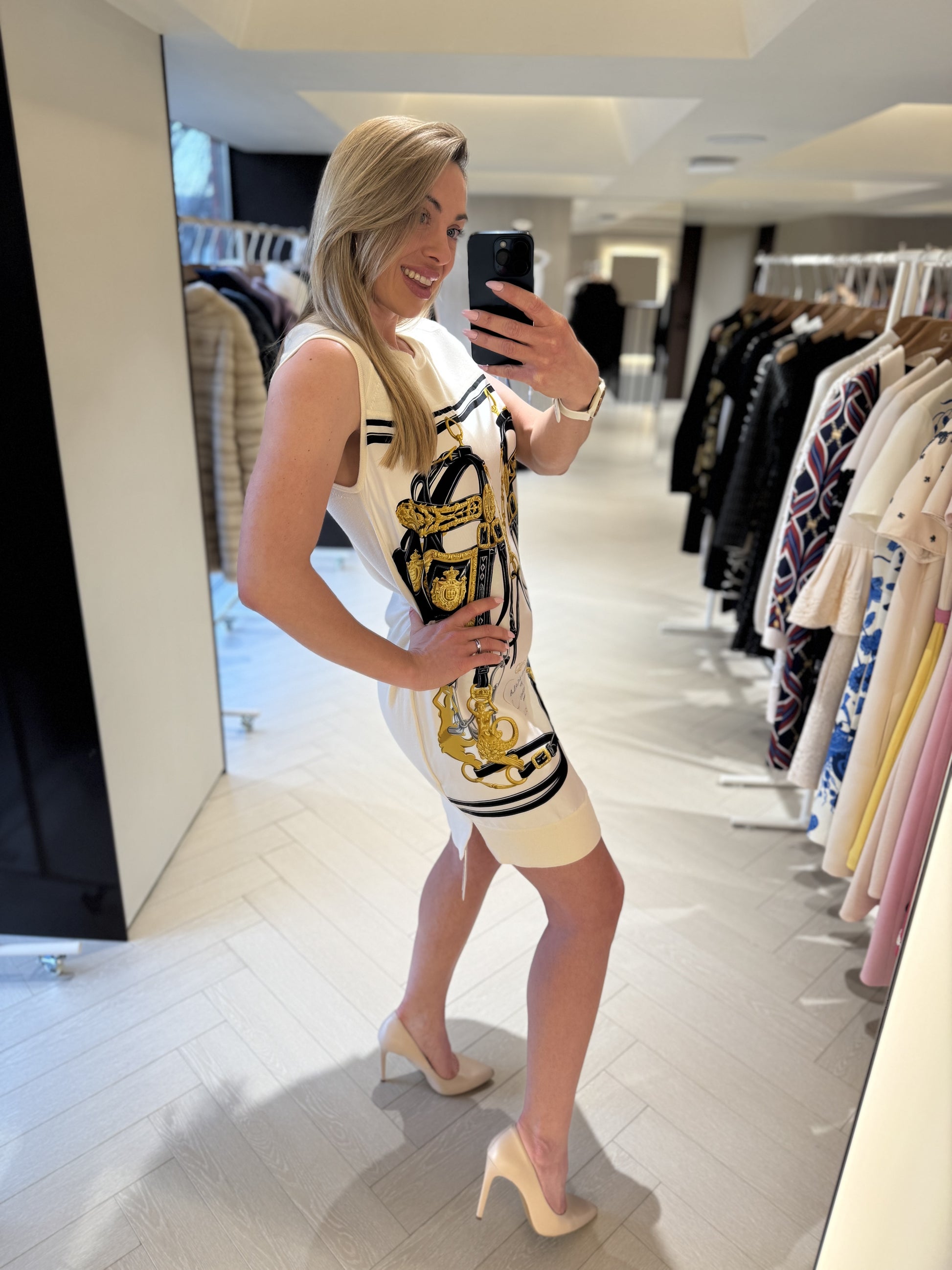 Pre-owned Hermes Twillaine Robe Dress White Brides de Gala Silk with Wool, Size 38