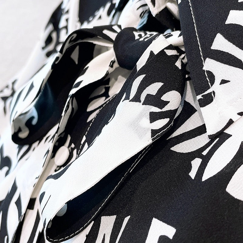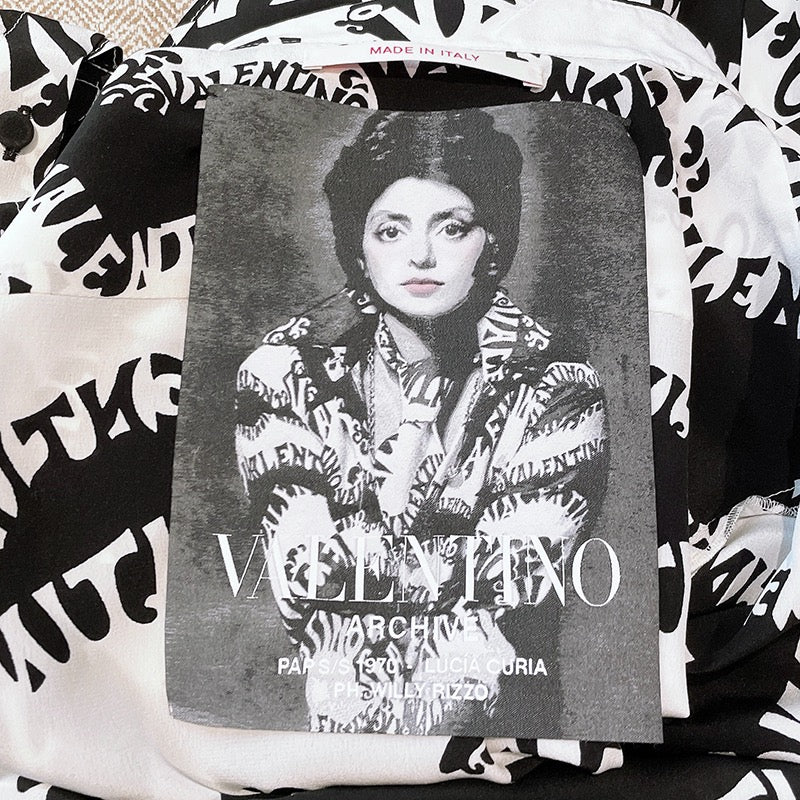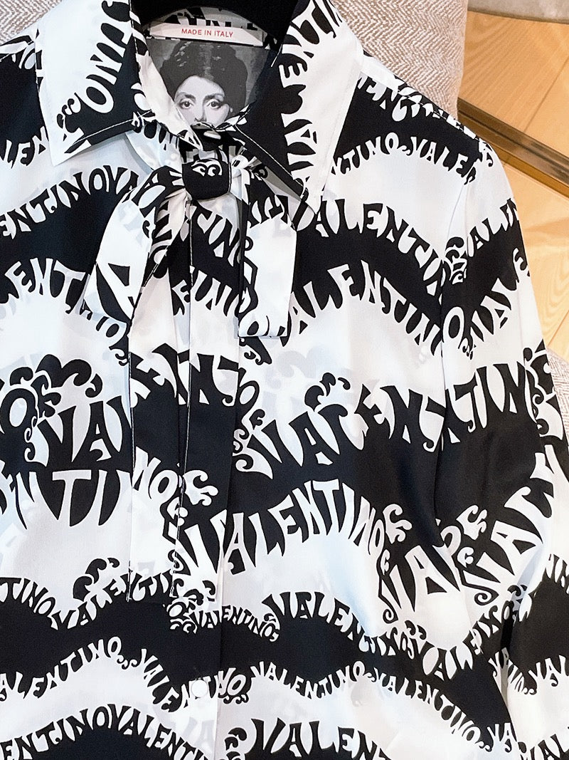 Pre-owned Valentino Special Edition Black & White Valentino Logo Print Silk Shirt, Size 36, New not used